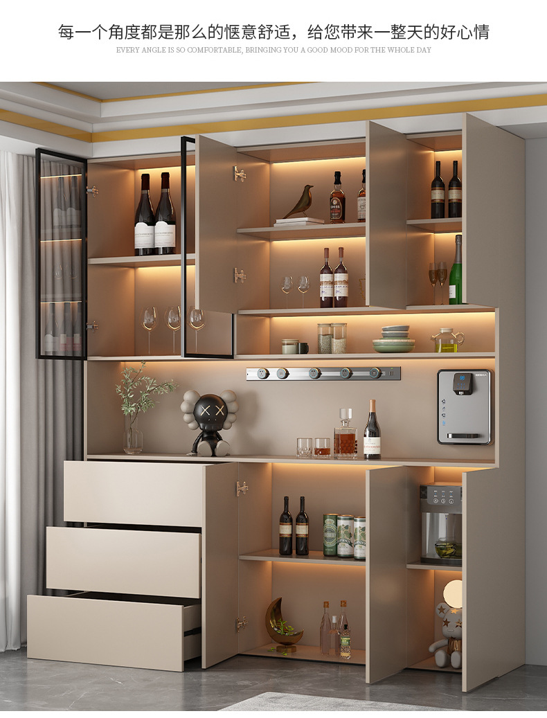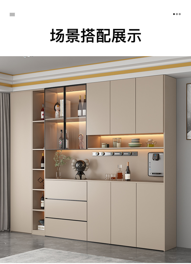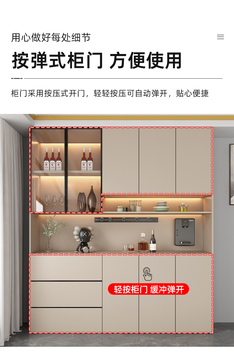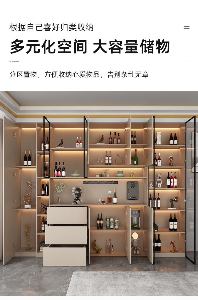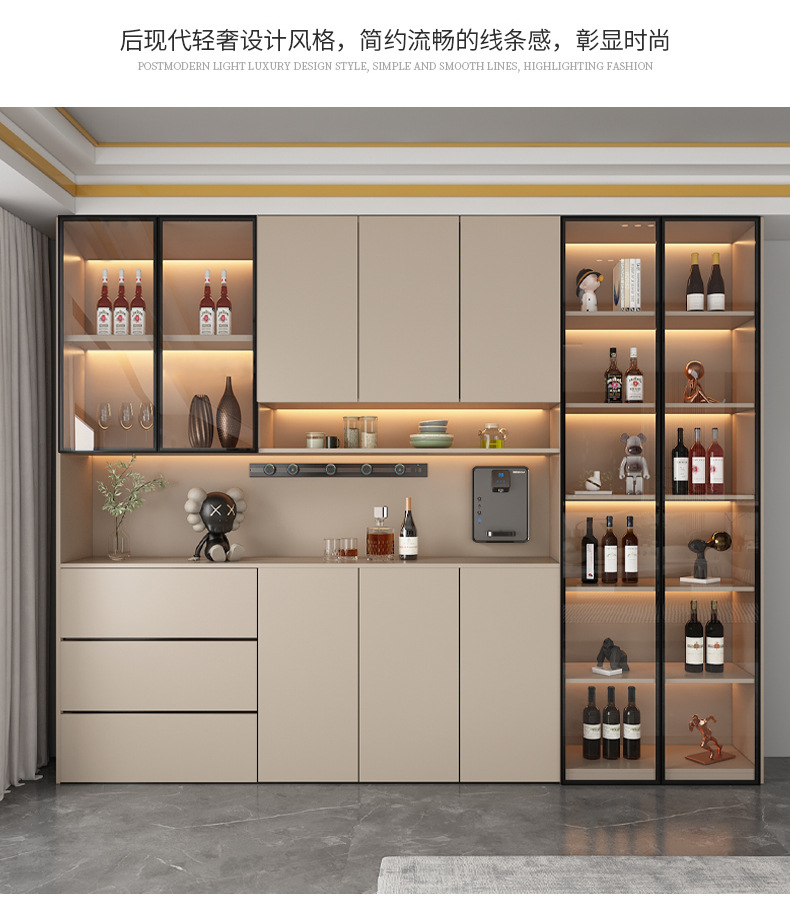 Lemari samping dinding tinggi, terintegrasi dengan dinding, dapat disesuaikan untuk ruang tamu dan ruang makan, lemari penyimpanan, lemari anggur minimalis modern, lemari pintu masuk, ganda.