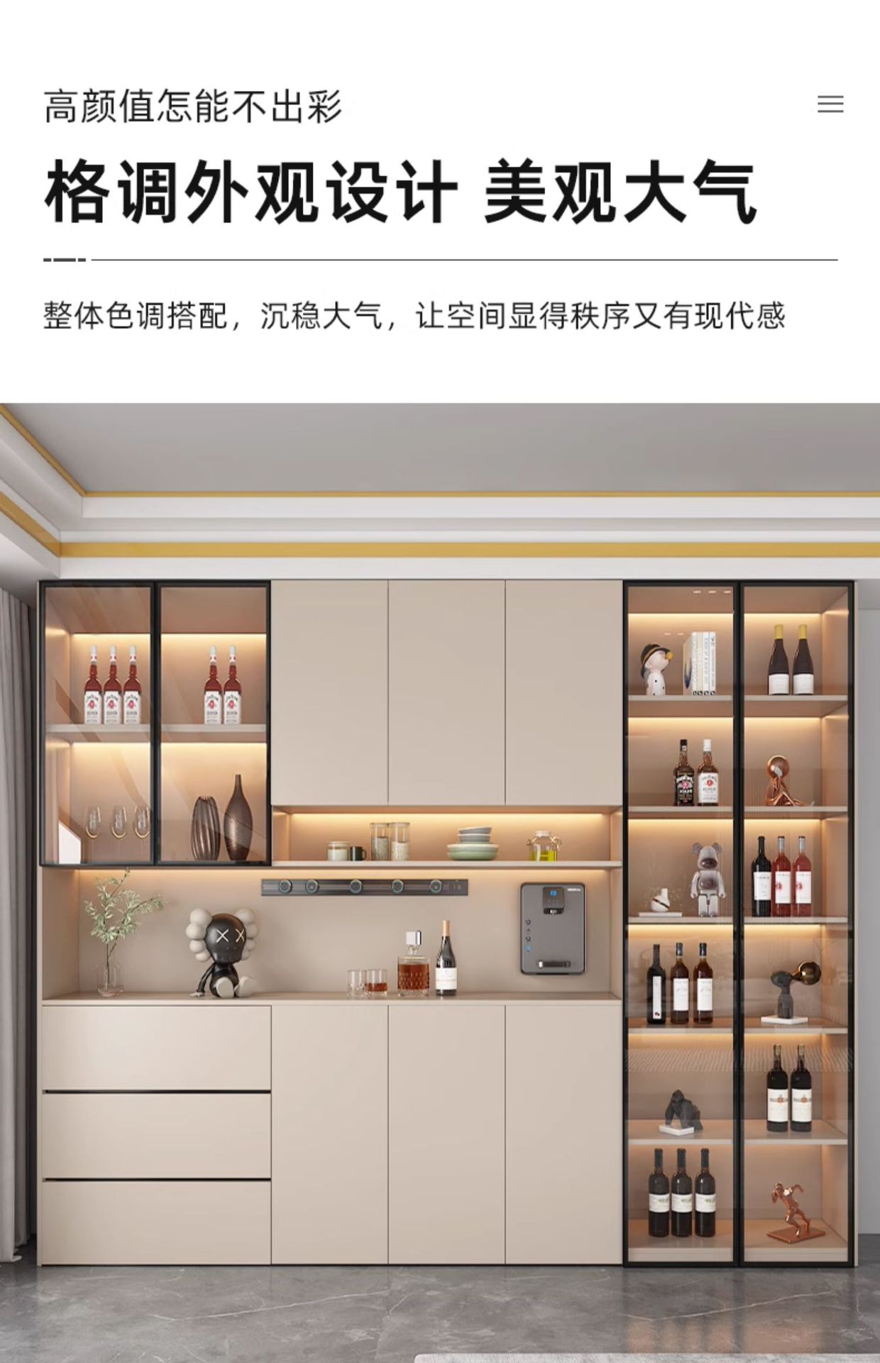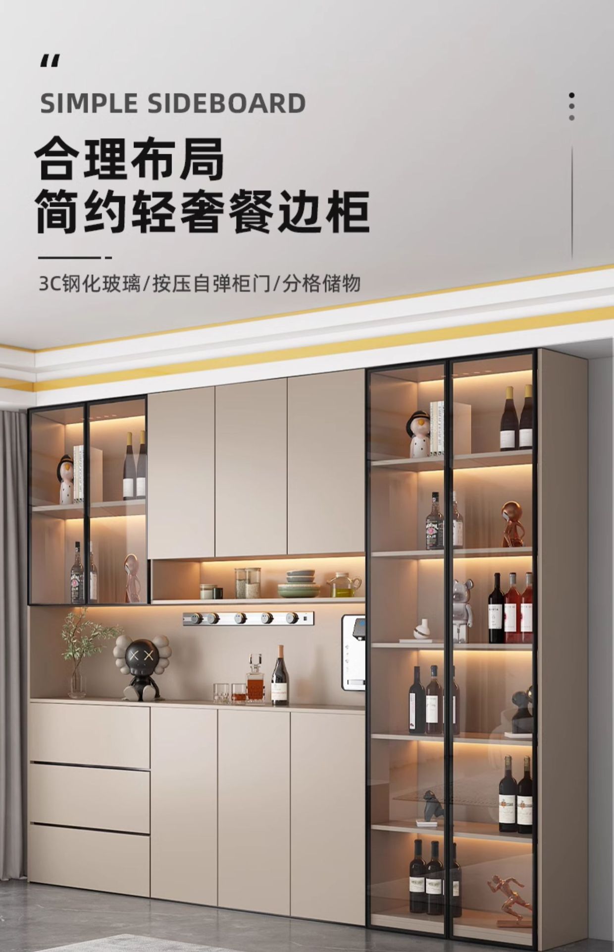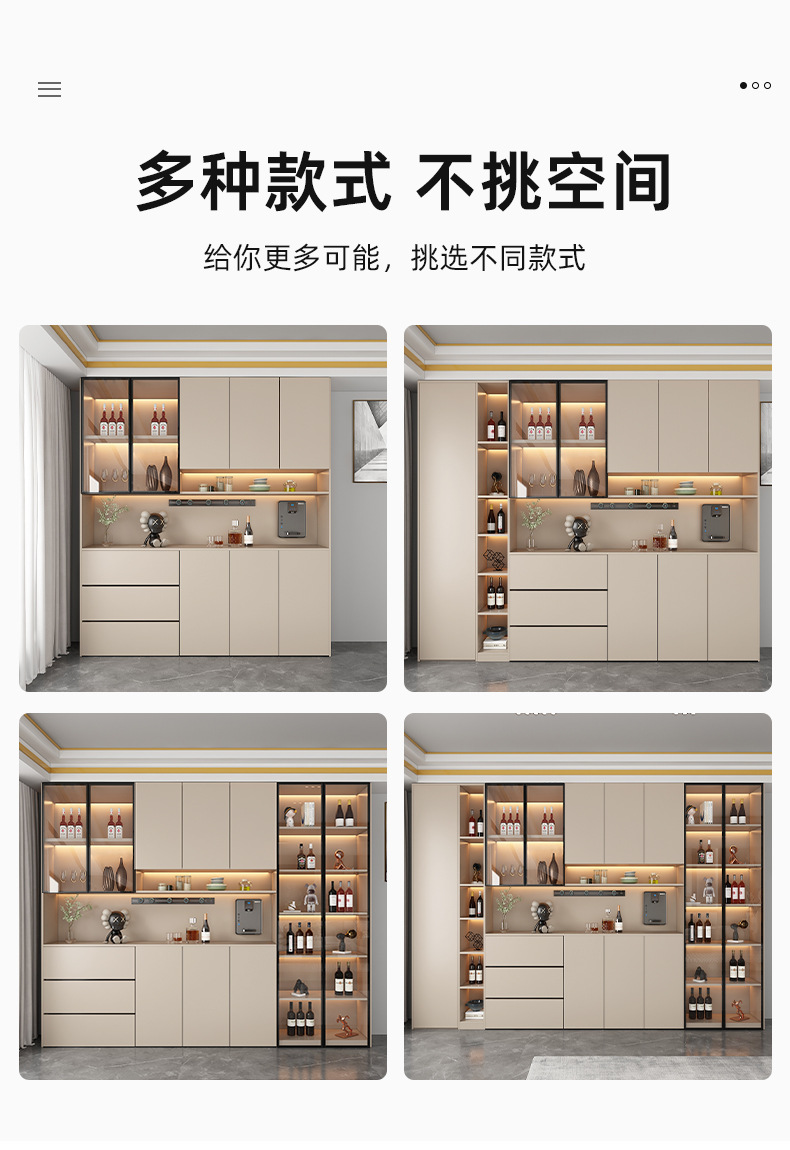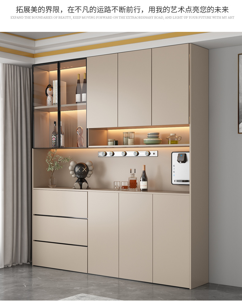 Lemari samping dinding tinggi, terintegrasi dengan dinding, dapat disesuaikan untuk ruang tamu dan ruang makan, lemari penyimpanan, lemari anggur minimalis modern, lemari pintu masuk, ganda.