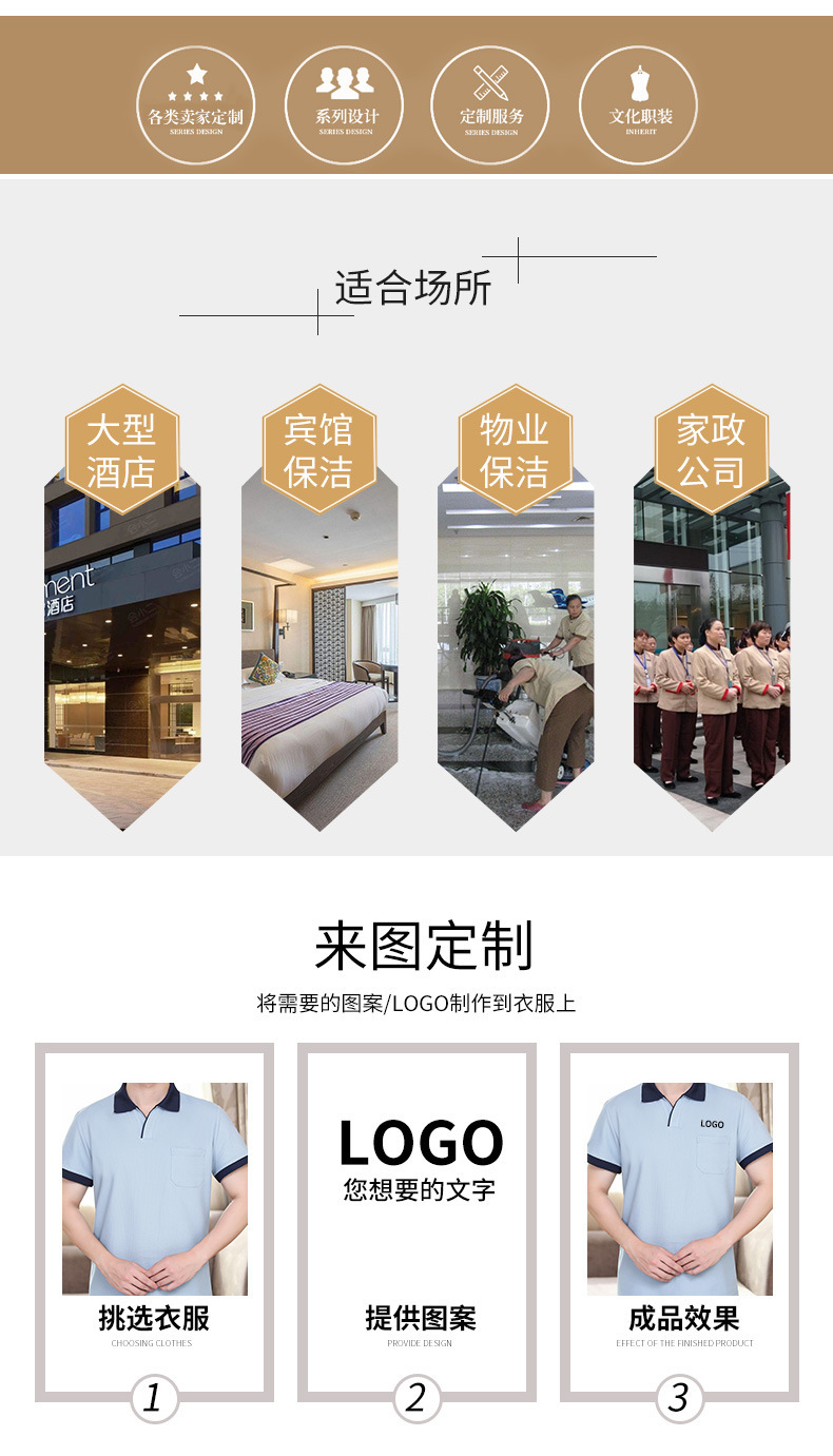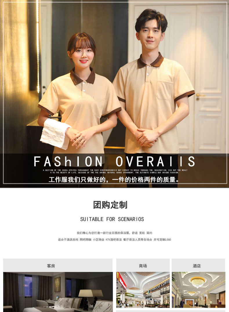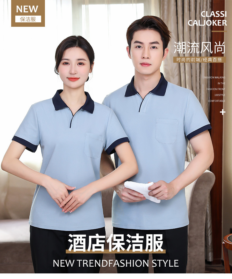 Kaus lengan pendek pembersih properti, kaus lengan pendek, pakaian kerja untuk rumah sakit hotel, setelan bibi pembersih, katun murni musim panas untuk pria dan wanita