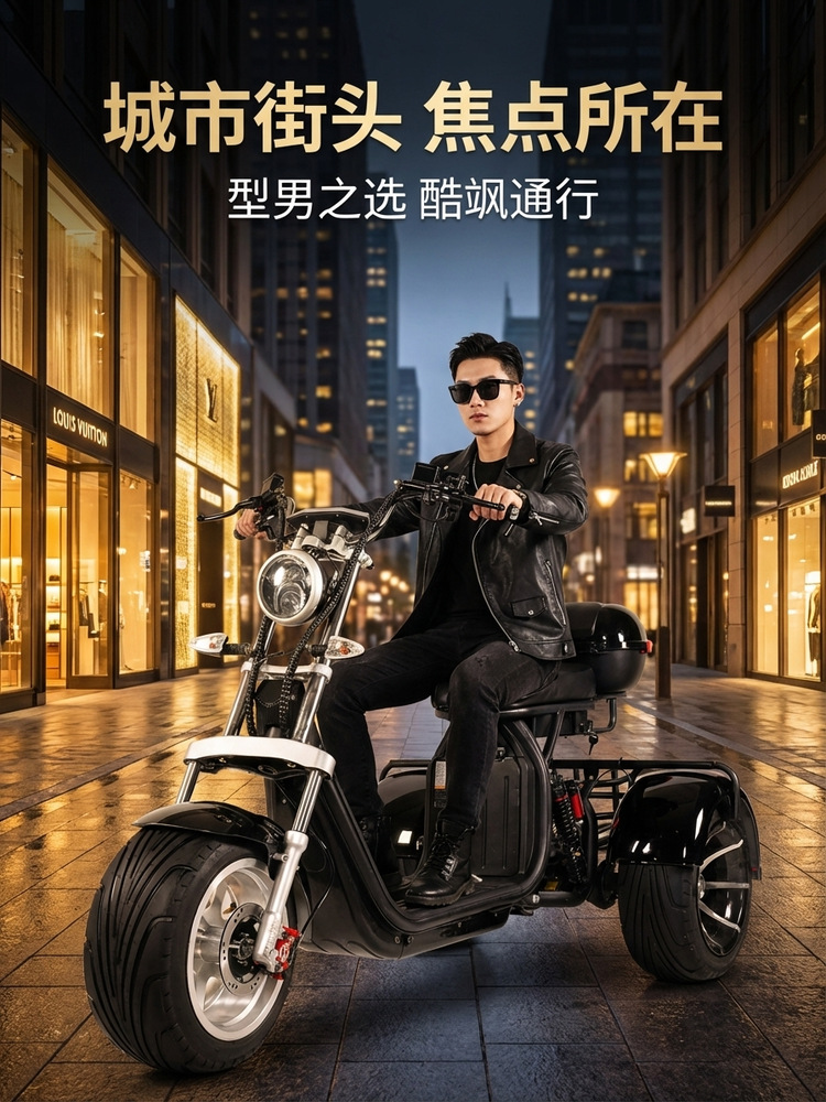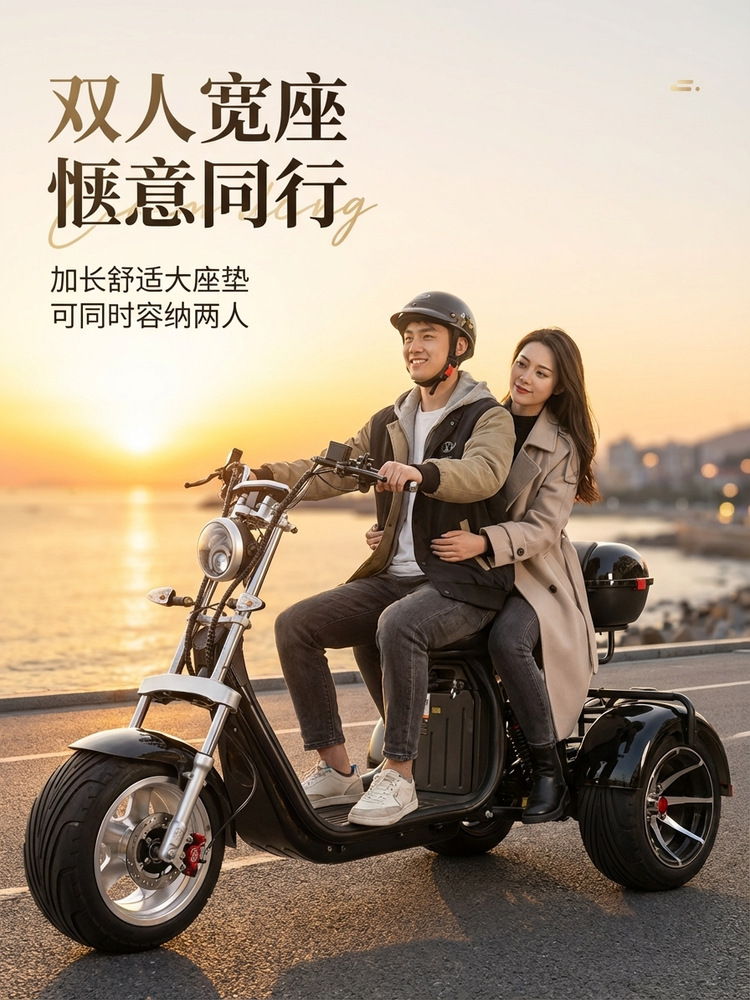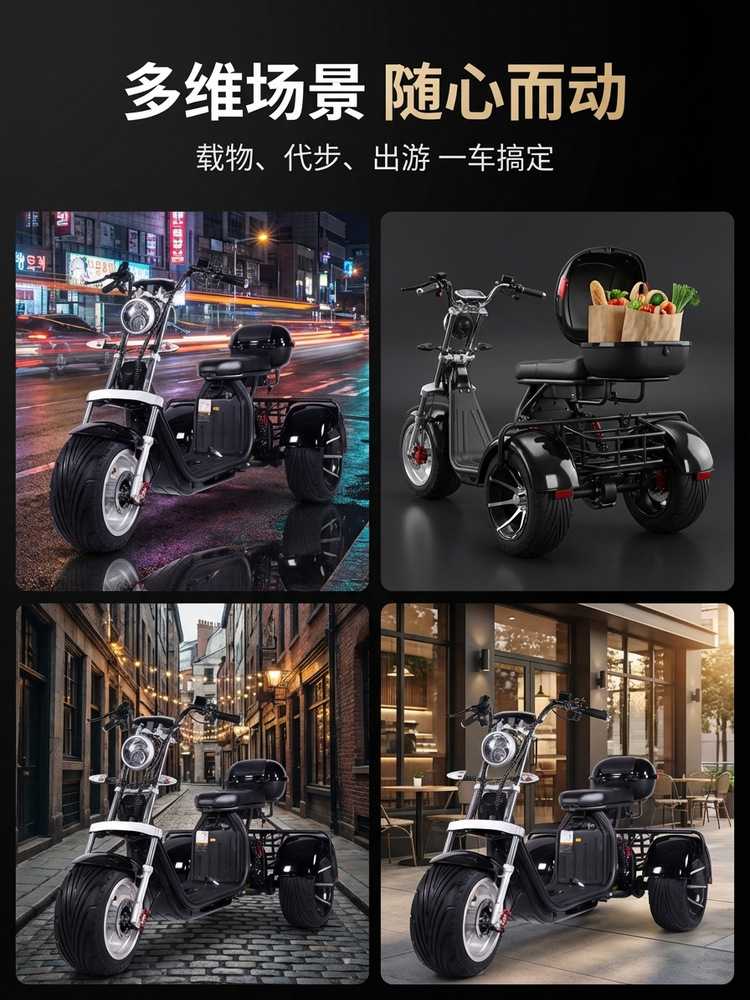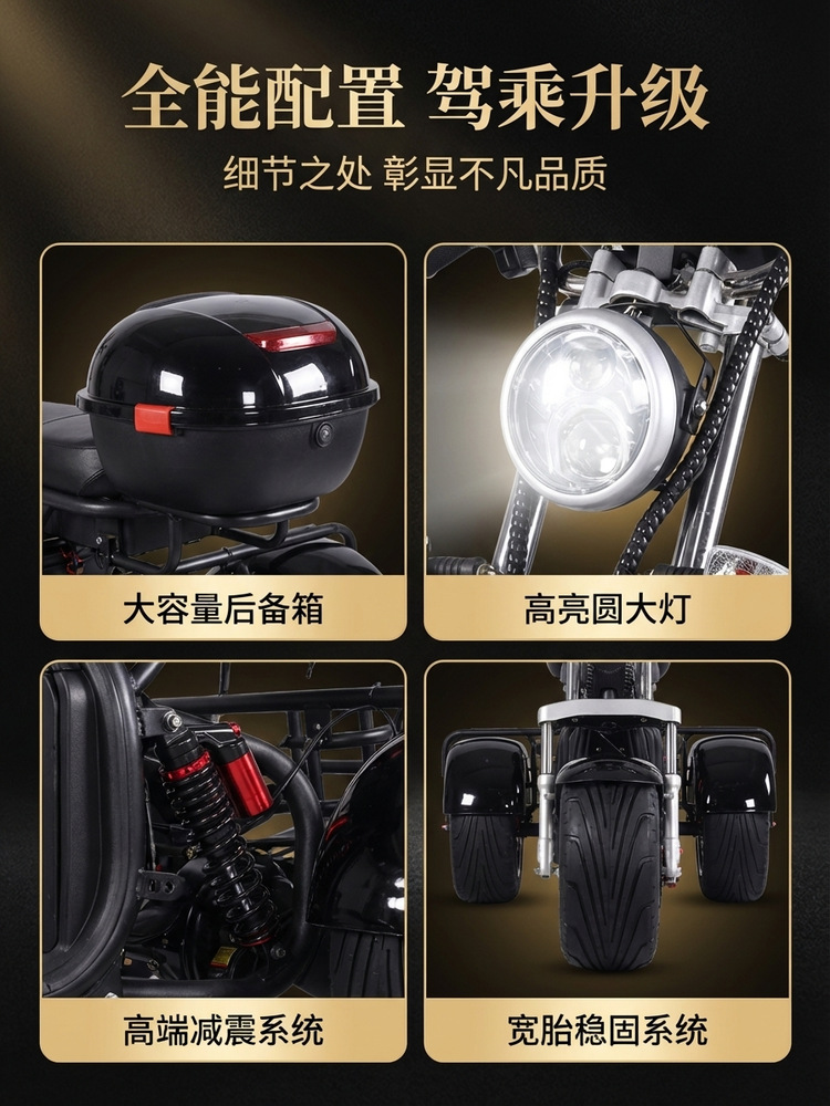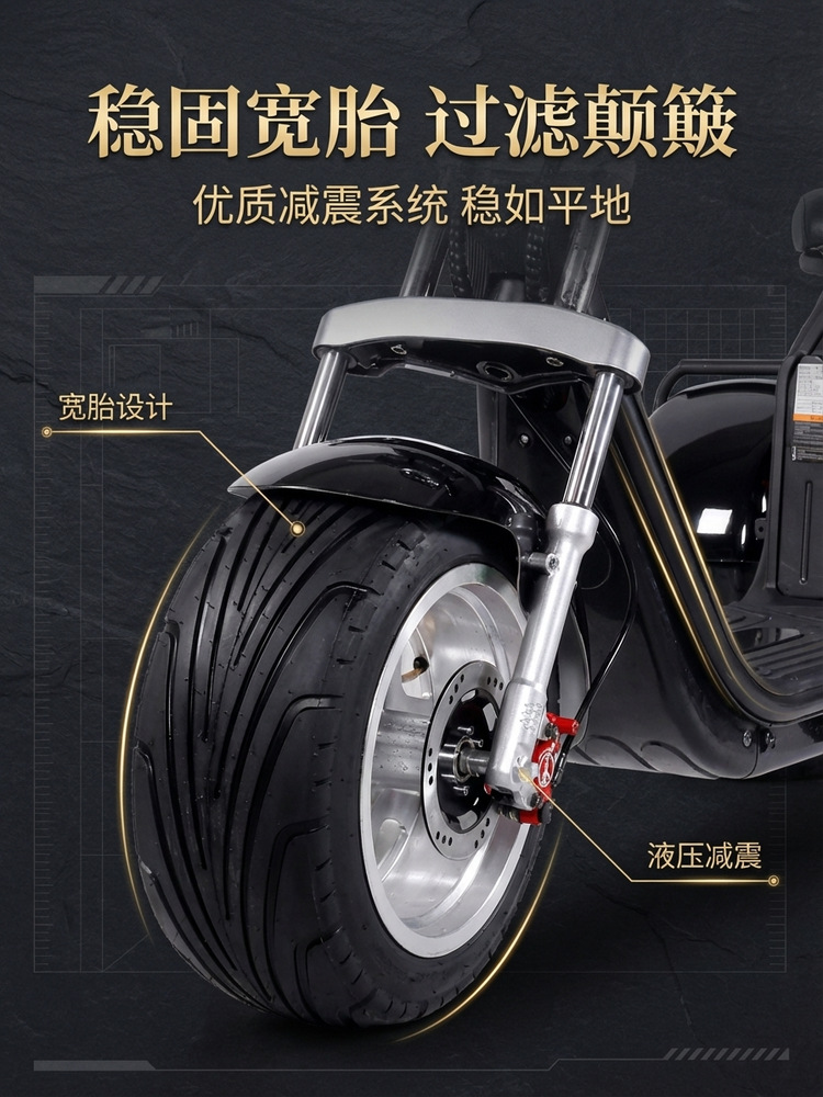 Lintas Batas EEC Harley Listrik Roda Tiga Ban Lebar Off-Road MSDS Baterai Mobil Roda Dua Dewasa Skateboard Skuter