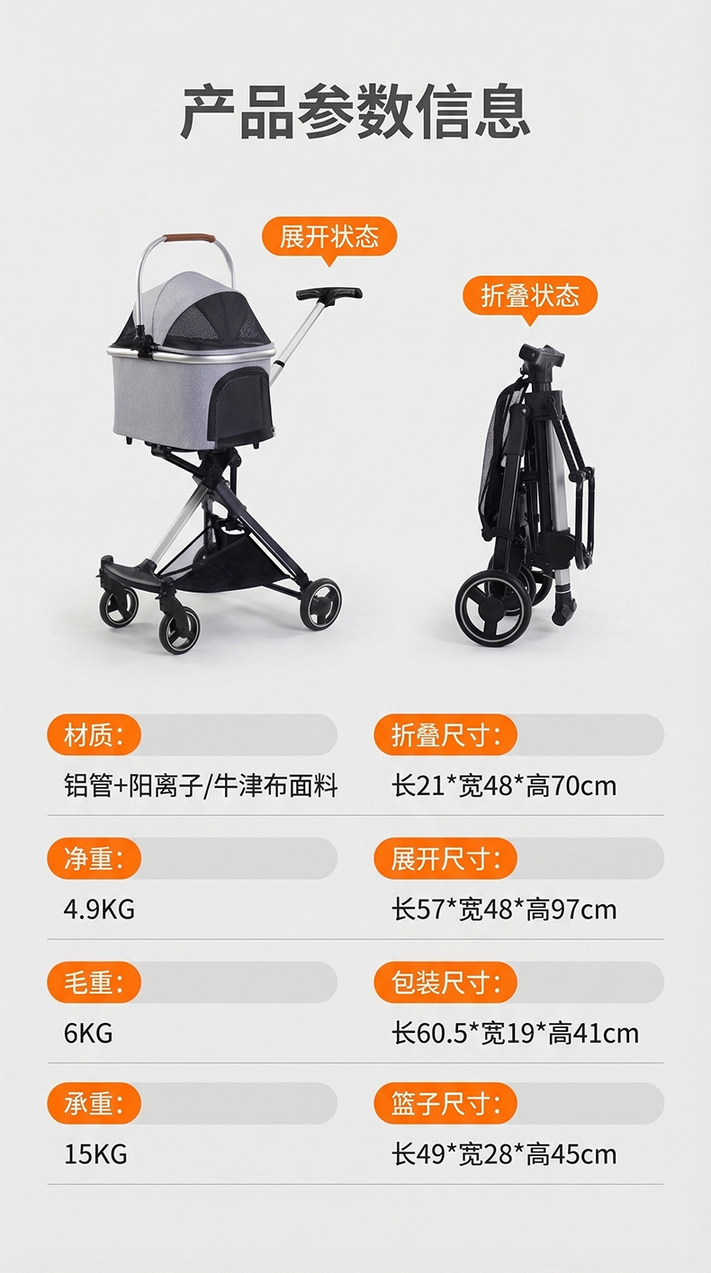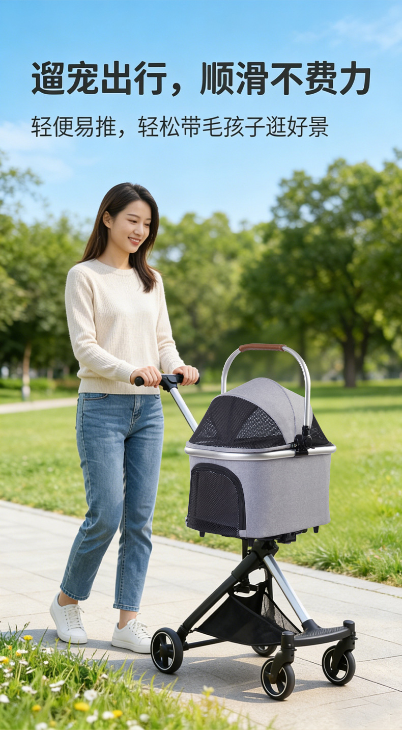 Kereta dorong hewan peliharaan untuk anjing ukuran kecil dan sedang, teleskopik, mewah, dapat dilipat, kereta anjing, kereta dorong kucing dan anjing, lintas batas