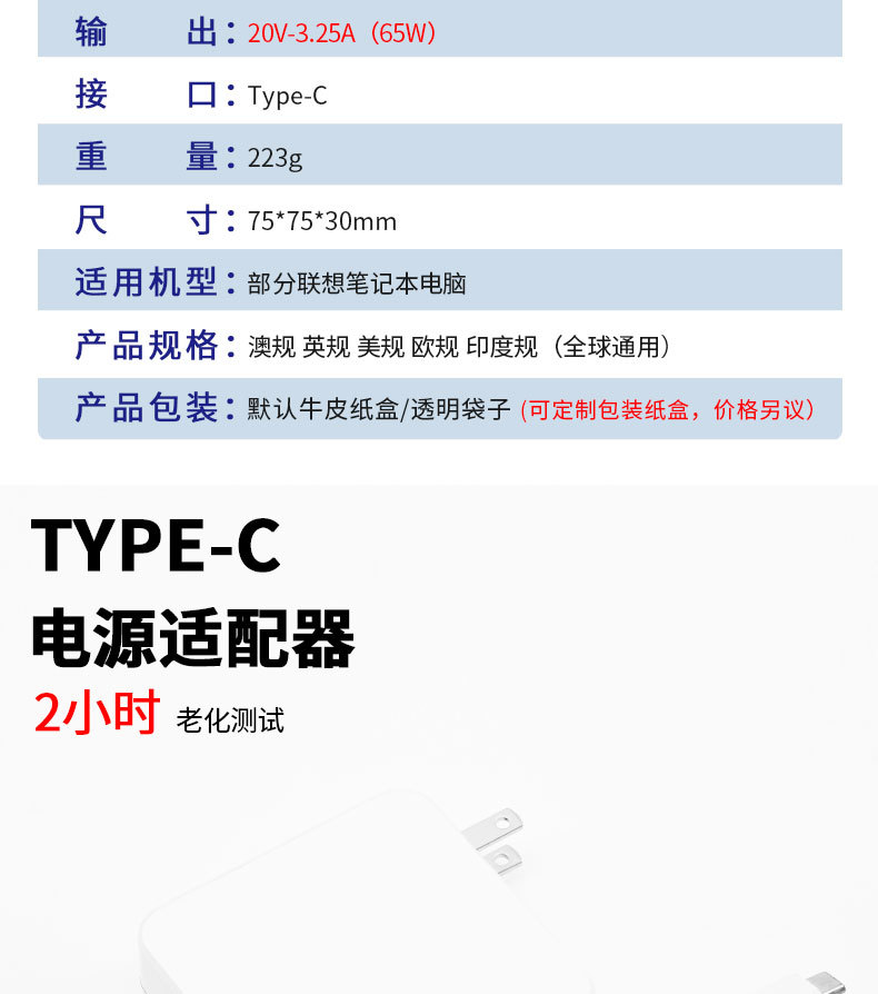 Berlaku untuk Lenovo ASUS Dell 20V 3.25A power USB C adapter 65W charger Tipe C