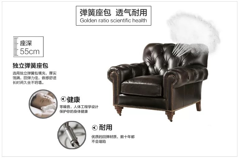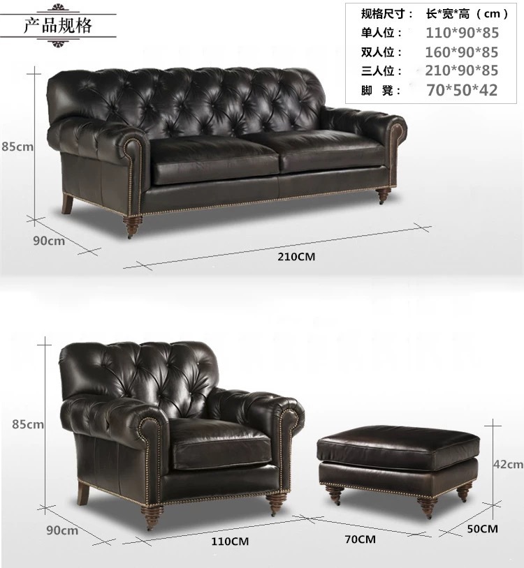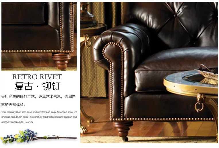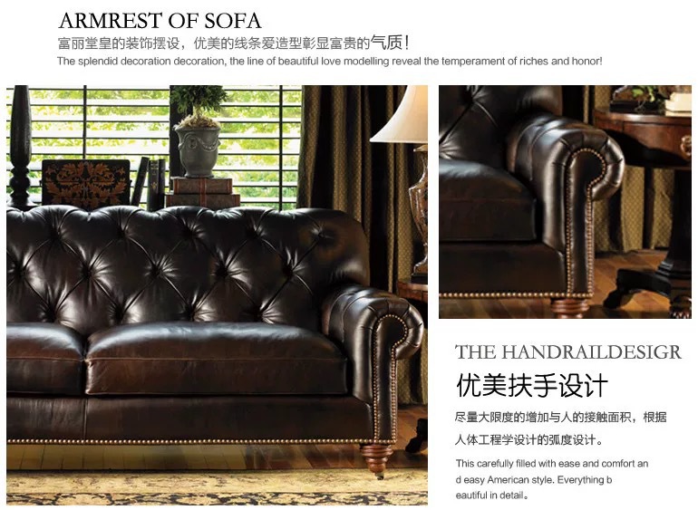 Sofa gaya Eropa, sofa tiga kursi kantor ruang tamu hotel gaya Eropa kelas atas vintage Retro Amerika