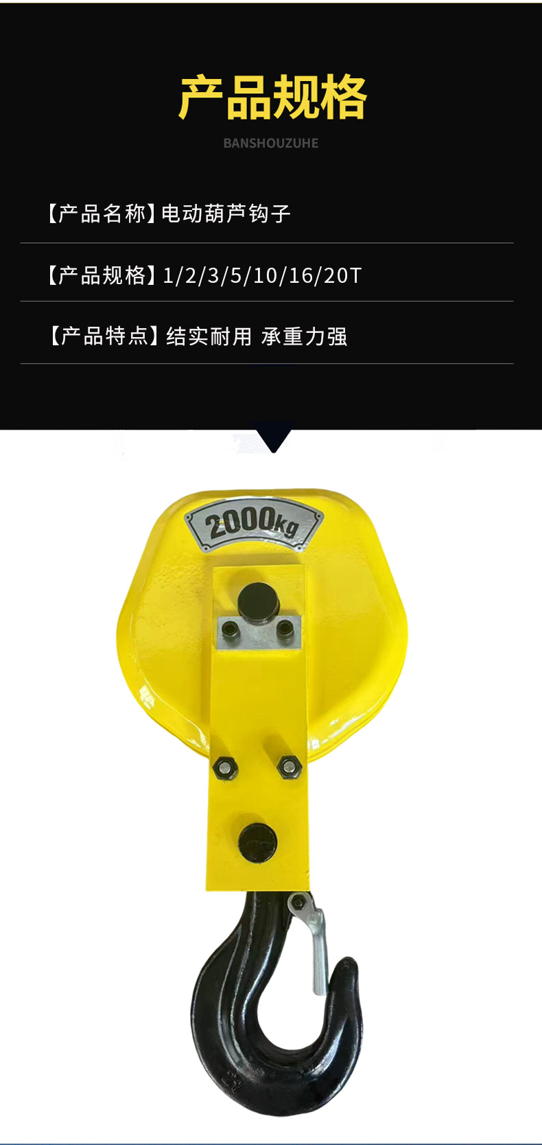 Kait derek kekuatan tinggi dan tahan berat multi-spesifikasi 1t2t3t crane gantry crane hook listrik