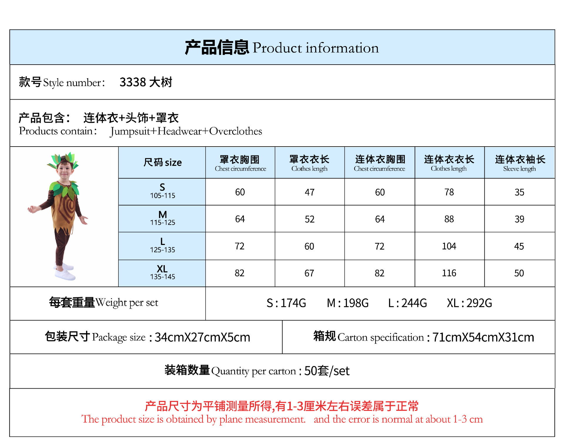 Kostum cosplay anak-anak, kostum pertunjukan pohon besar