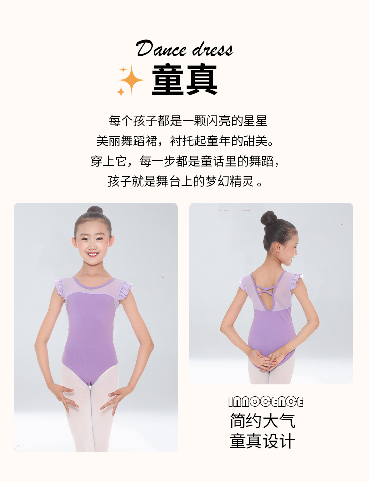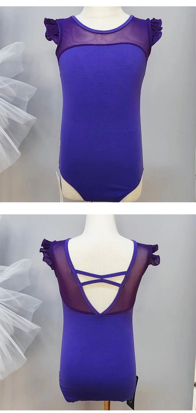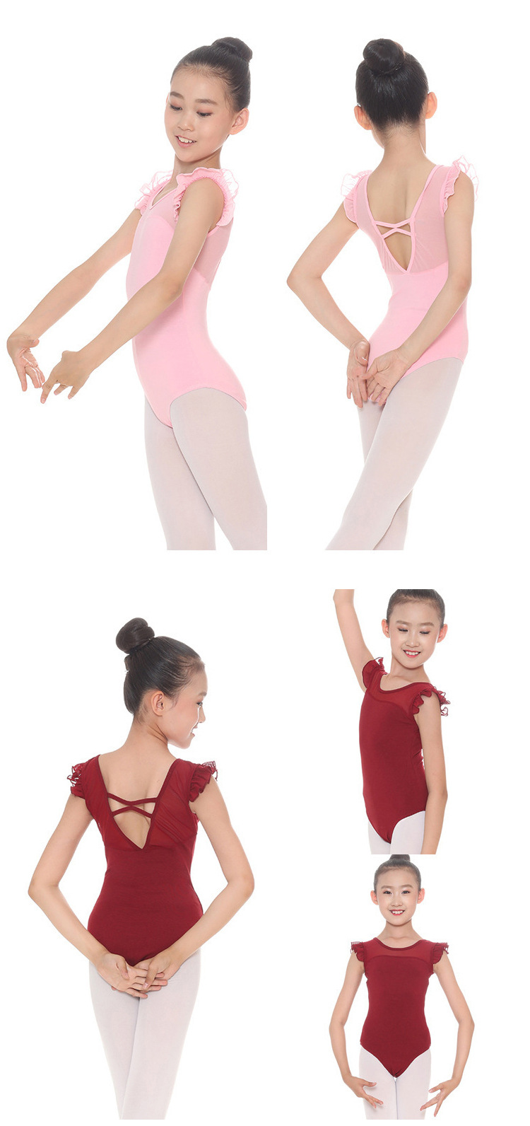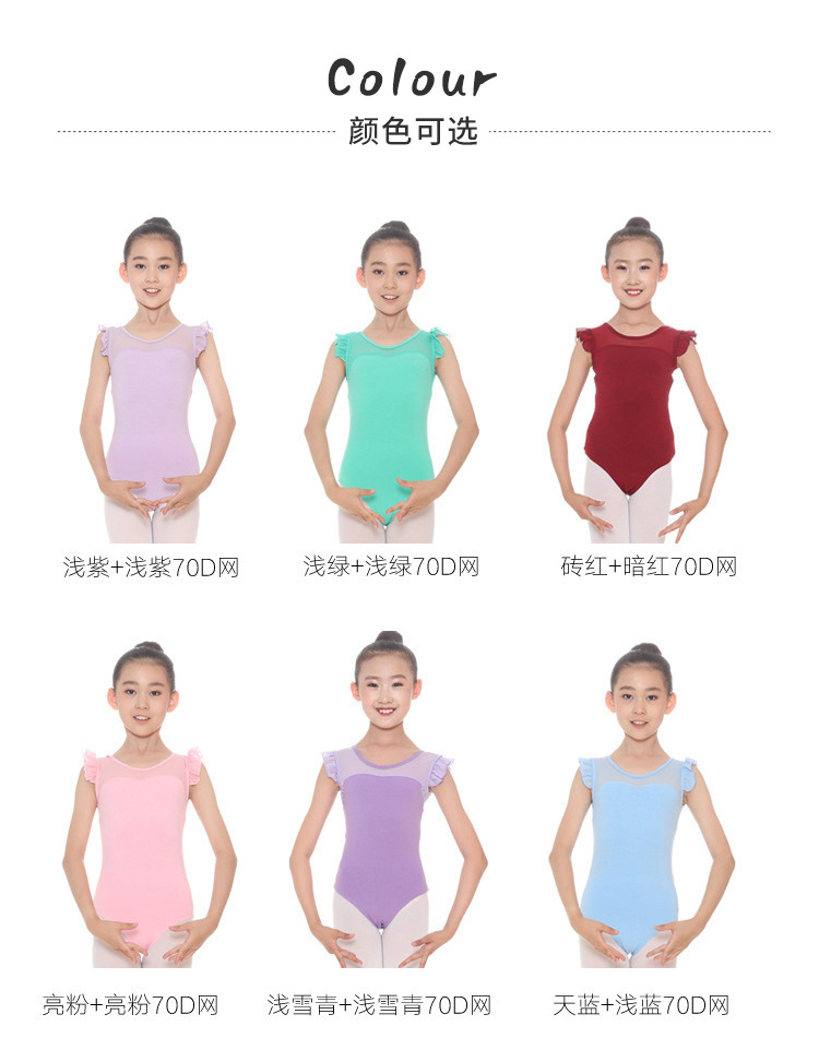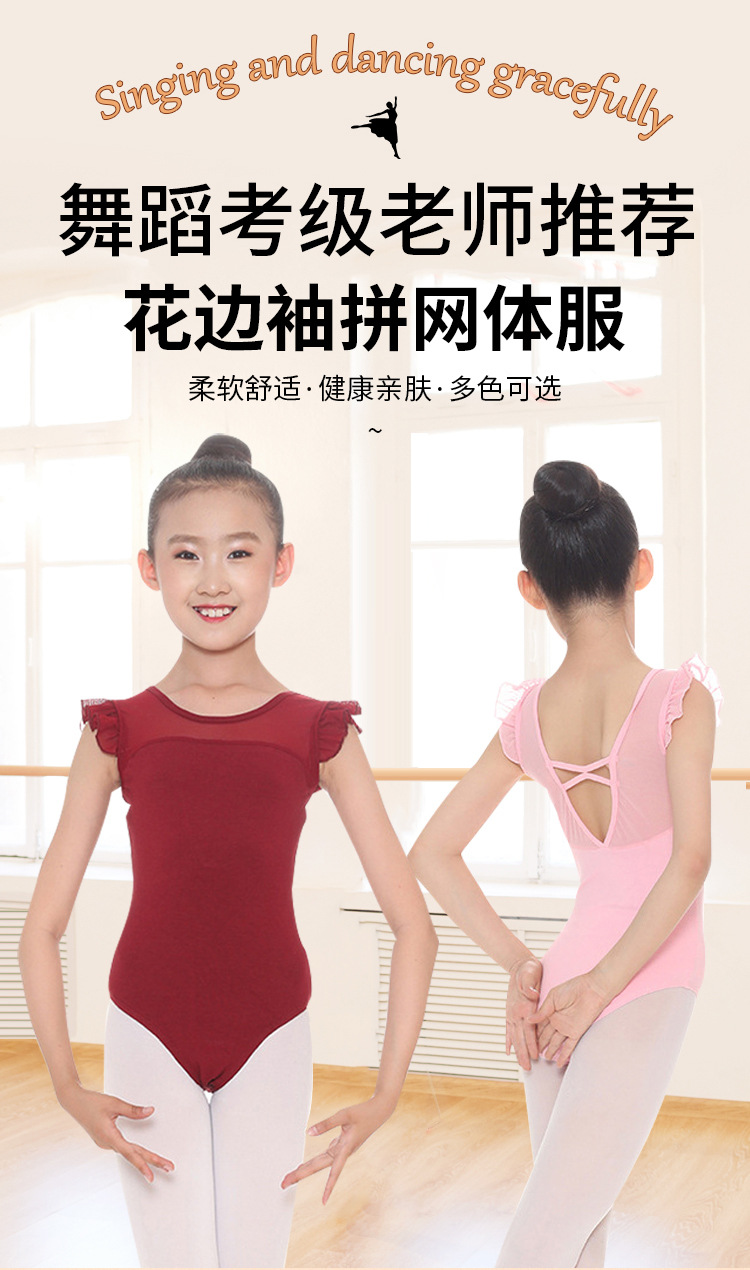 Pakaian dansa anak-anak, pakaian latihan tari, pakaian balet anak perempuan, pakaian senam Latin jala lengan pendek