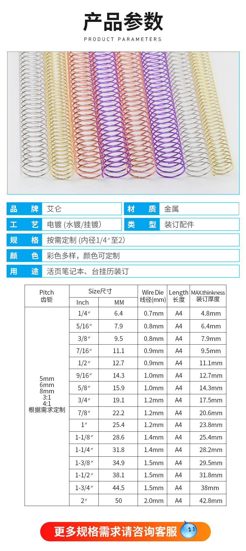 Buku catatan lepas-lembar Dongguan YO spiral logam tunggal, aksesoris penjilidan alat tulis, planner, penjualan laris lintas batas