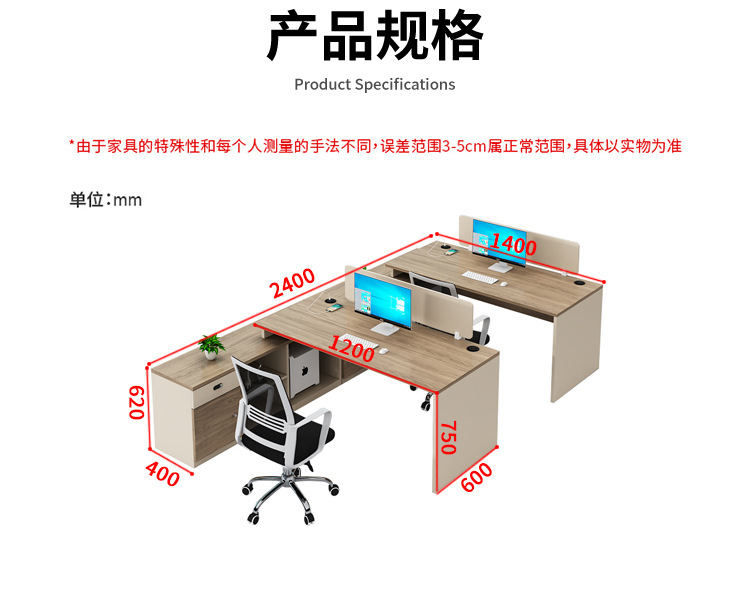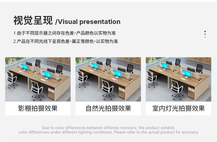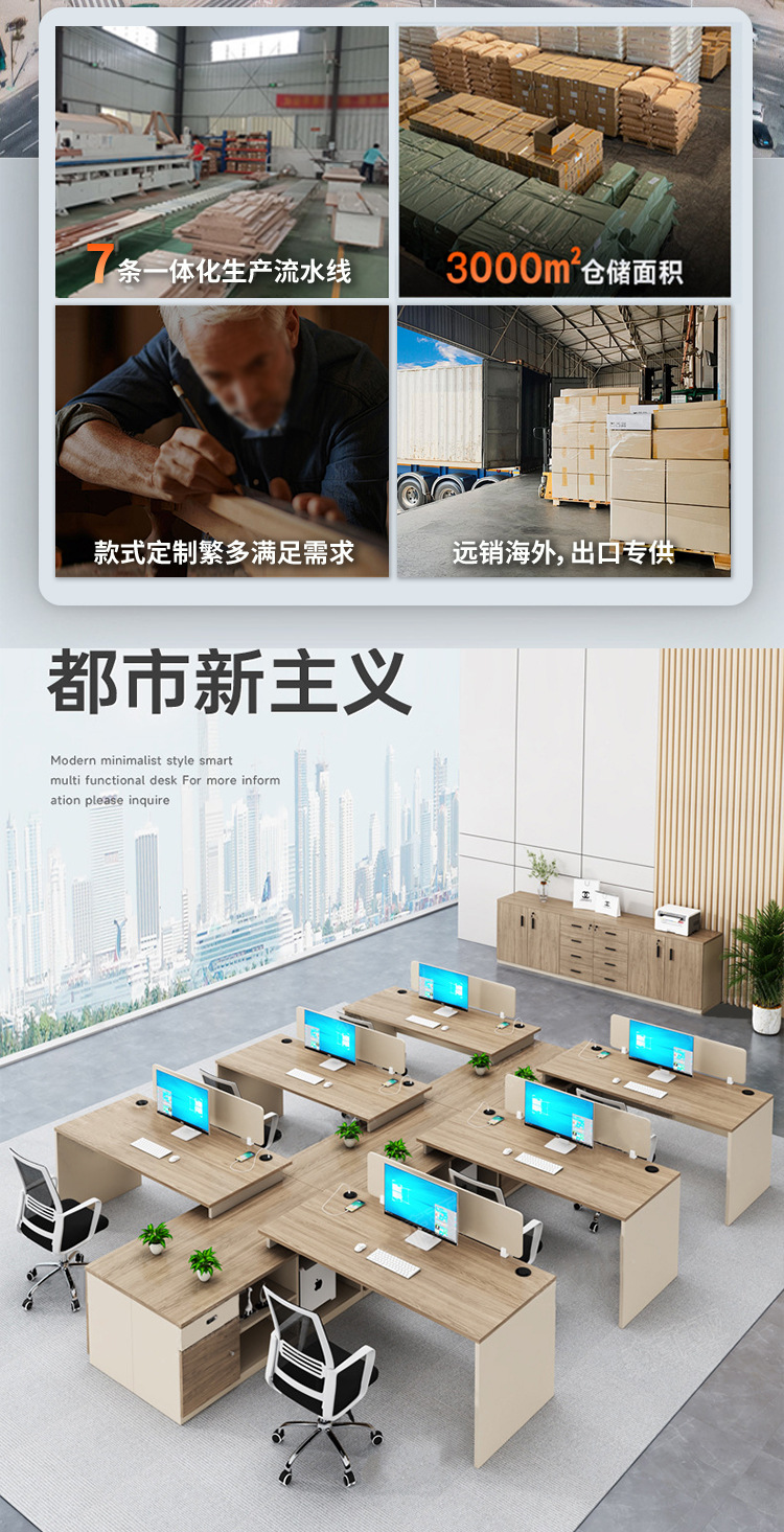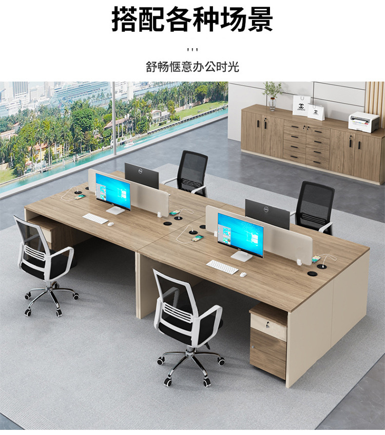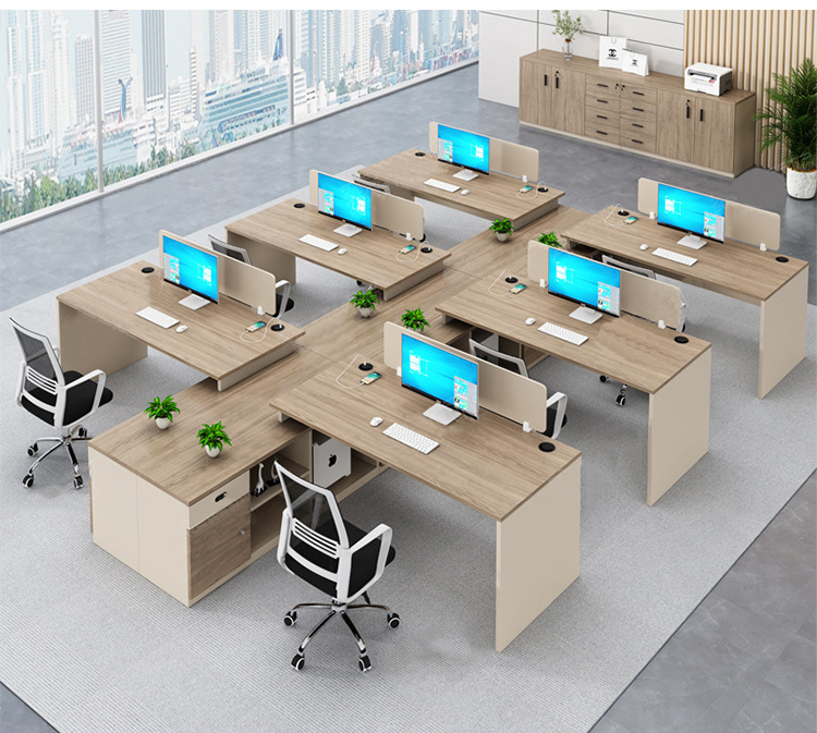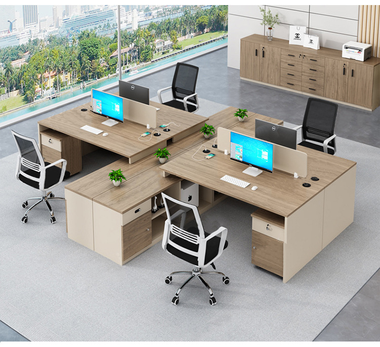 Meja kantor modern sederhana, workstation staf perusahaan, kombinasi meja dan kursi komputer untuk empat orang staf