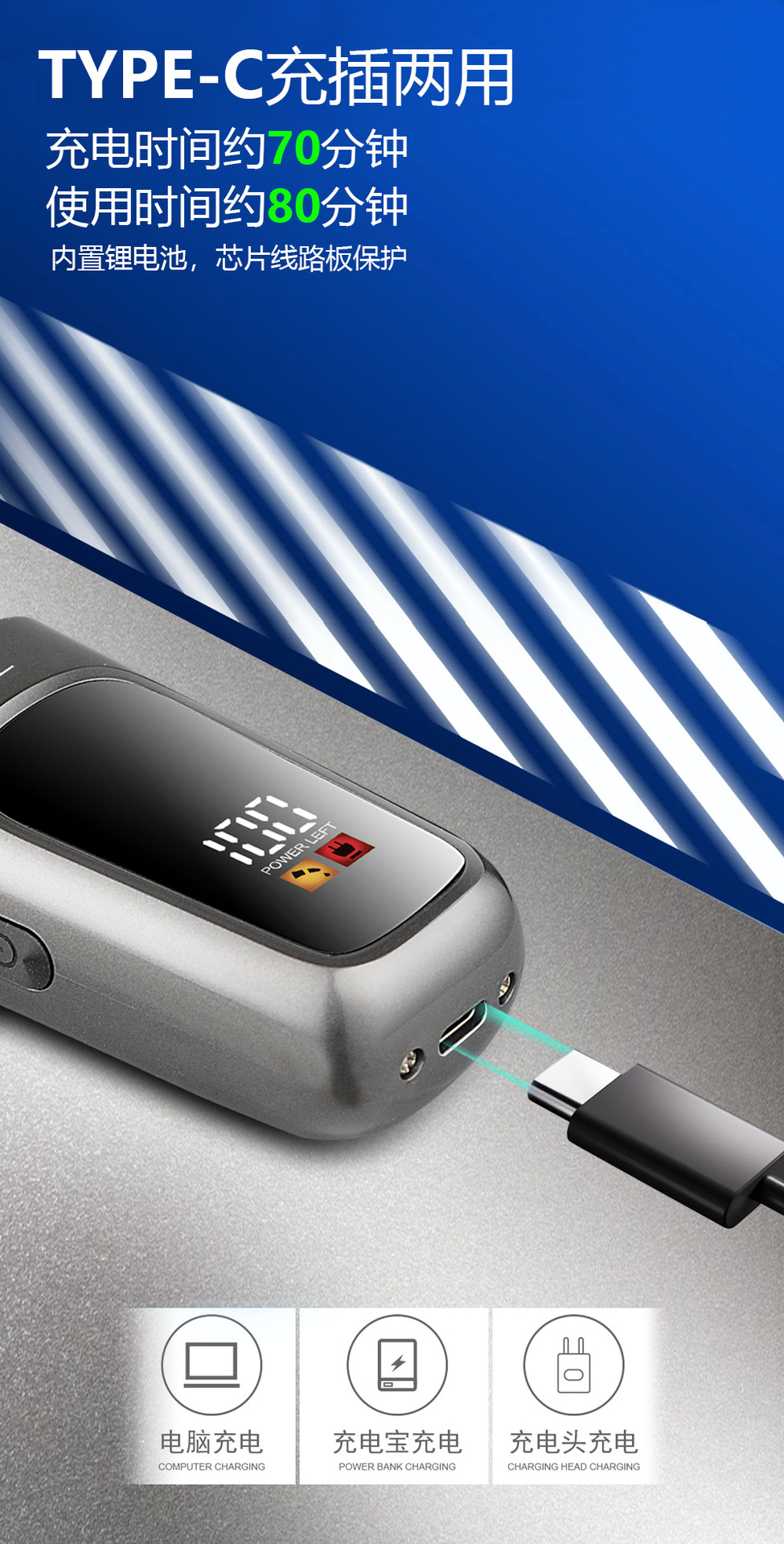 Cross-border pisau cukur rambut HTC baru, alat pemotong rambut elektrik mini Portabel USB dapat diisi ulang kepala pencukur minyak