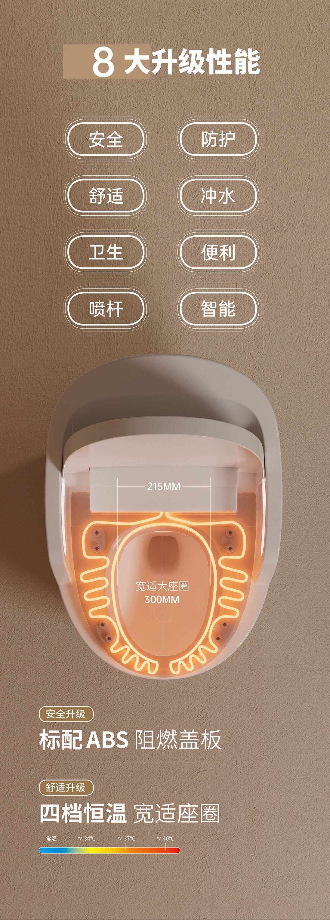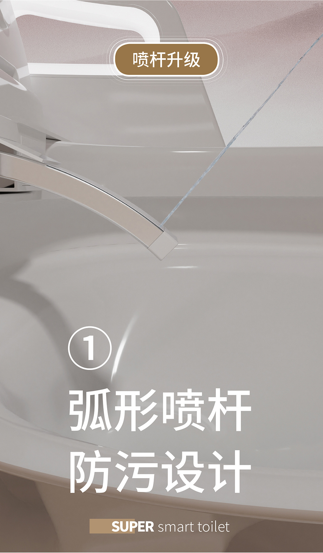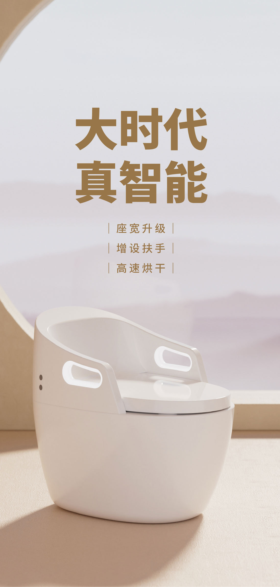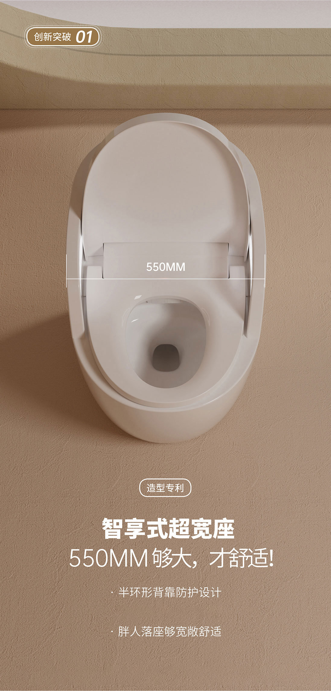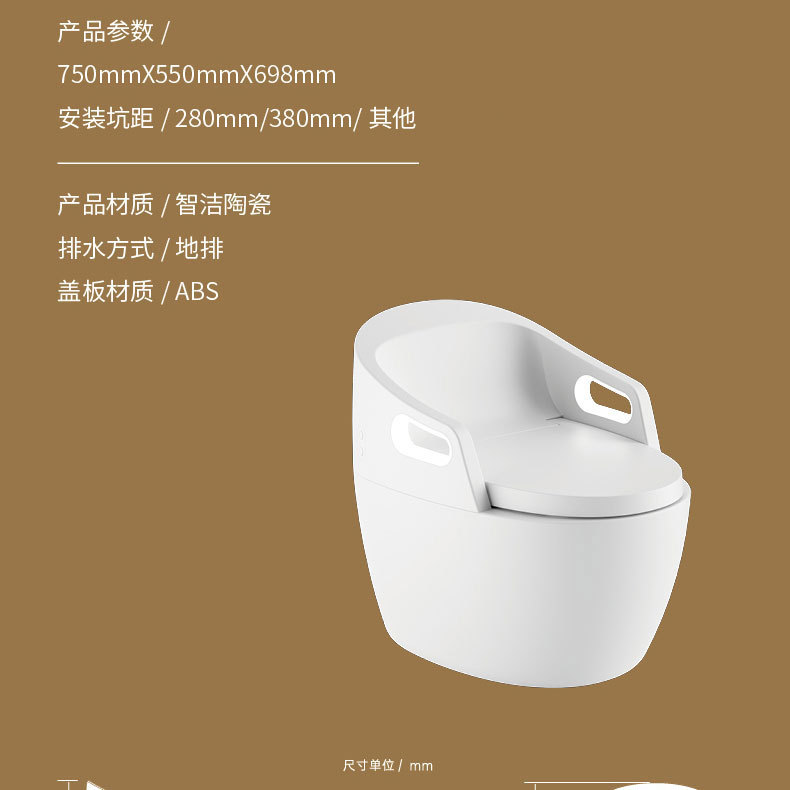 Toilet rumah tangga ukuran besar, toilet pintar dengan sandaran tangan terintegrasi, pelindung busa sifon ultra-besar