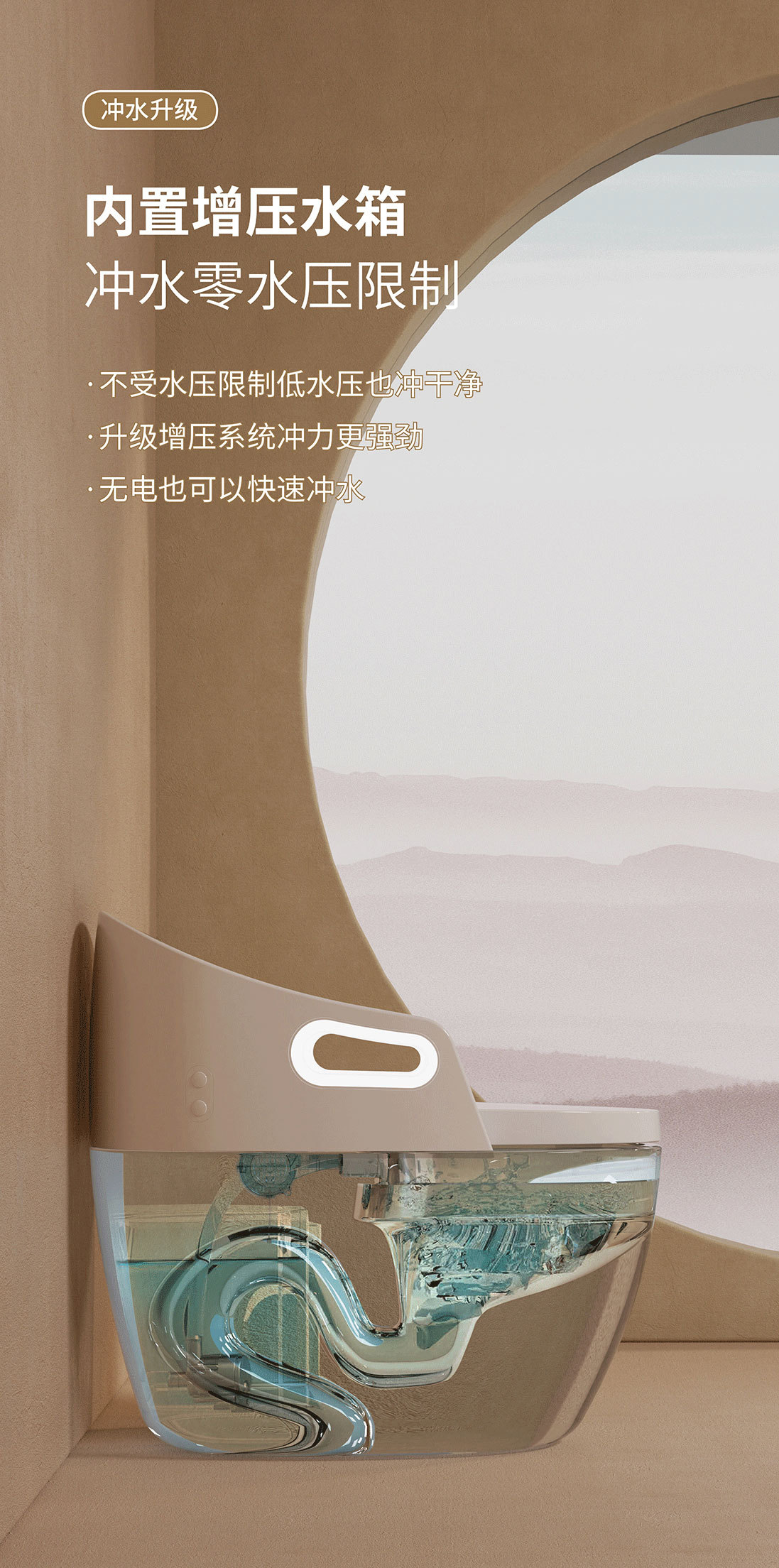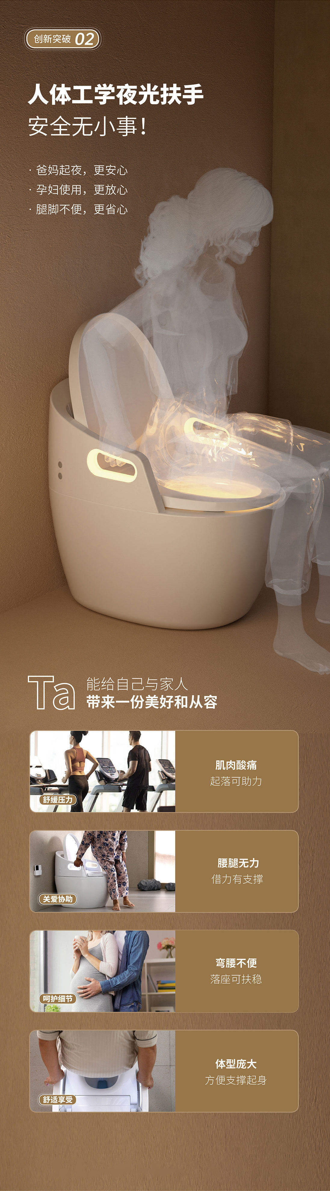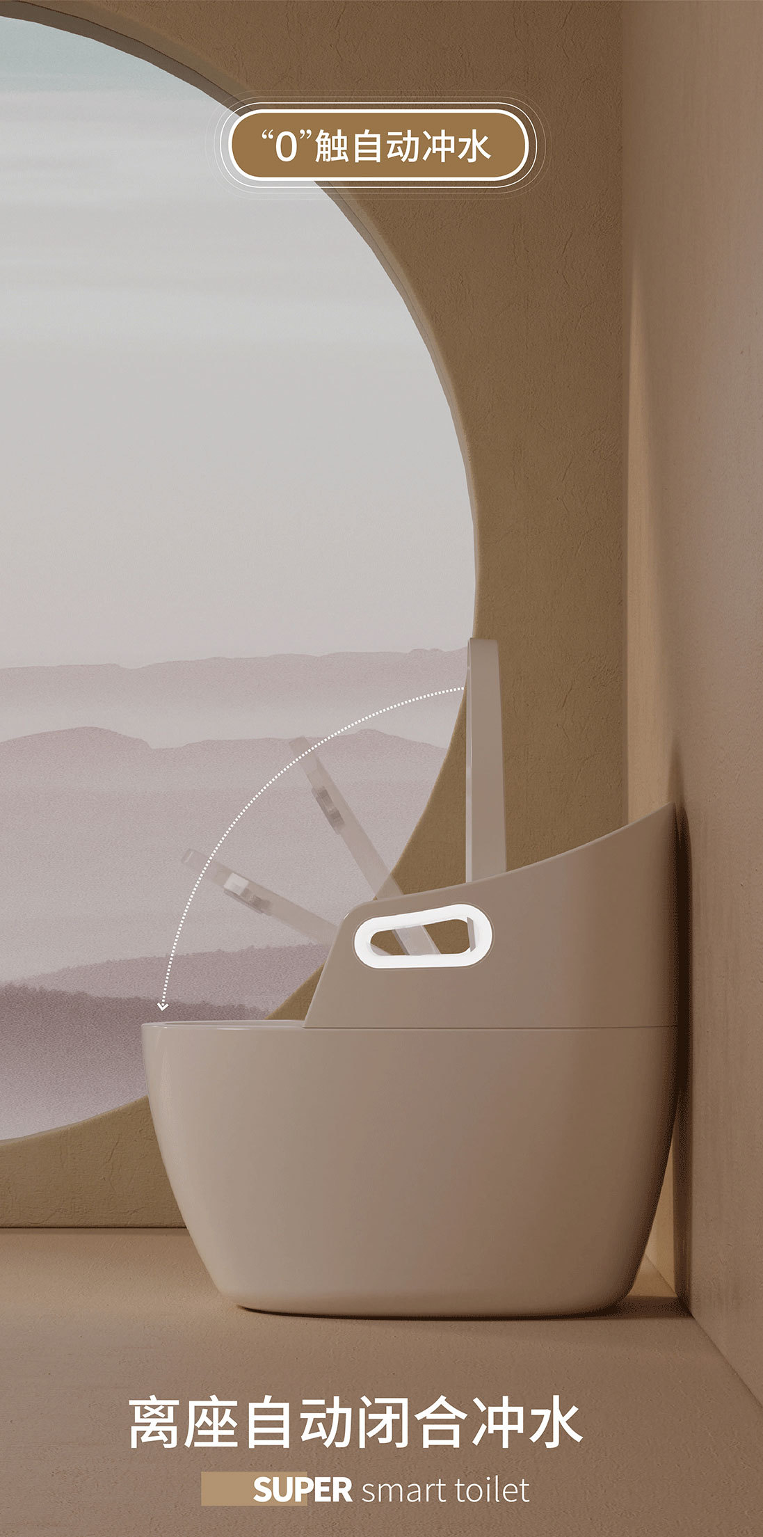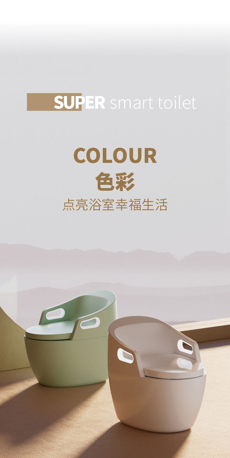 Toilet rumah tangga ukuran besar, toilet pintar dengan sandaran tangan terintegrasi, pelindung busa sifon ultra-besar