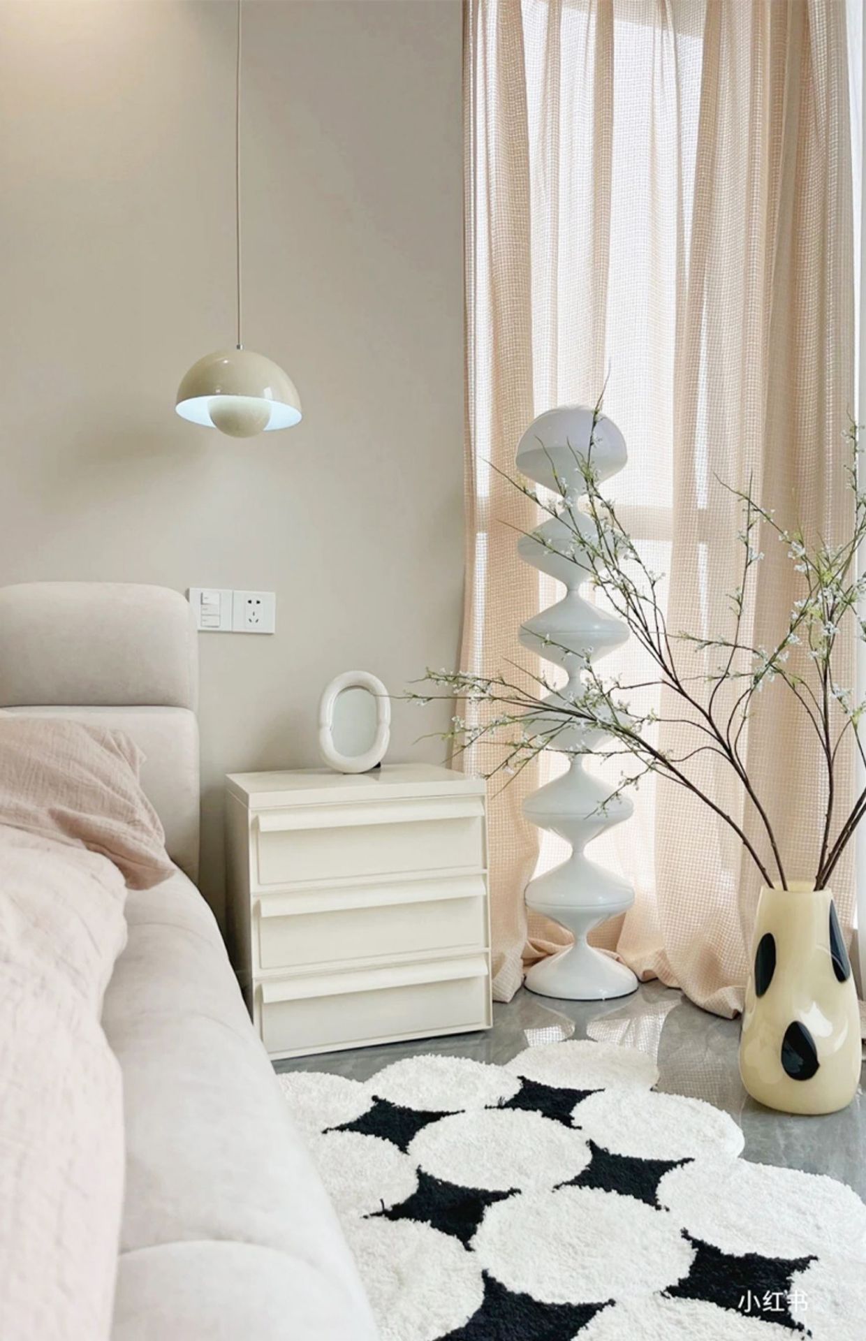 Lampu gantung gaya krim kamar tidur tempat tidur angkat lampu bar restoran modern sederhana lampu bunga Denmark lampu gantung garis panjang