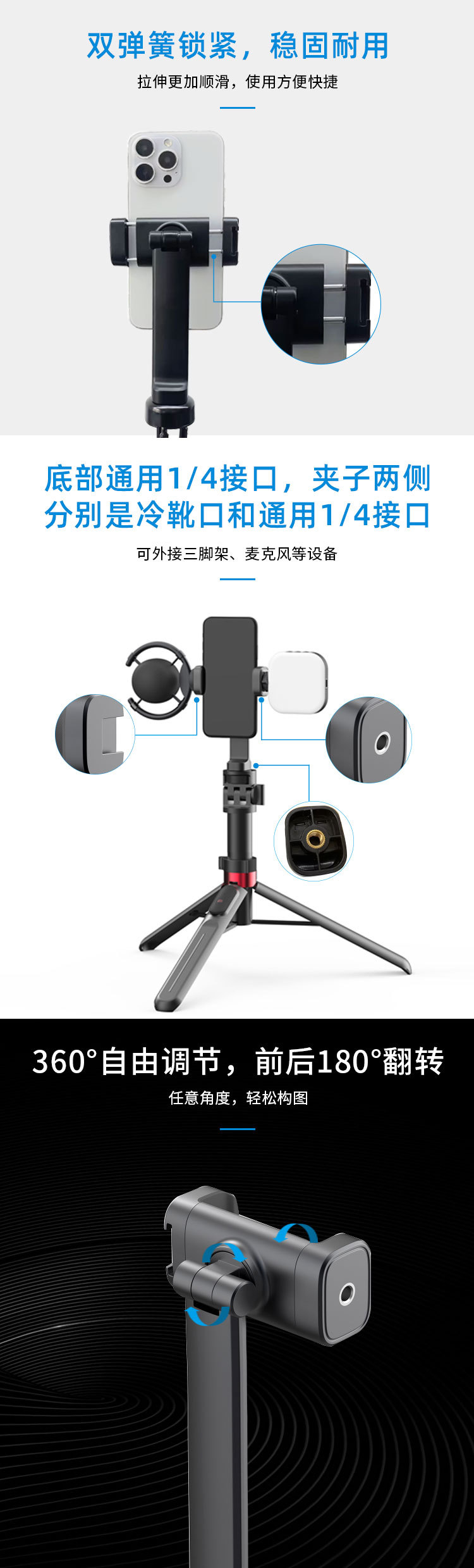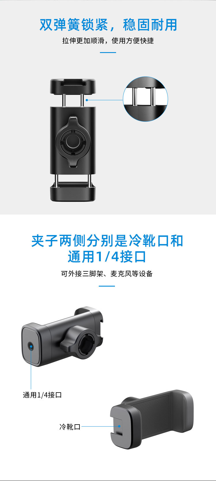 Penyangga leher ponsel, dudukan mobil, tripod olahraga, tongkat selfie, aksesori fotografi, cold shoe, klip ponsel 1/4 bentuk E.