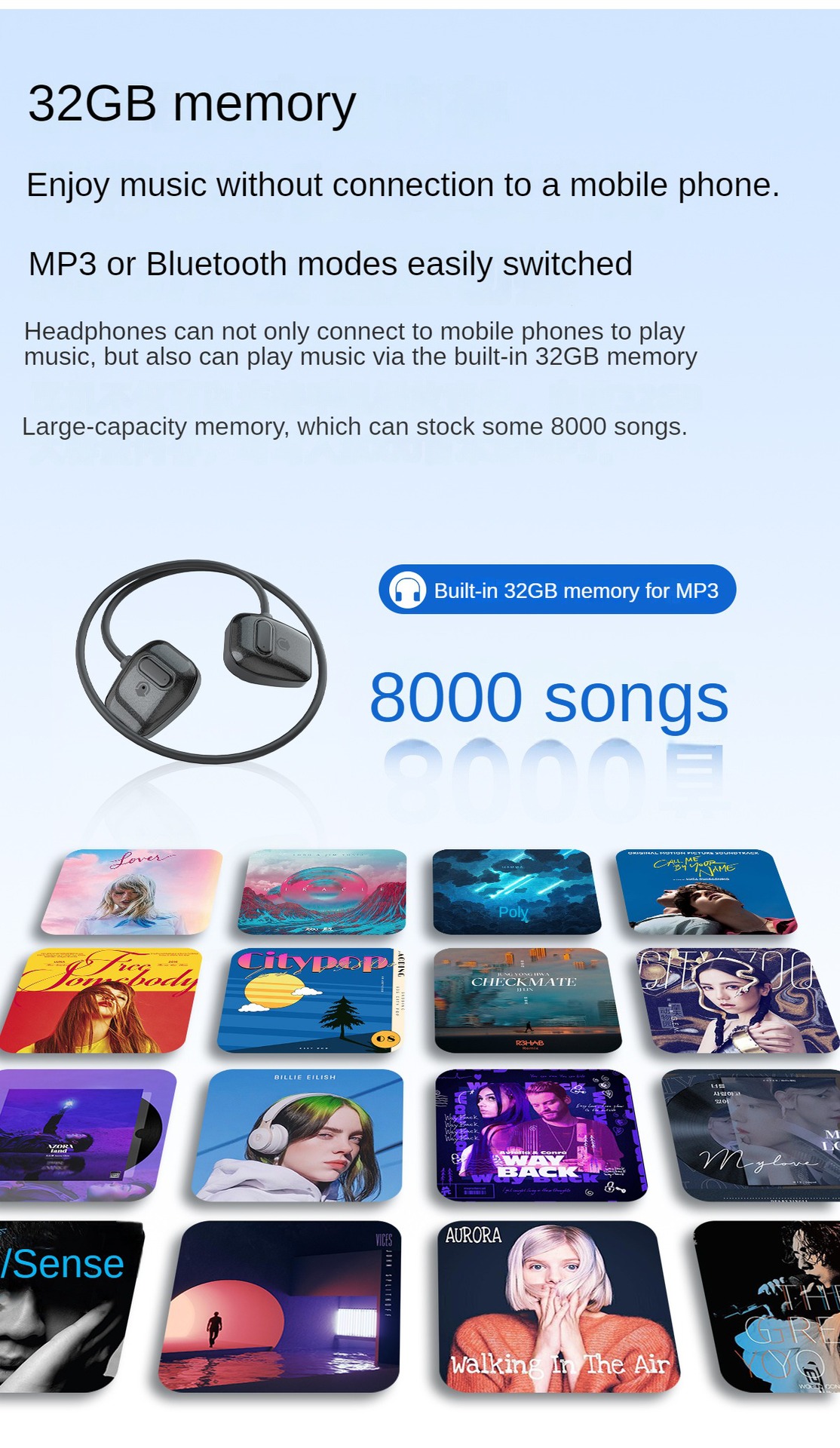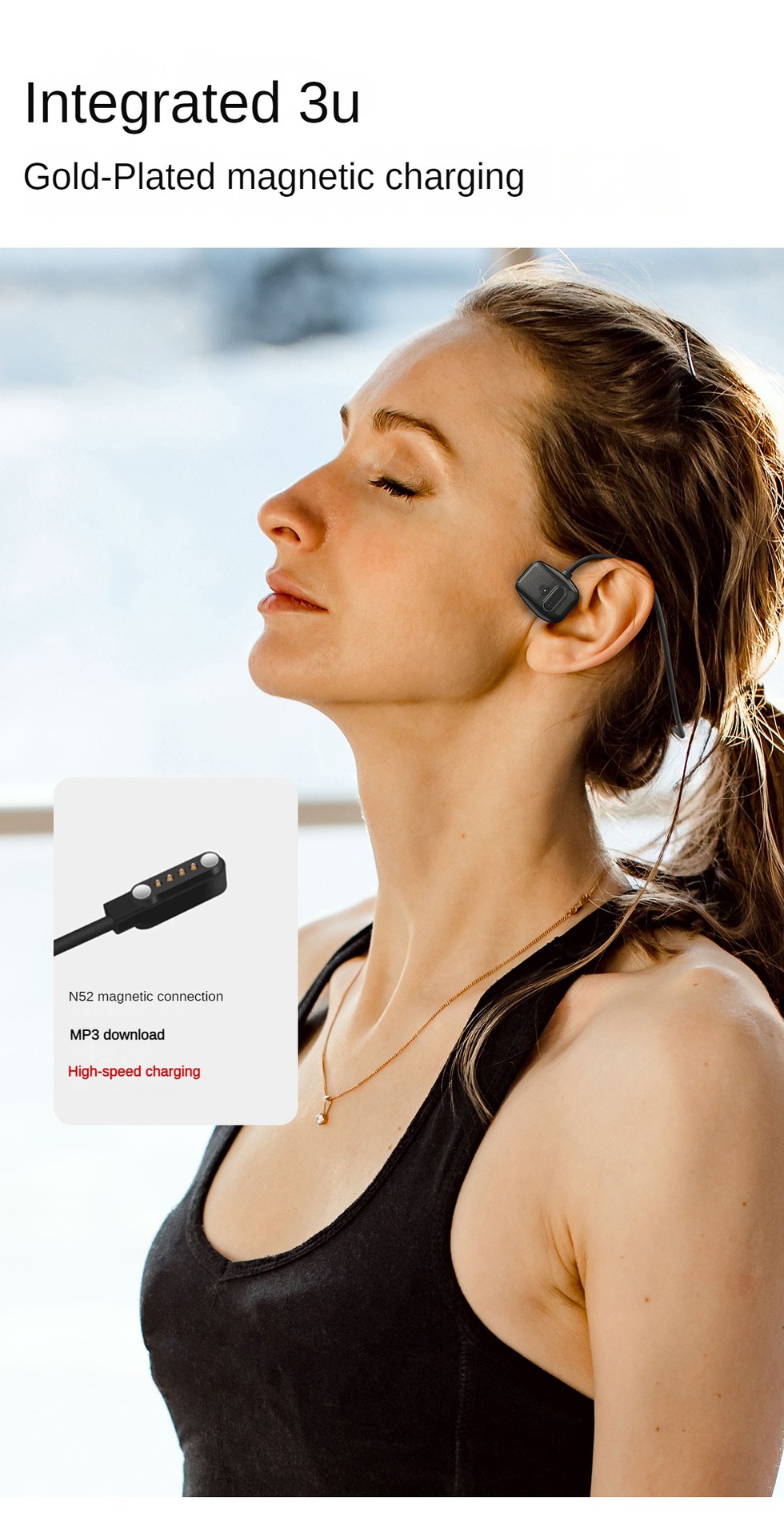 Earphone Konduksi Tulang Olahraga Berlari Subwoofer Berlari Super Panjang Daya Tahan Air 32G Kelas 8 Tahan Air