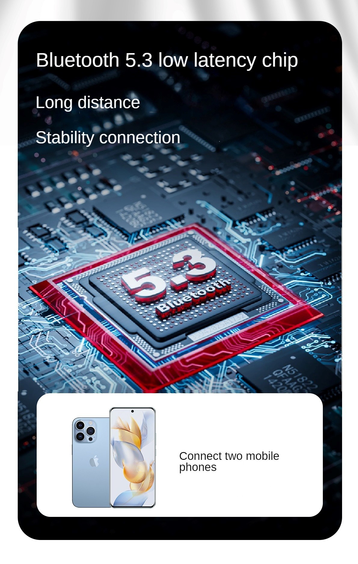【SMART CONNECTIVITY】: Bluetooth 5.3 + Dual-Device Multipoint Powered by the latest Bluetooth 5.3 for an ultra-stable connection. Connect to two devices simultaneously (e.g., your phone and laptop). Our Smart Priority Mode ensures you never miss a call notification even while listening to your MP3 playlist.