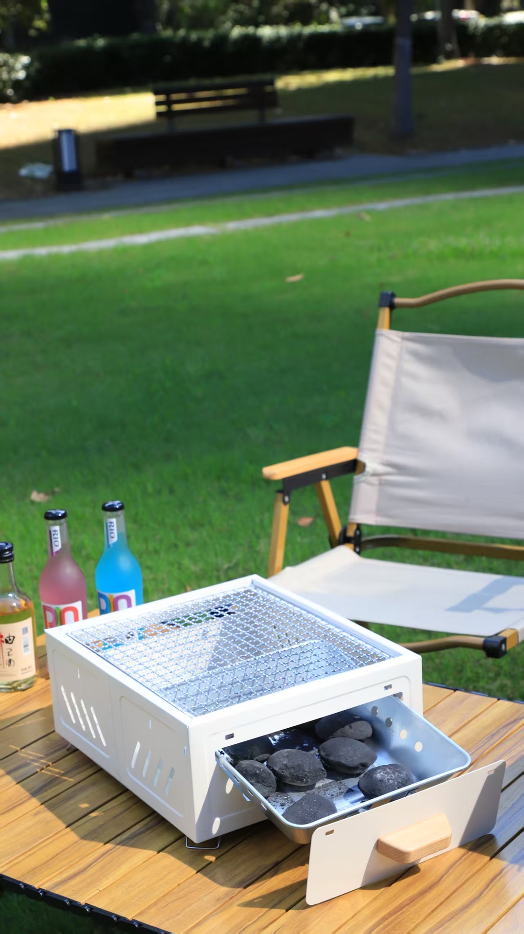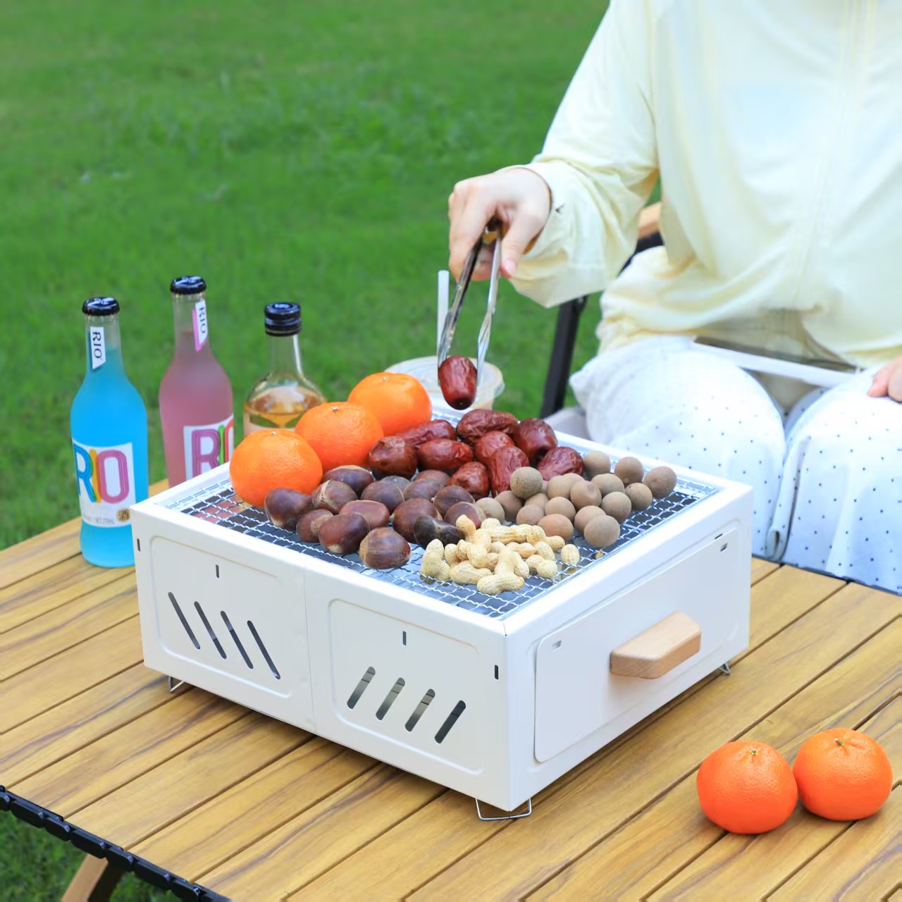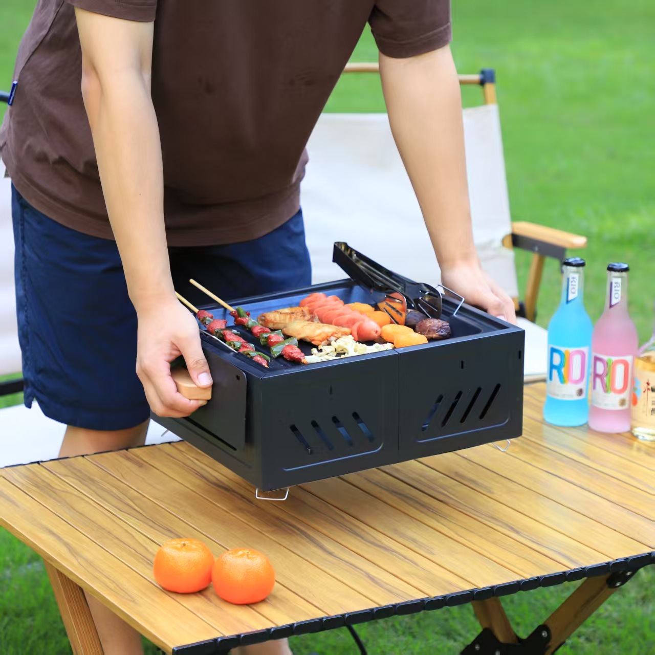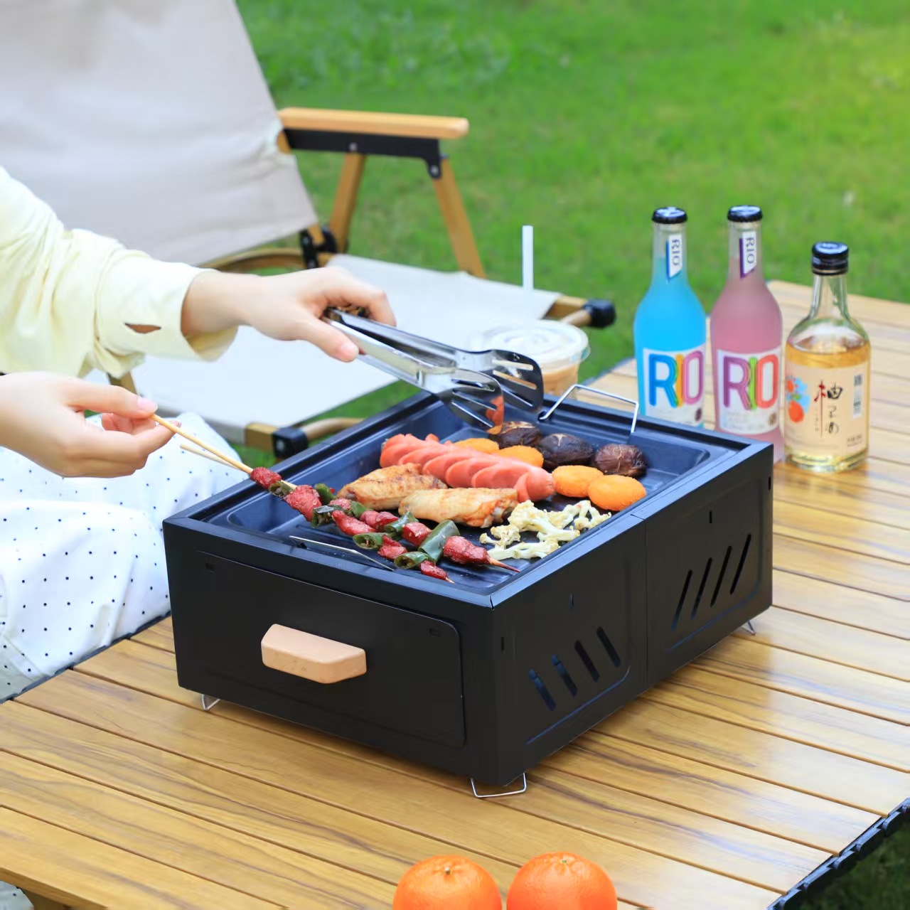 Panggangan barbekyu untuk berkemah di luar ruangan untuk penggunaan di rumah, rak barbekyu arang portabel, kompor persegi untuk menyiapkan teh, kompor laci yang mudah dibersihkan.
