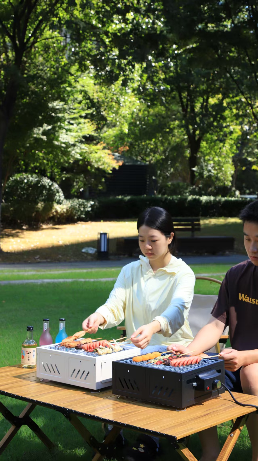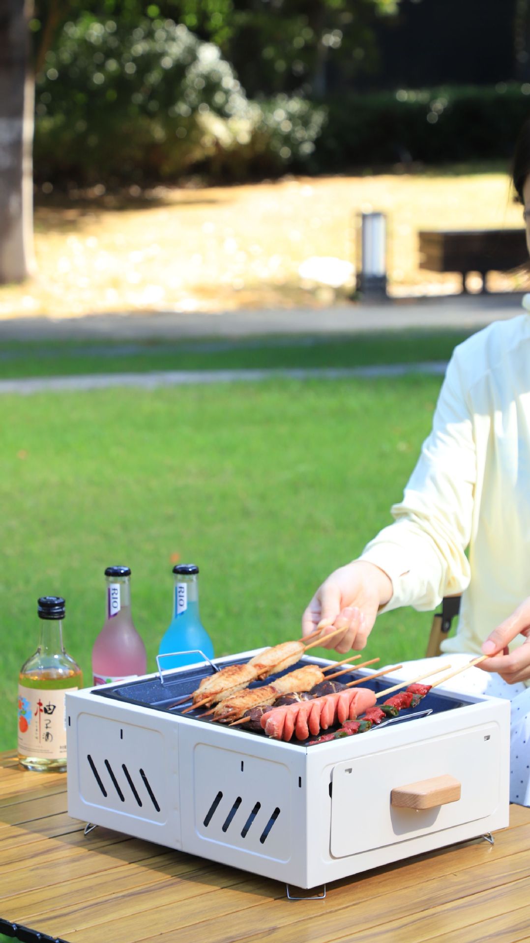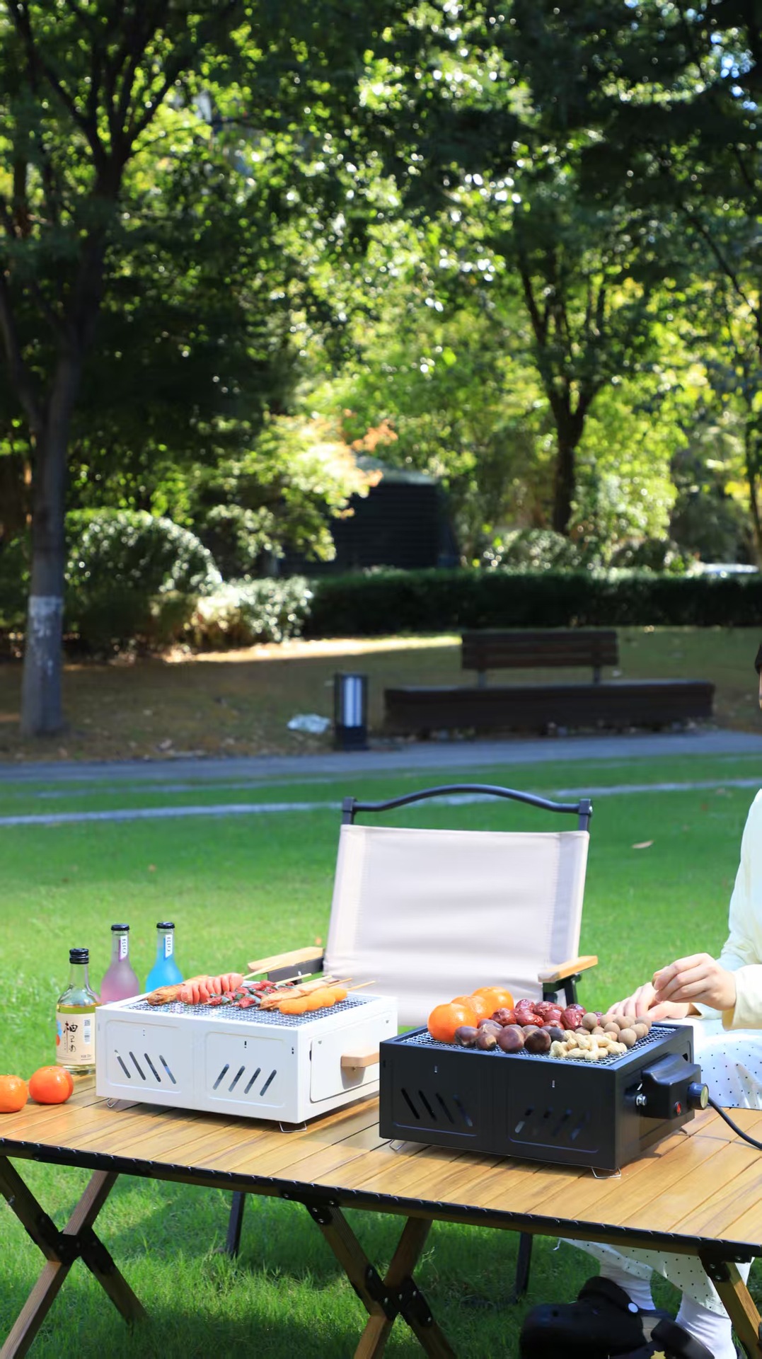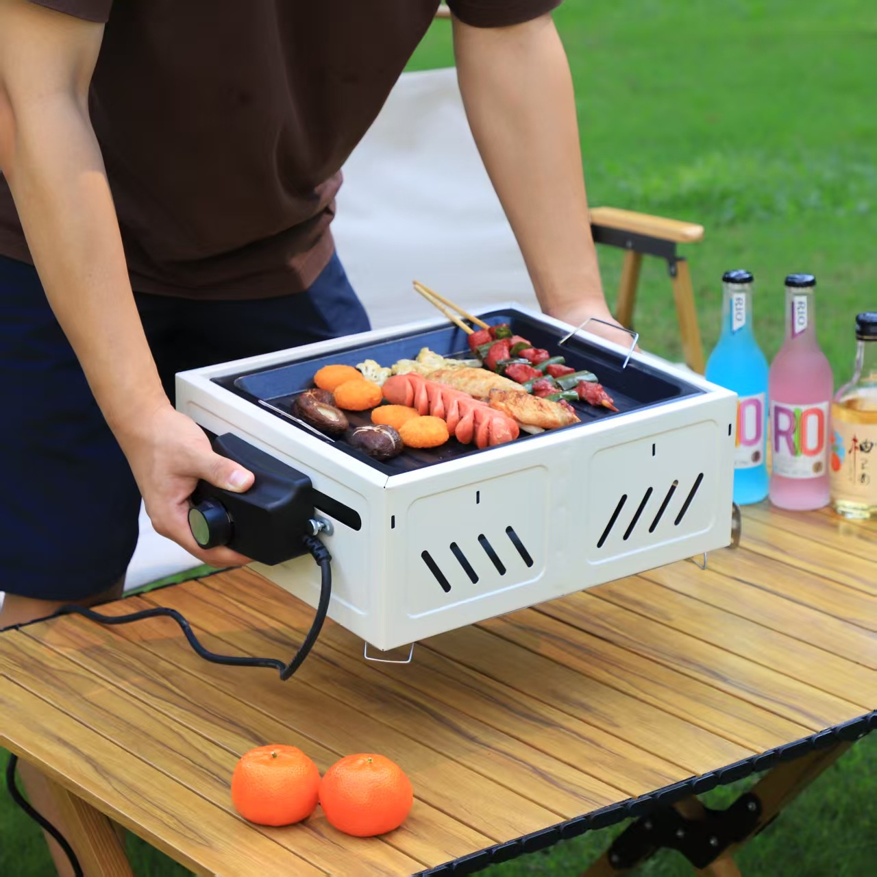 Panggangan barbekyu untuk berkemah di luar ruangan untuk penggunaan di rumah, rak barbekyu arang portabel, kompor persegi untuk menyiapkan teh, kompor laci yang mudah dibersihkan.