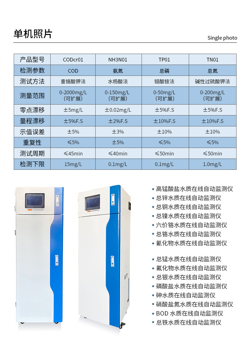 Monitor online logam berat kualitas air industri besi tembaga sianida nitrogen seng COD total fosfor total nitrogen detektor