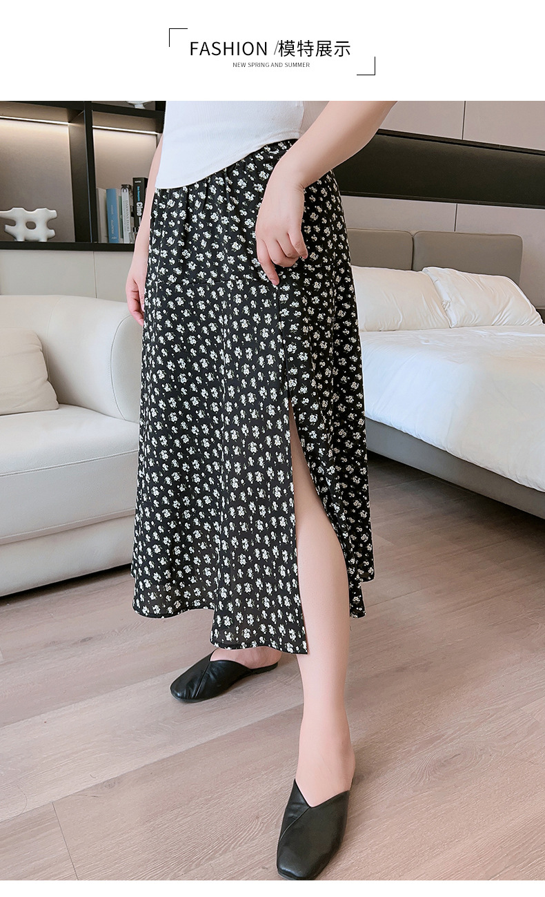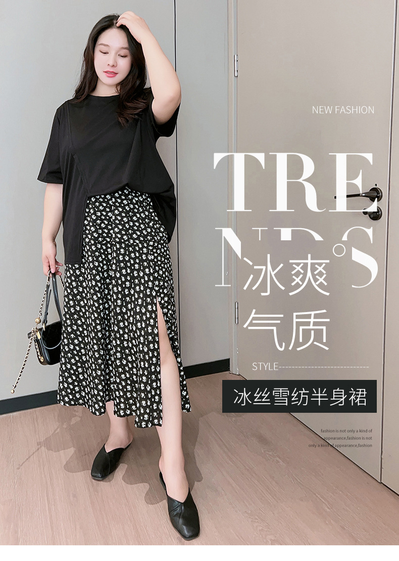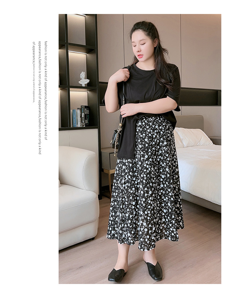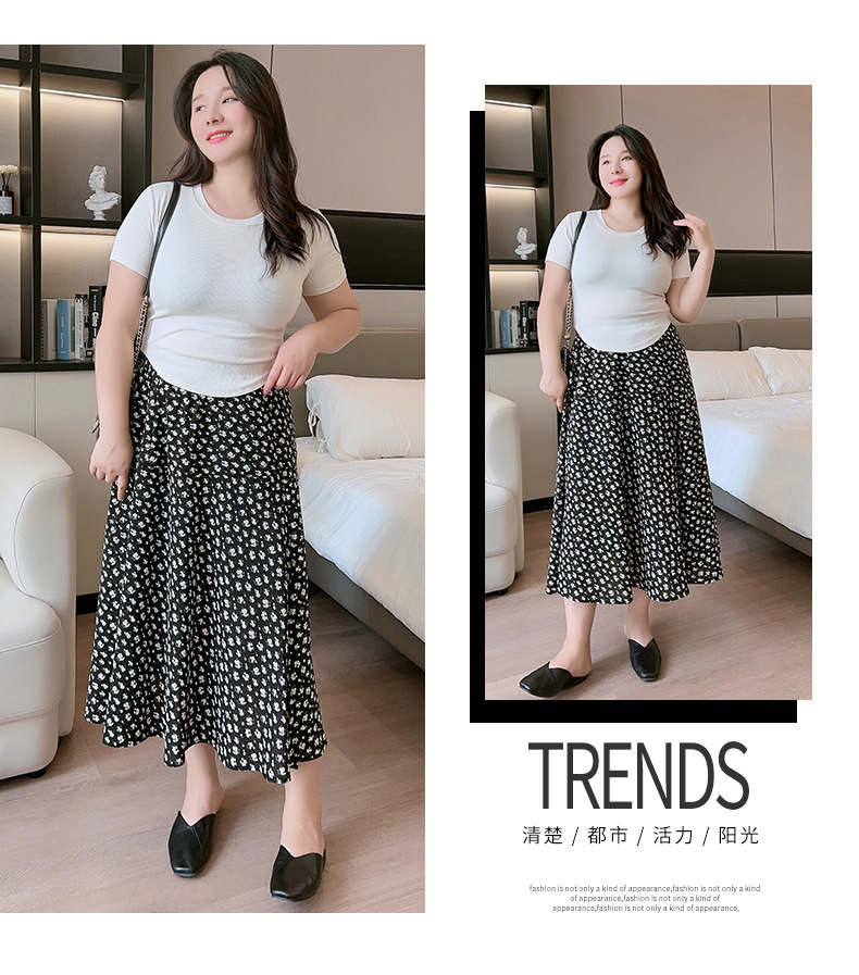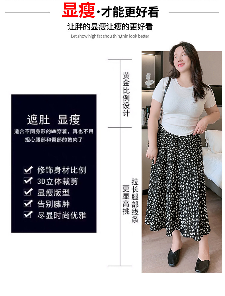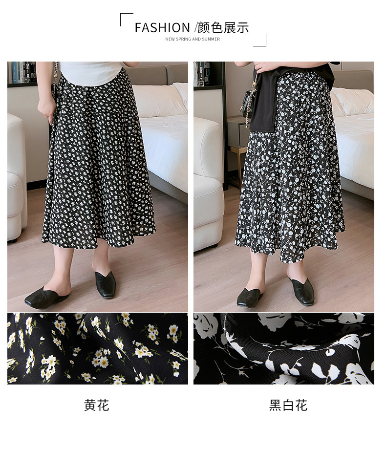 Rok bunga sifon wanita, rok a-line serbaguna pelangsing penutup pinggang tinggi mm200 kg ukuran besar tipis musim panas