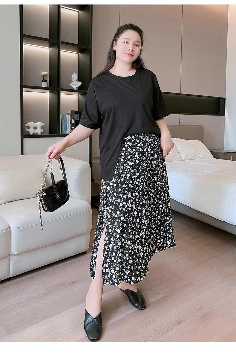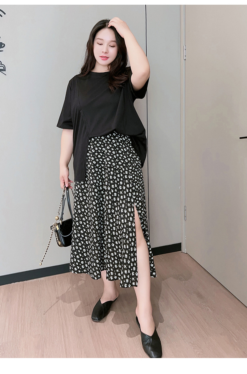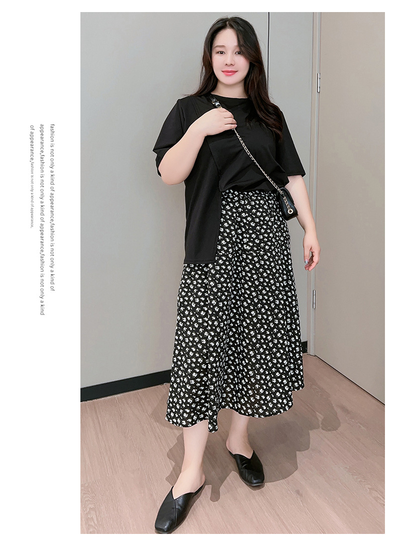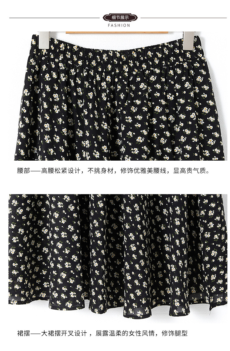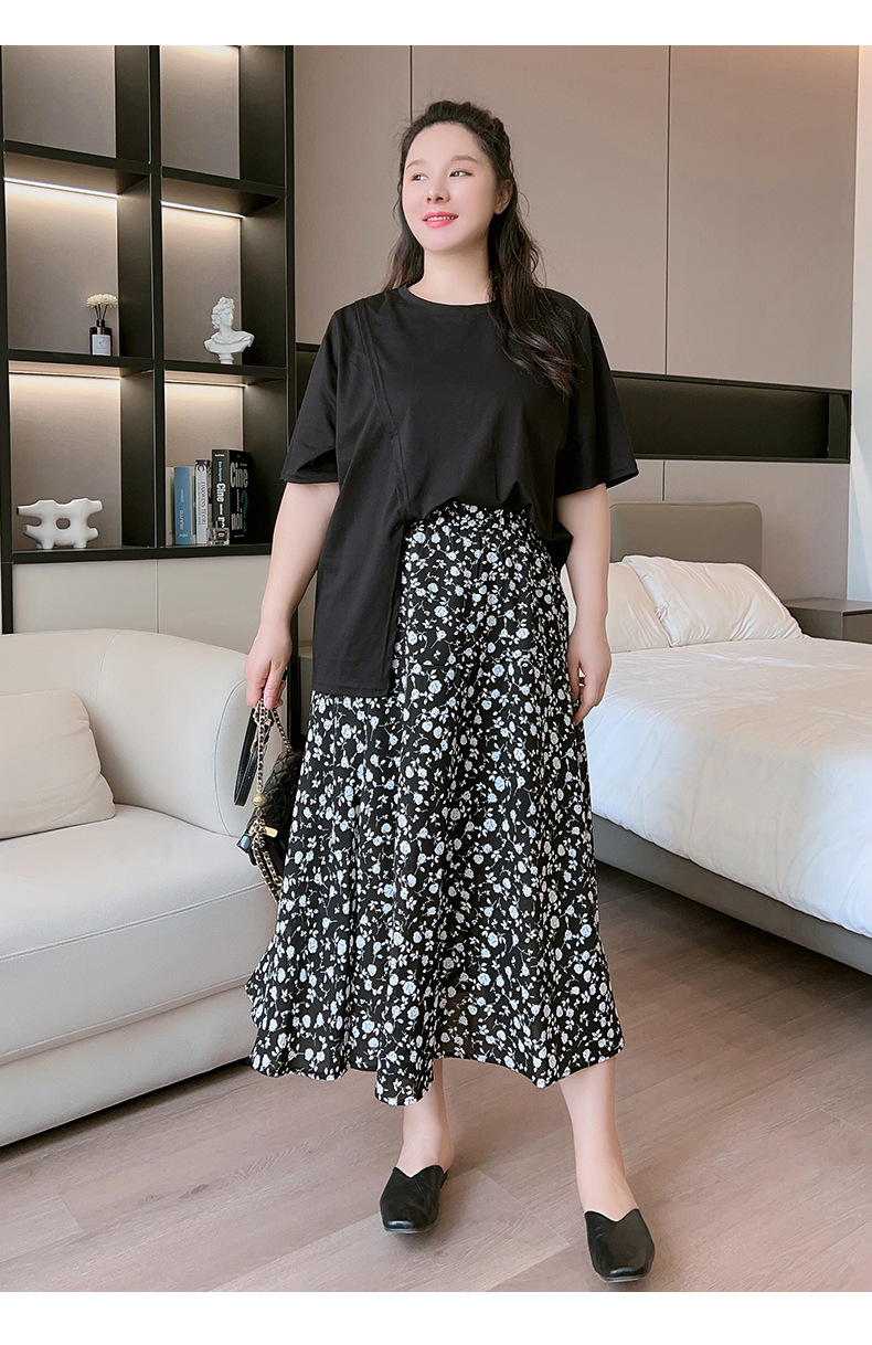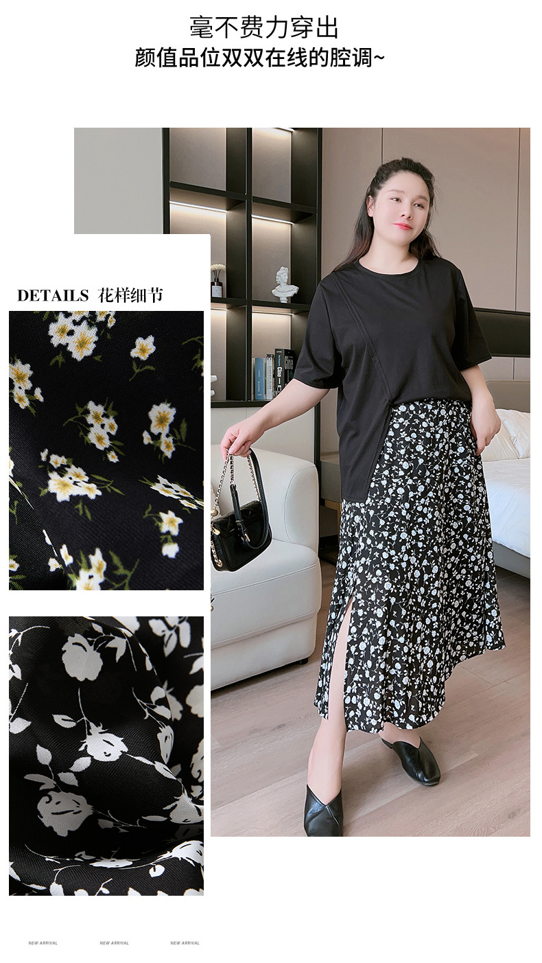 Rok bunga sifon wanita, rok a-line serbaguna pelangsing penutup pinggang tinggi mm200 kg ukuran besar tipis musim panas