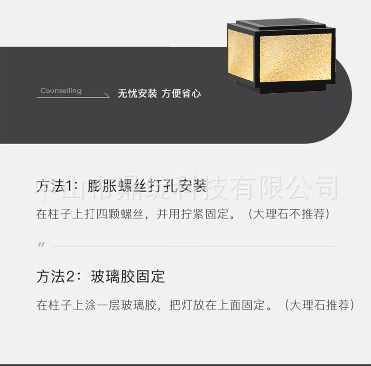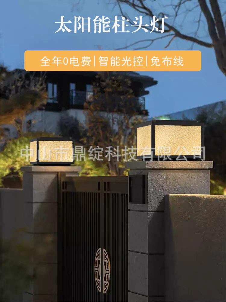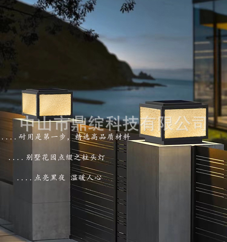 Lampu pilar surya, lampu taman luar ruangan elektrik tahan air pencahayaan pintu pilar Taman villa
