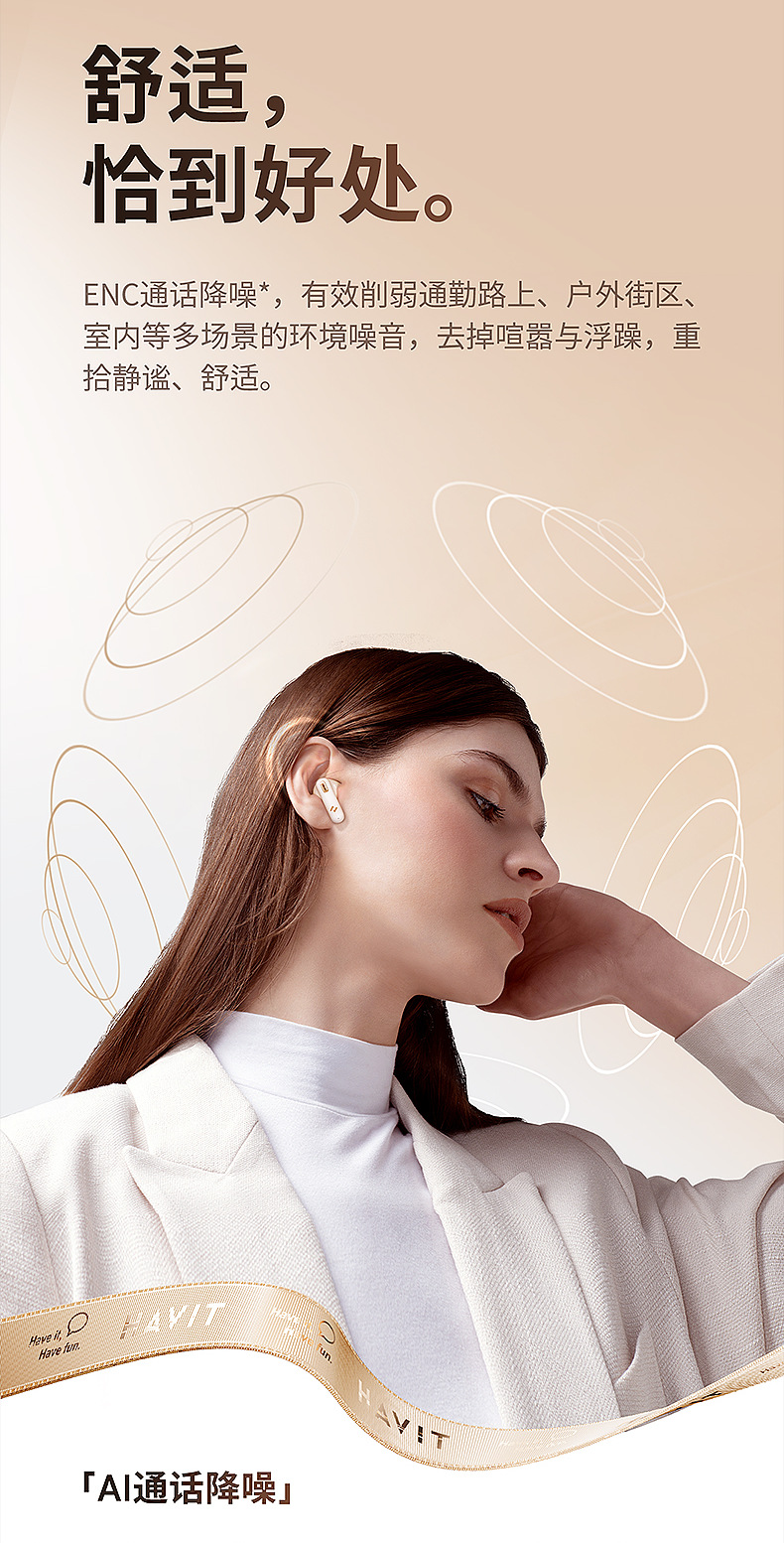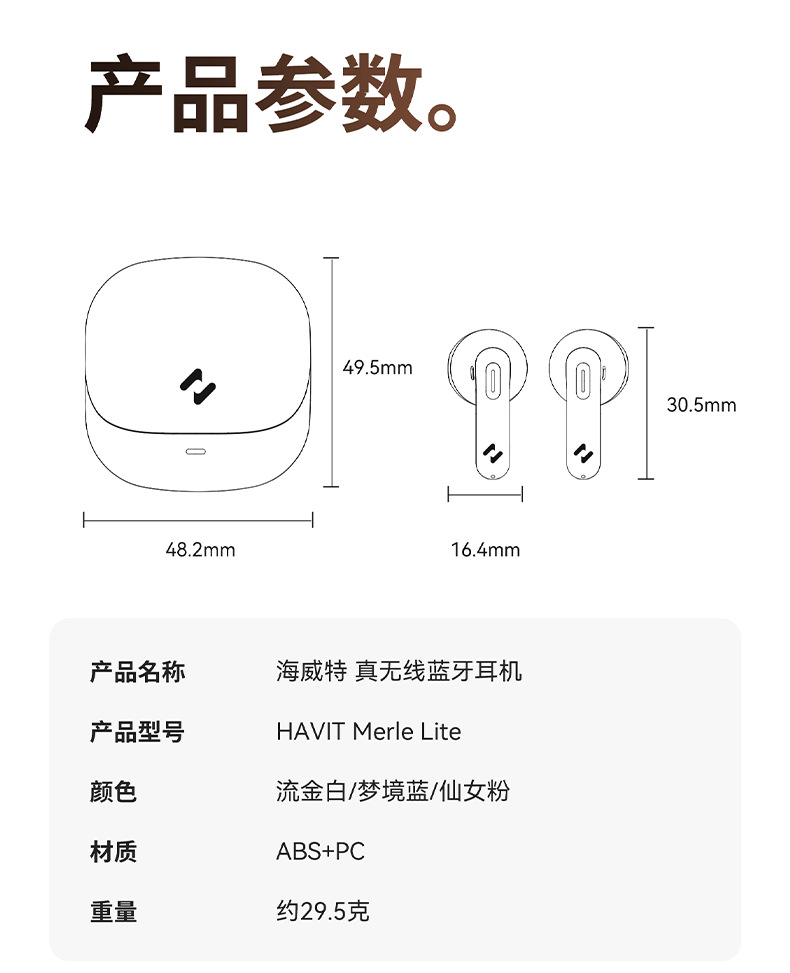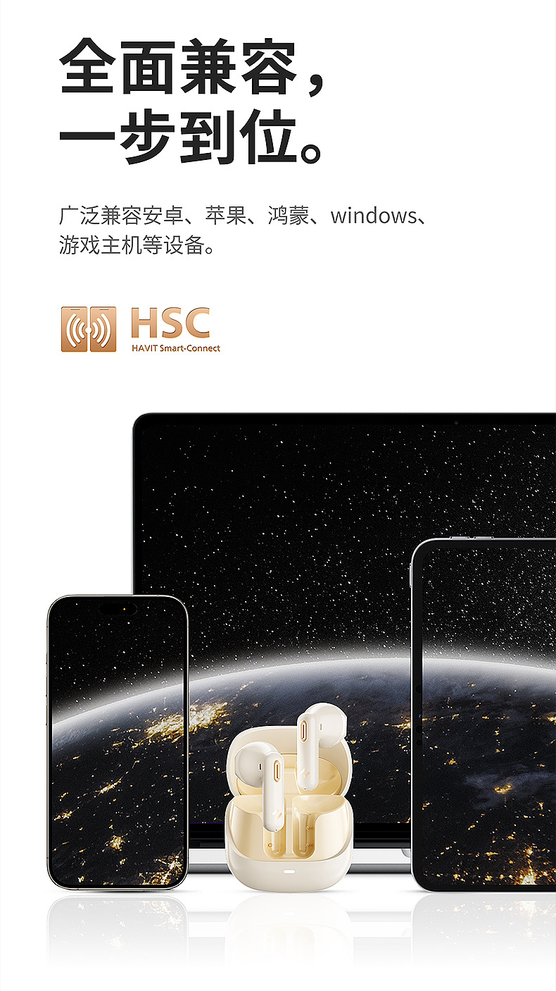 Earphone Bluetooth nirkabel Havit S3merlelite dengan daya tahan baterai yang lama dan peredam bising panggilan ENC