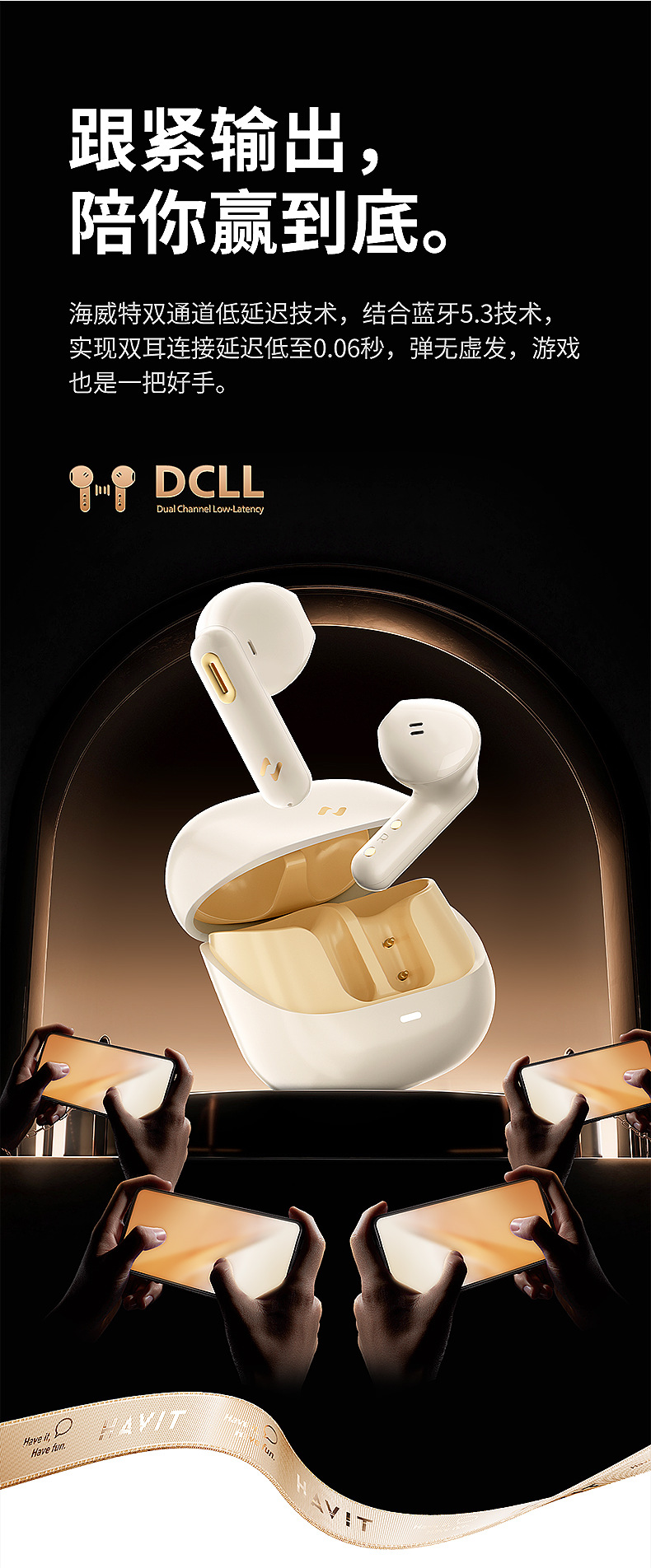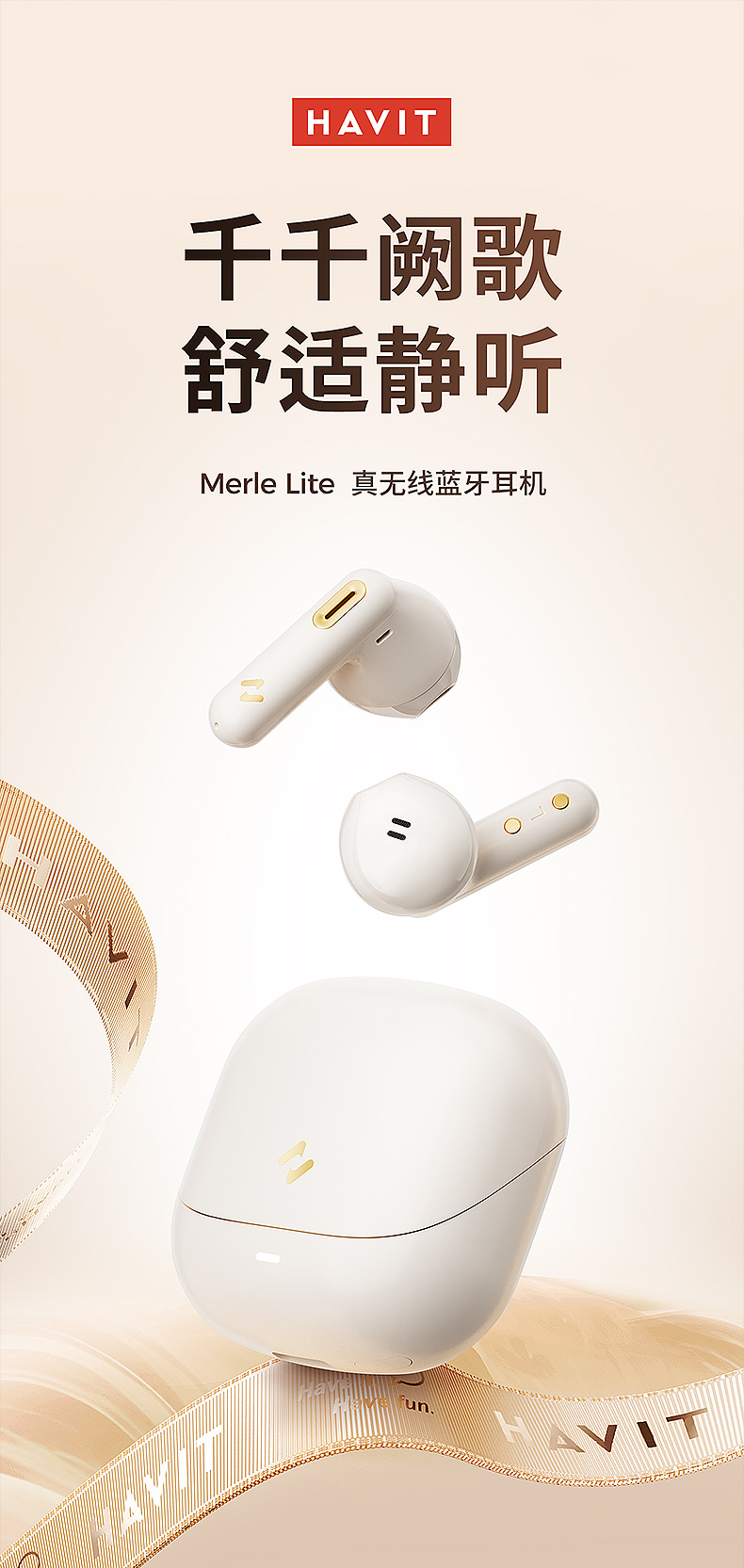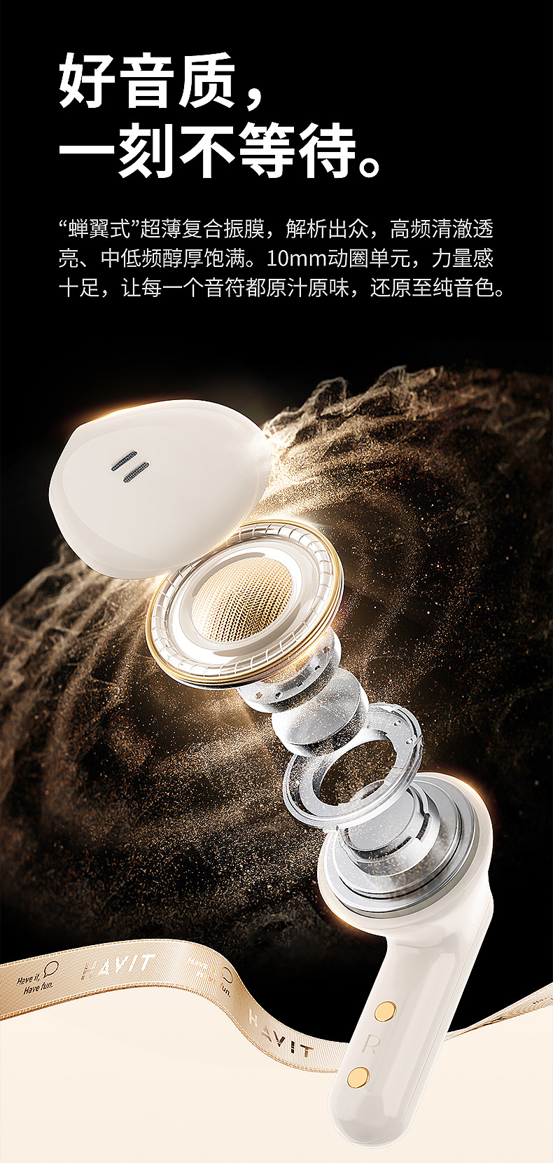 Earphone Bluetooth nirkabel Havit S3merlelite dengan daya tahan baterai yang lama dan peredam bising panggilan ENC