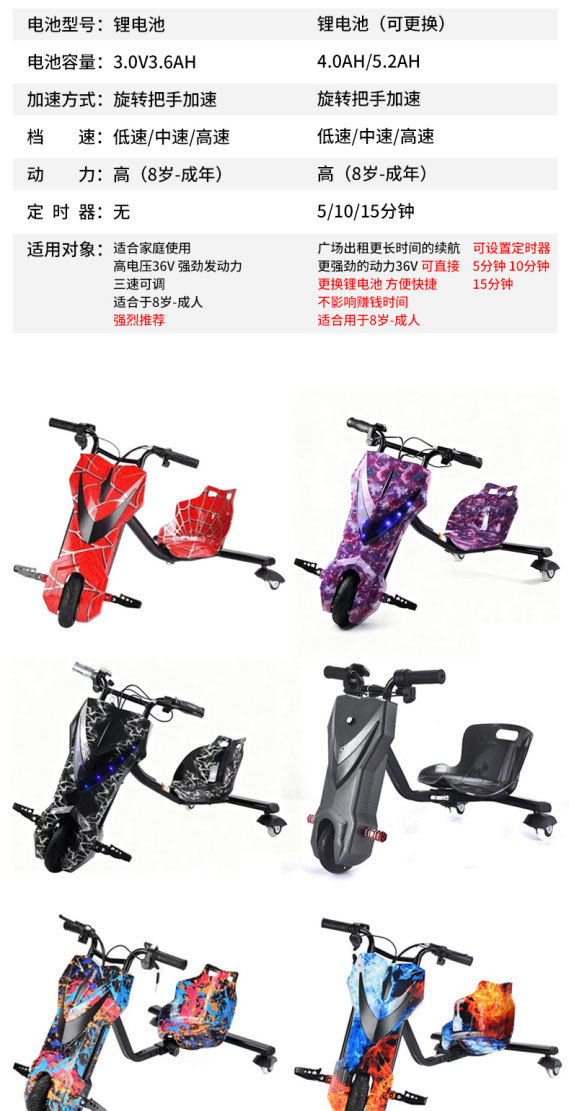 Trike listrik drift persewaan, go-kart roda tiga, mobil drift anak-anak, tersedia untuk disewa di kios, dapat dipesan dan tersedia dalam stok.