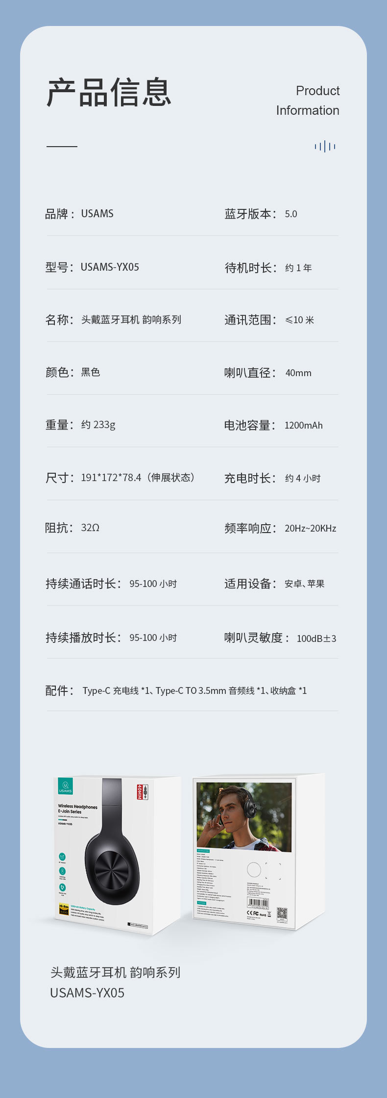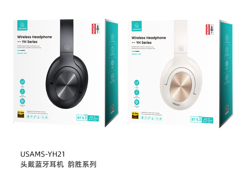 Headphone Bluetooth USAMS anti-noise over-ear lintas batas, daya tahan baterai lama, earphone nirkabel, latensi rendah untuk gaming, hadiah dari pabrik