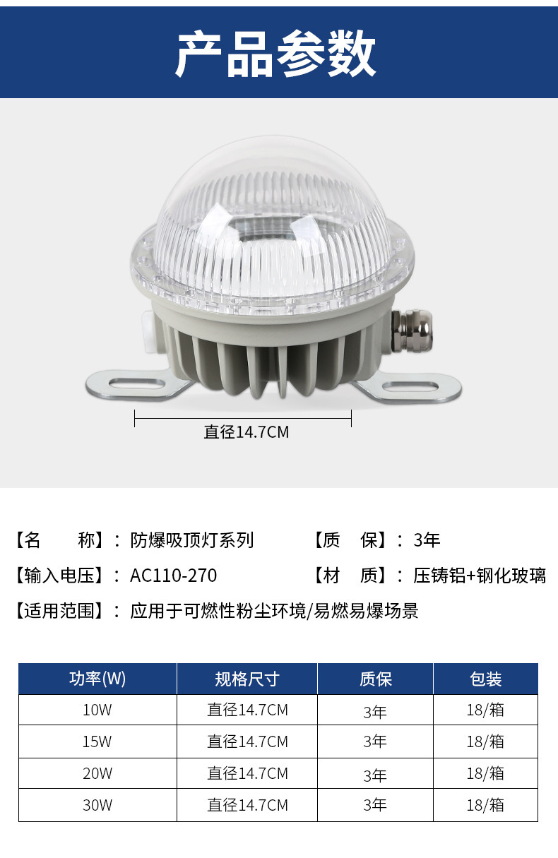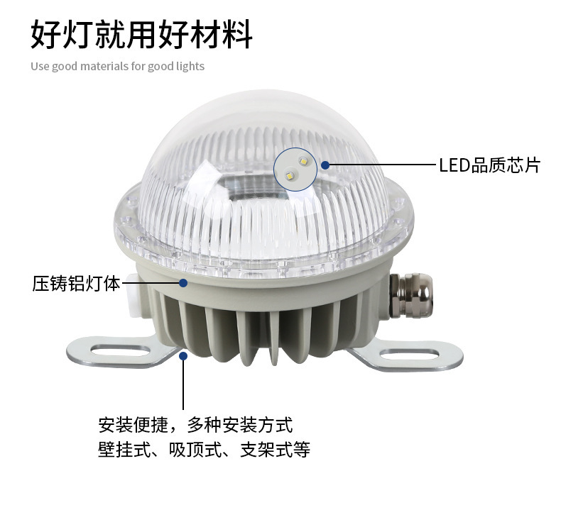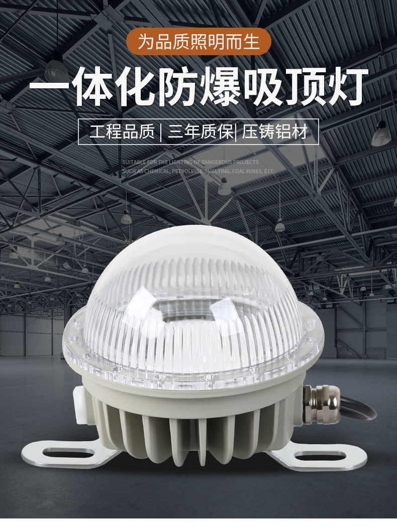Lampu langit-langit LED tahan ledakan, lampu darurat 36v 15W 20W untuk bengkel gudang tanaman Gas bulat tahan ledakan