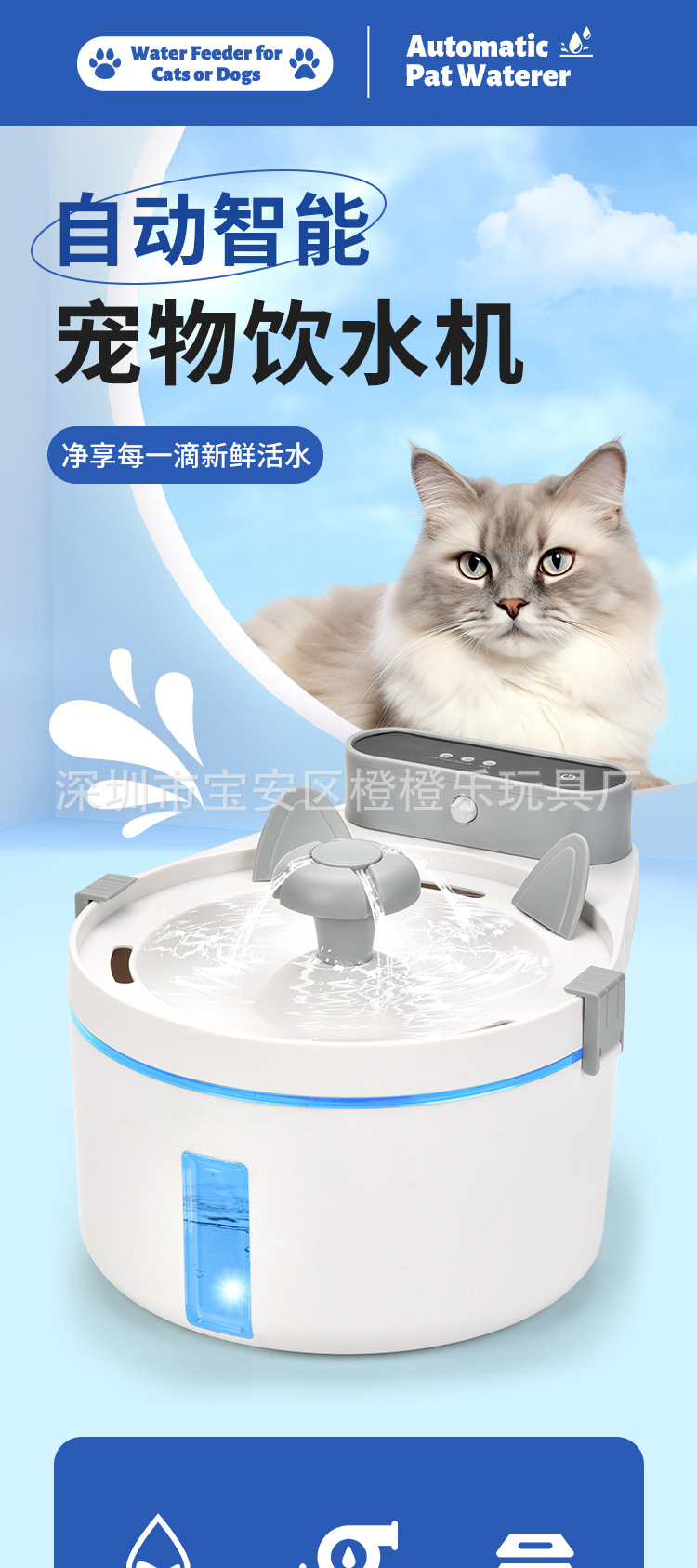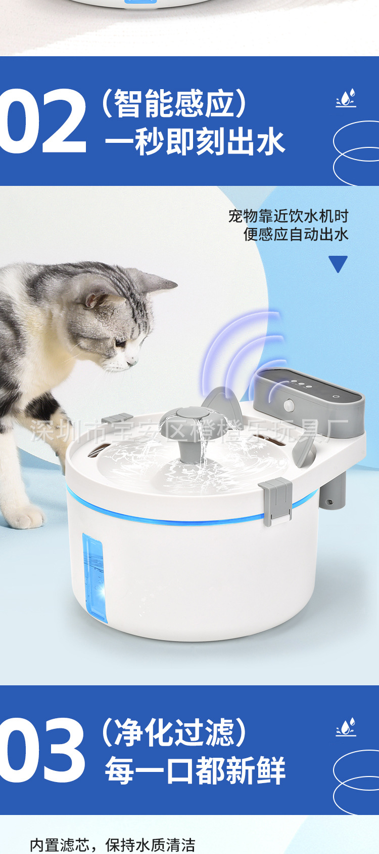 Dispenser air hewan peliharaan pintar lintas batas, mesin air mancur sirkulasi otomatis nirkabel, induksi cerdas, mesin pemberi makan air kucing anjing peliharaan tidak bersuara