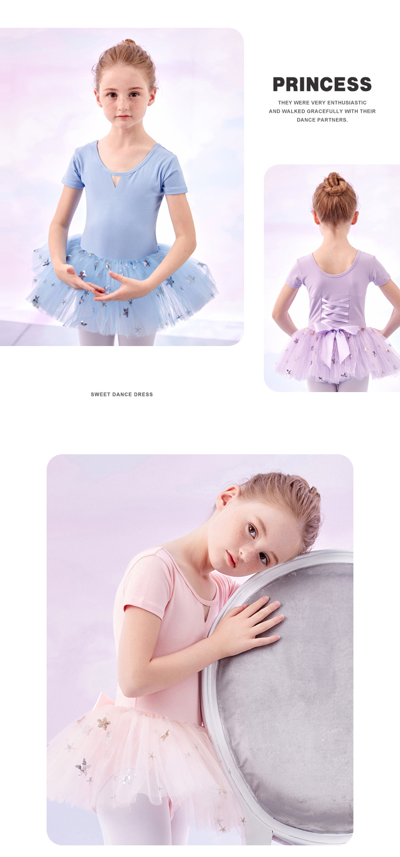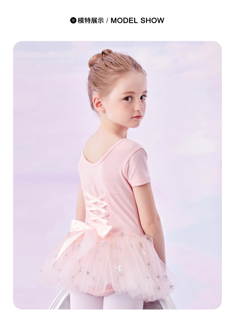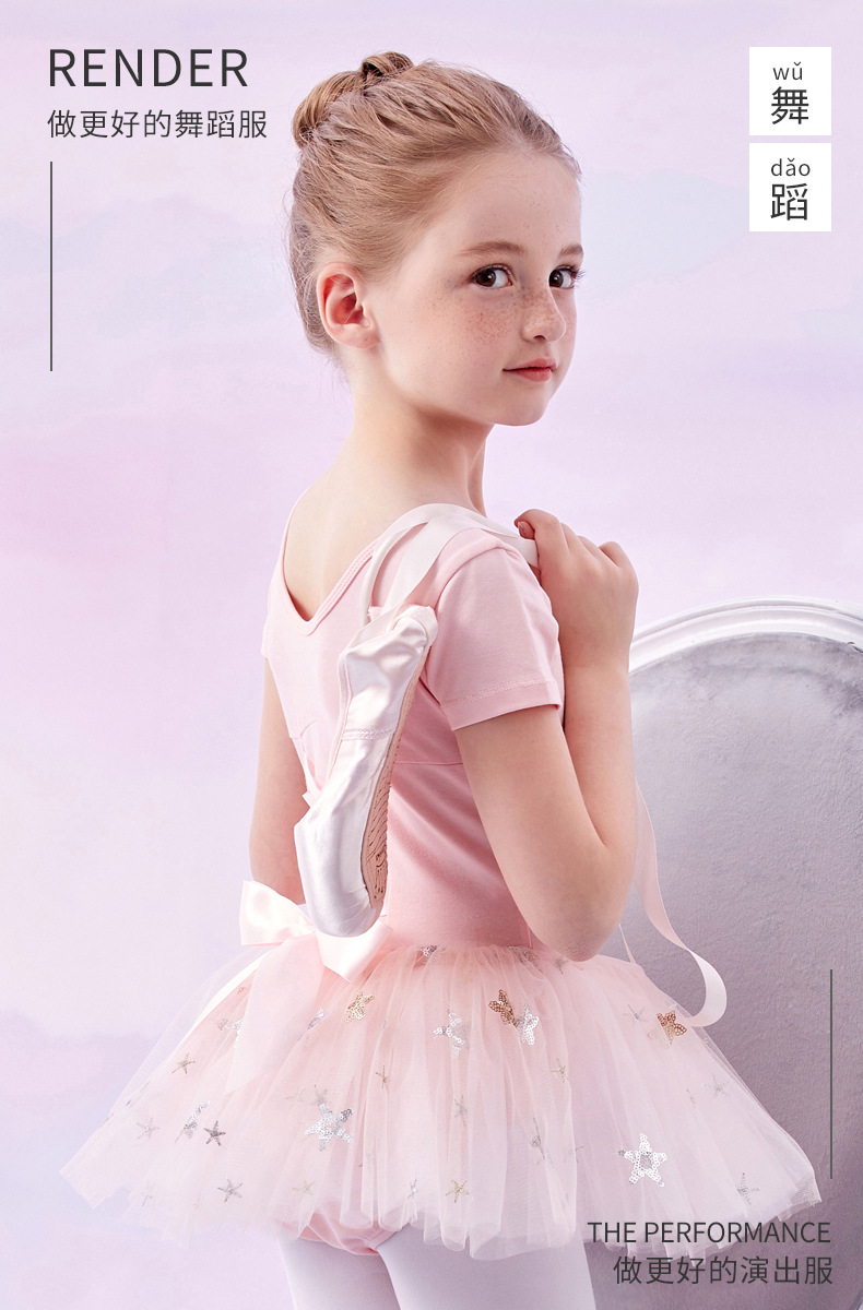 Pakaian dansa anak perempuan, baju dansa China lengan pendek, pakaian latihan menari, gaun balet putri musim panas dan semi