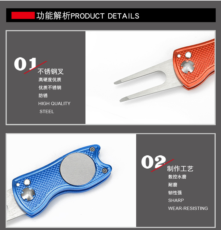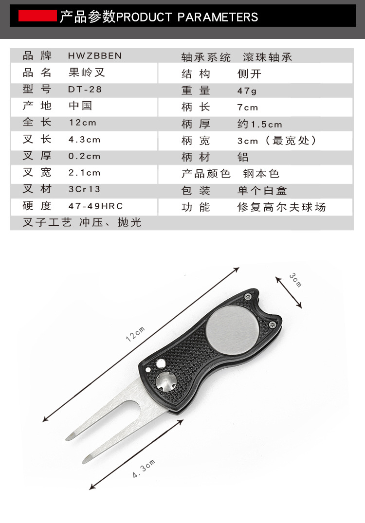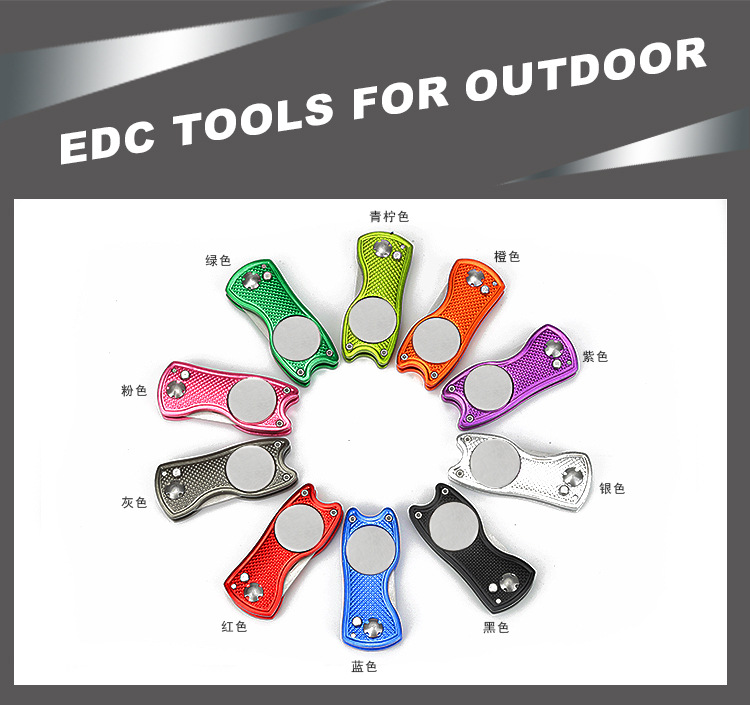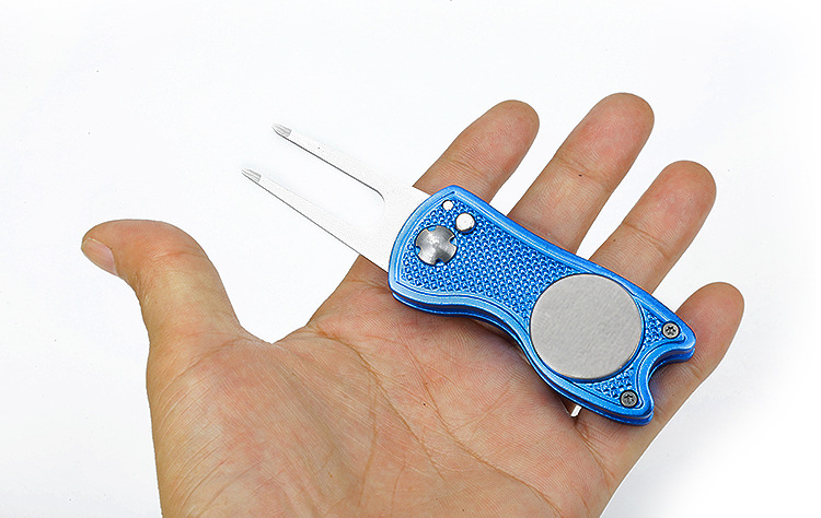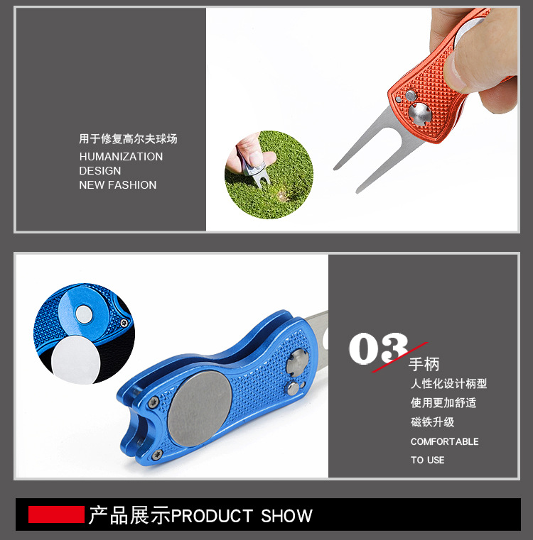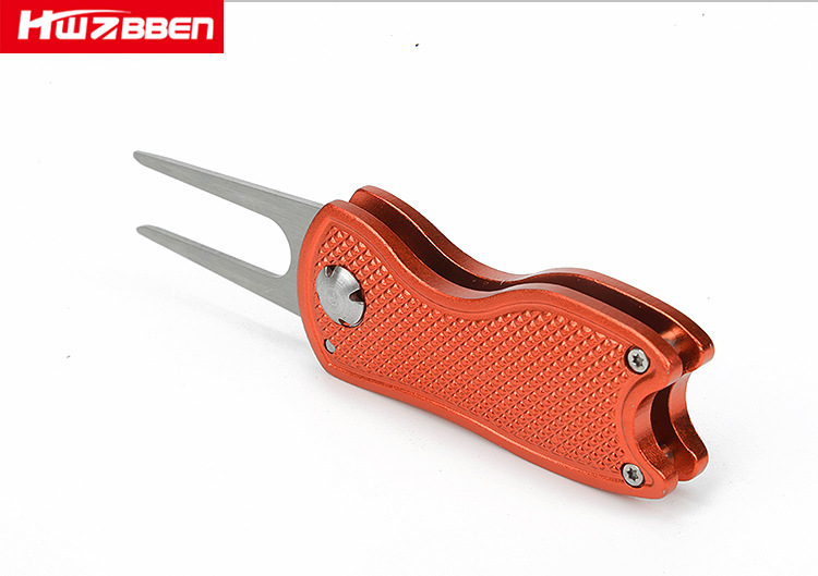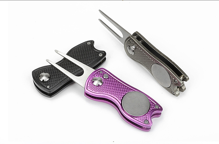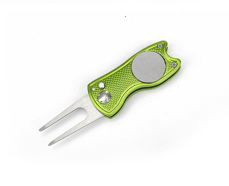 Garpu golf hijau tersedia, garpu lipat logam dengan gagang aluminium, alat garpu bola pegas, hadiah aksesori perawatan rumput