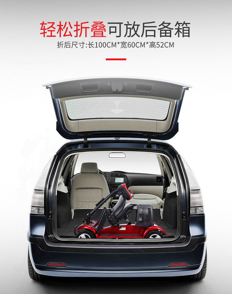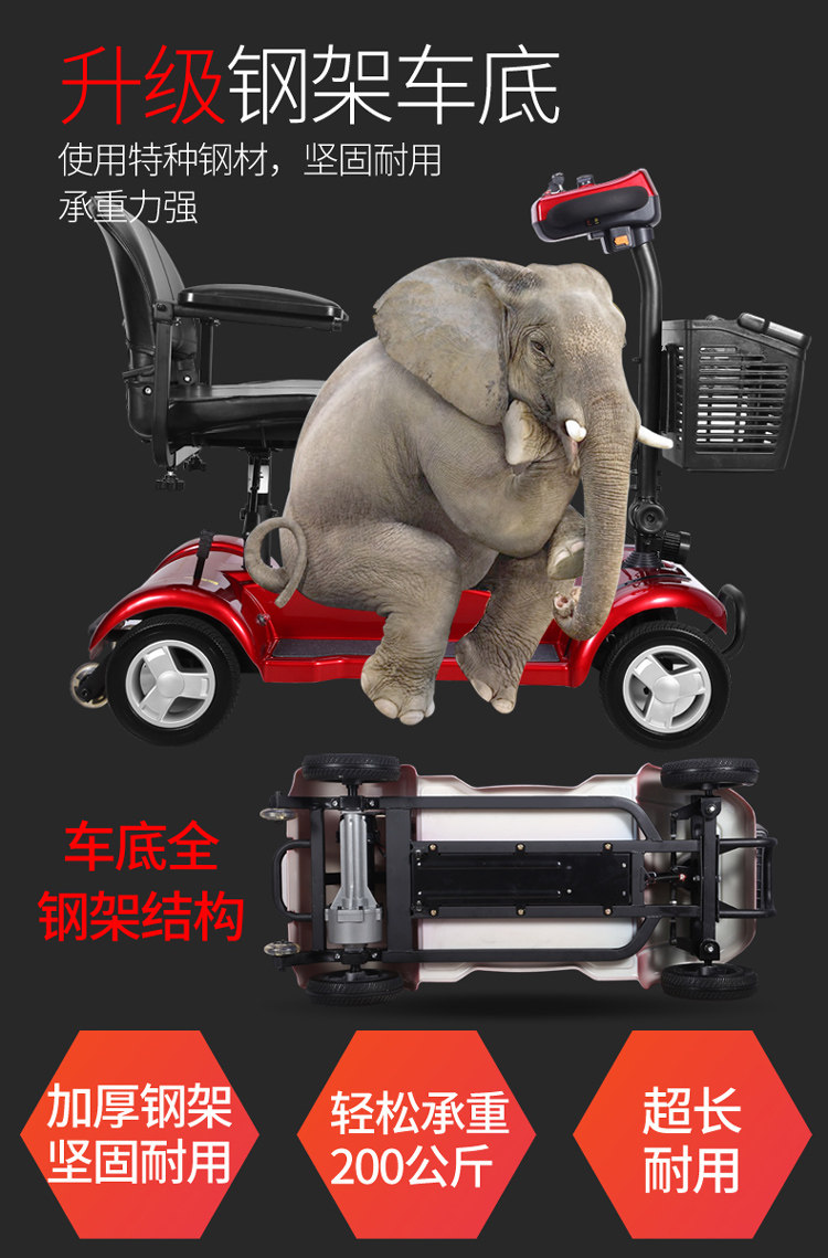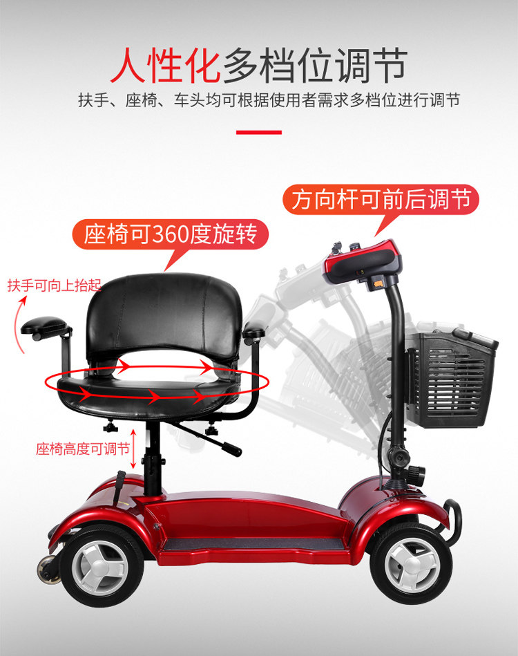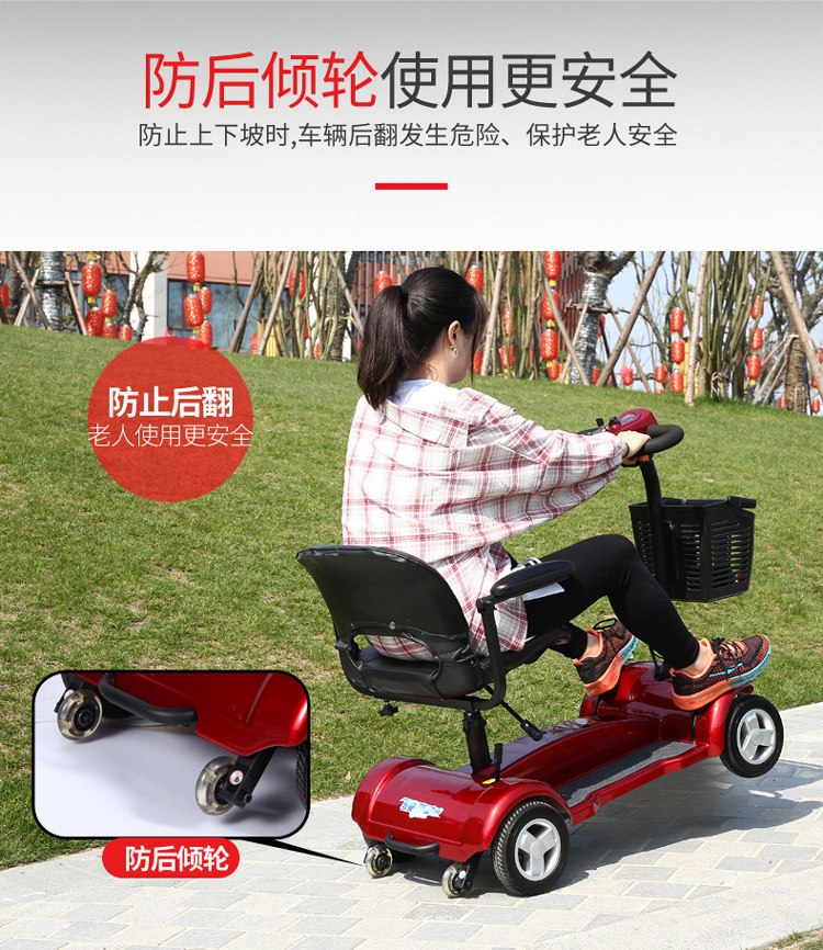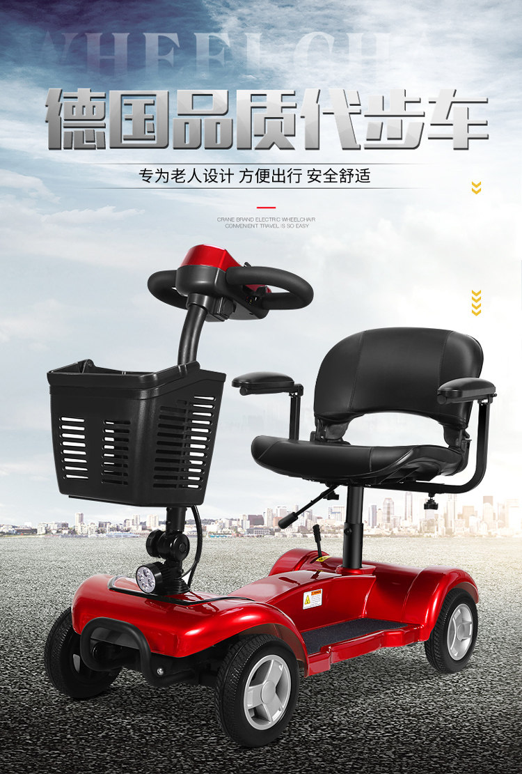 Skuter empat roda tua, mobil rumah lipat, baterai lithium, daya skuter untuk orang tua