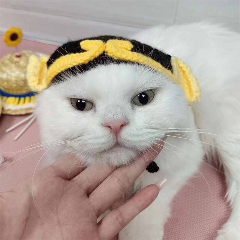 Tutup kepala hewan peliharaan kucing anjing topi tenun hiasan kepala alat peraga cospaly pakaian transformasi lucu grosir