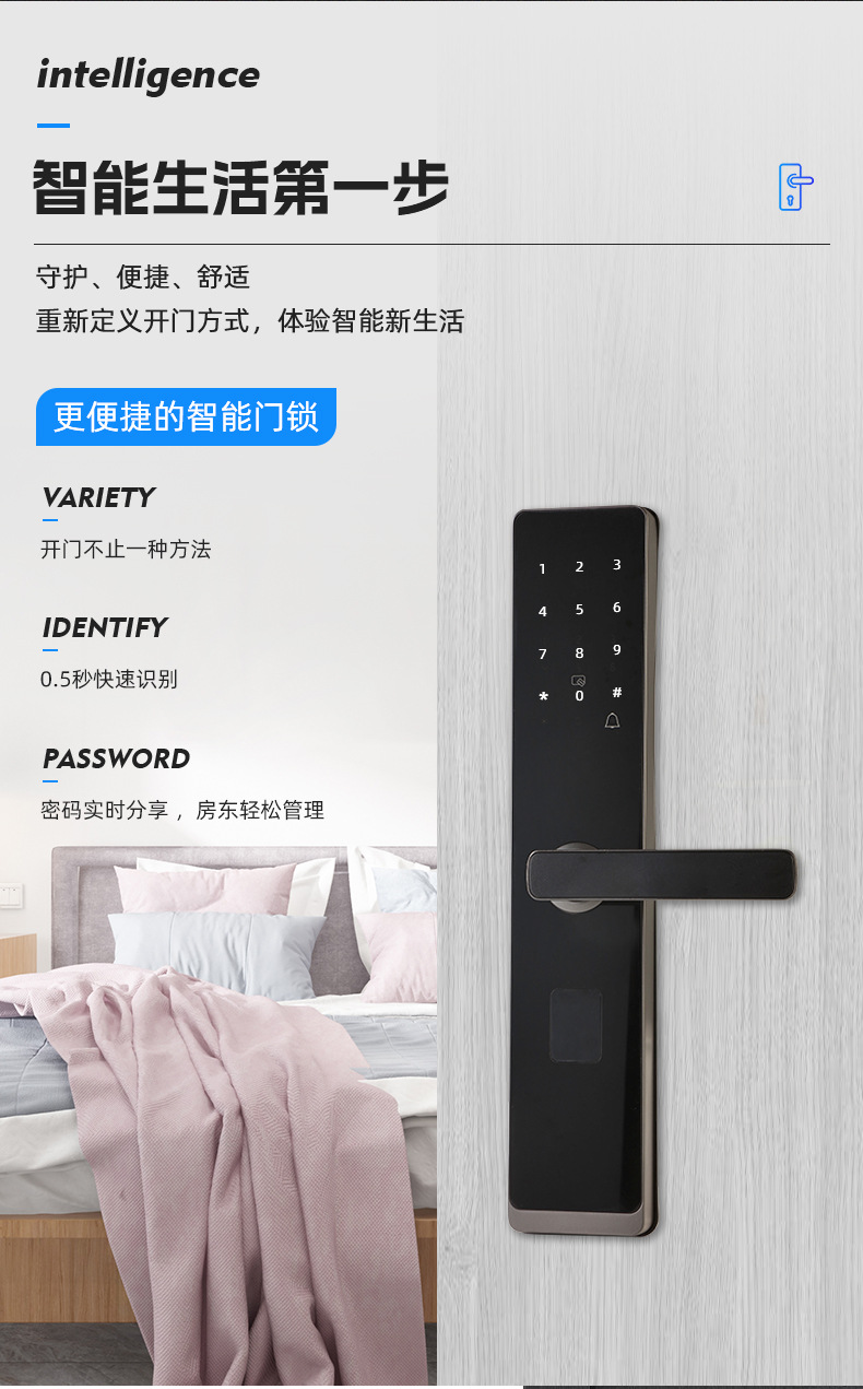Kunci pintar, kunci pintu keamanan rumah, kunci pintu masuk sidik jari, apartemen, B&B, kunci kata sandi hotel, kunci elektronik, kunci universal