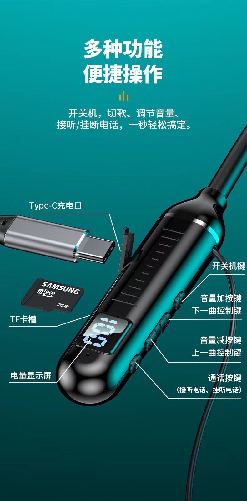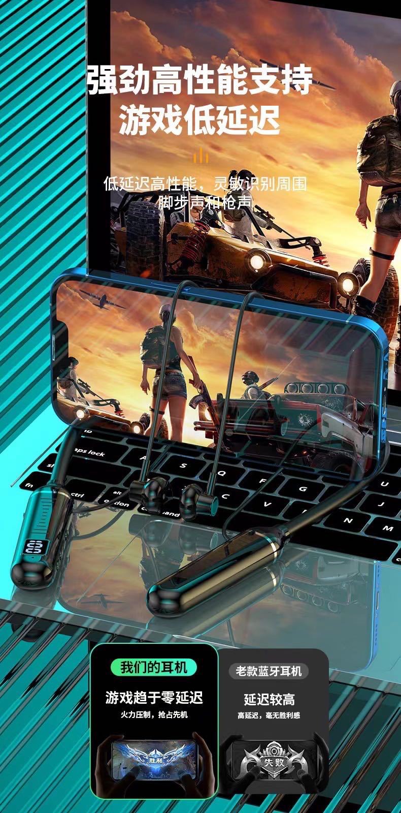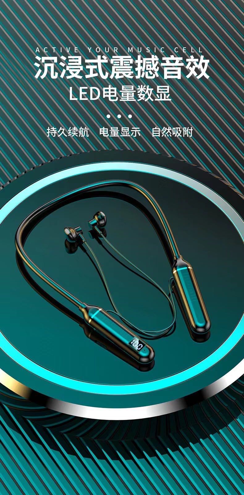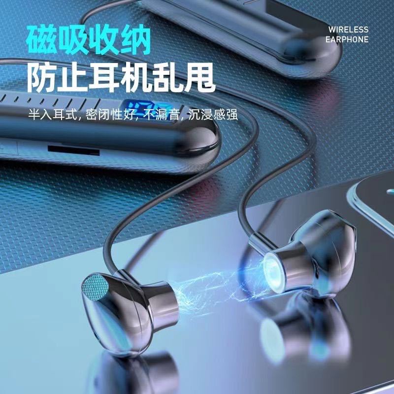 Headset Bluetooth leher gantung gaya baru Bluetooth olahraga semi-in-ear nirkabel universal yang dipasang di leher siap untuk dropshipping