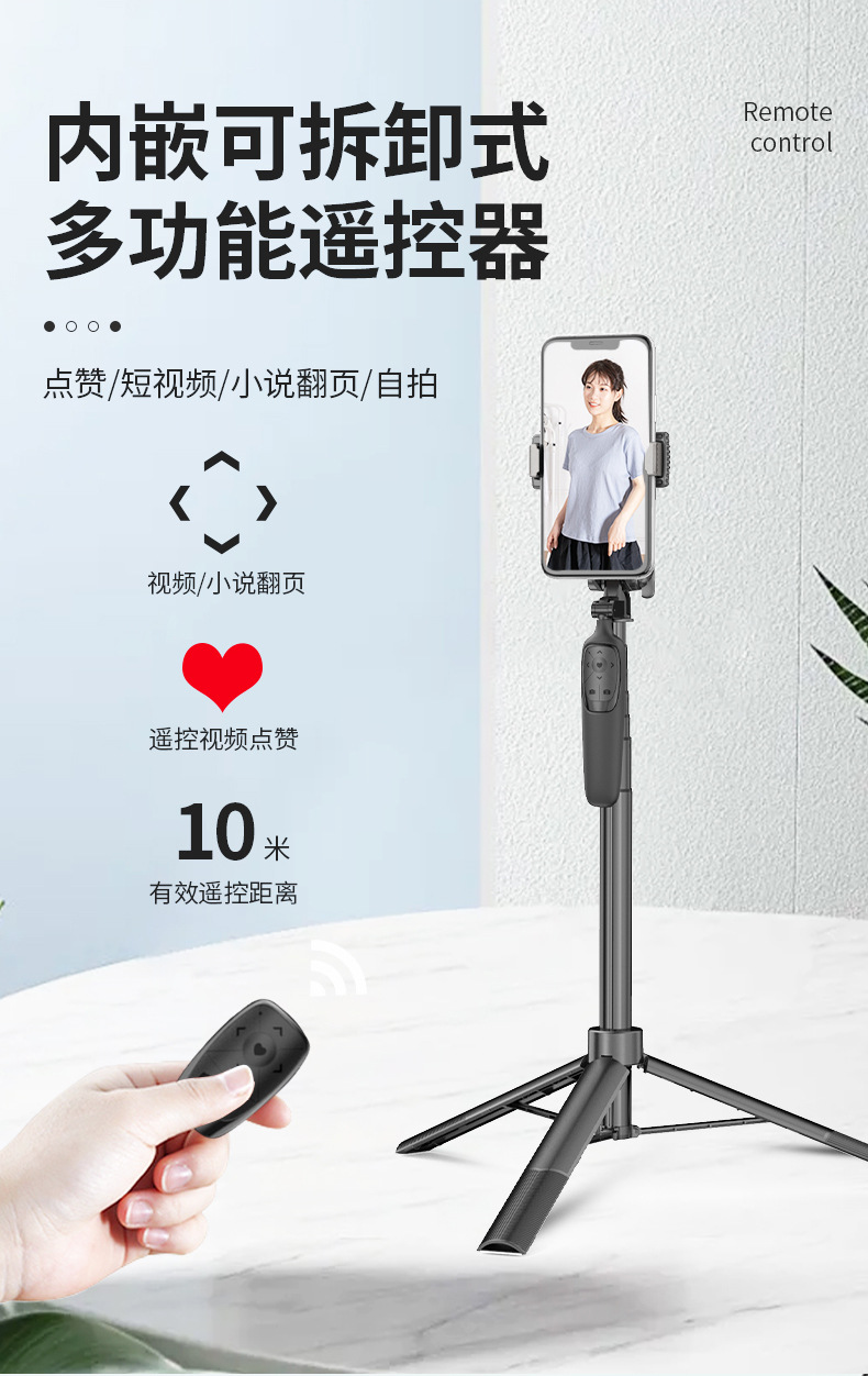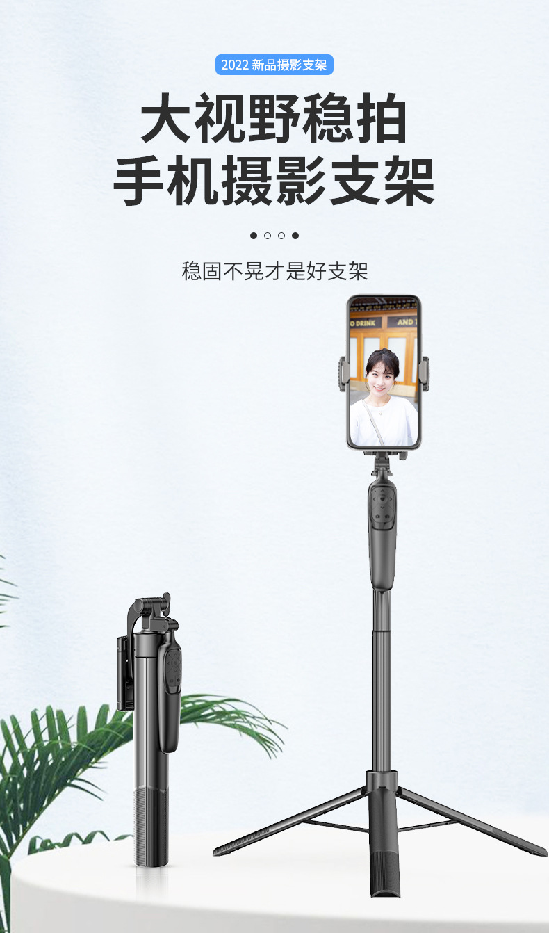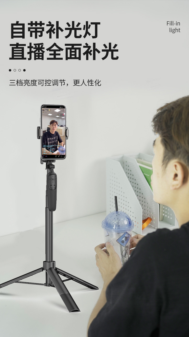 Tongsis ponsel A65, tripod dengan ketinggian yang dapat disesuaikan, stabilizer kamera desktop, remote control, model yang sama seperti TikTok.