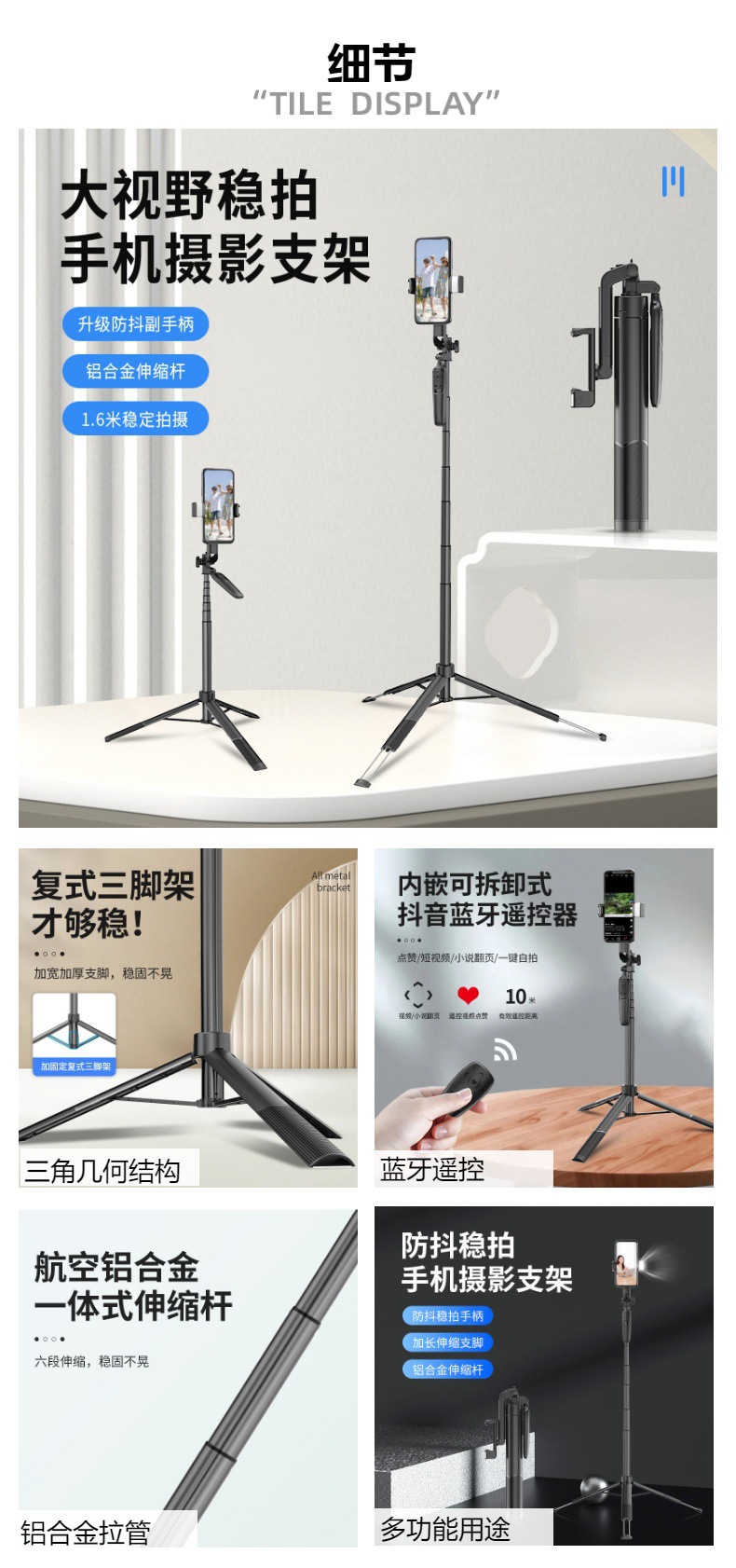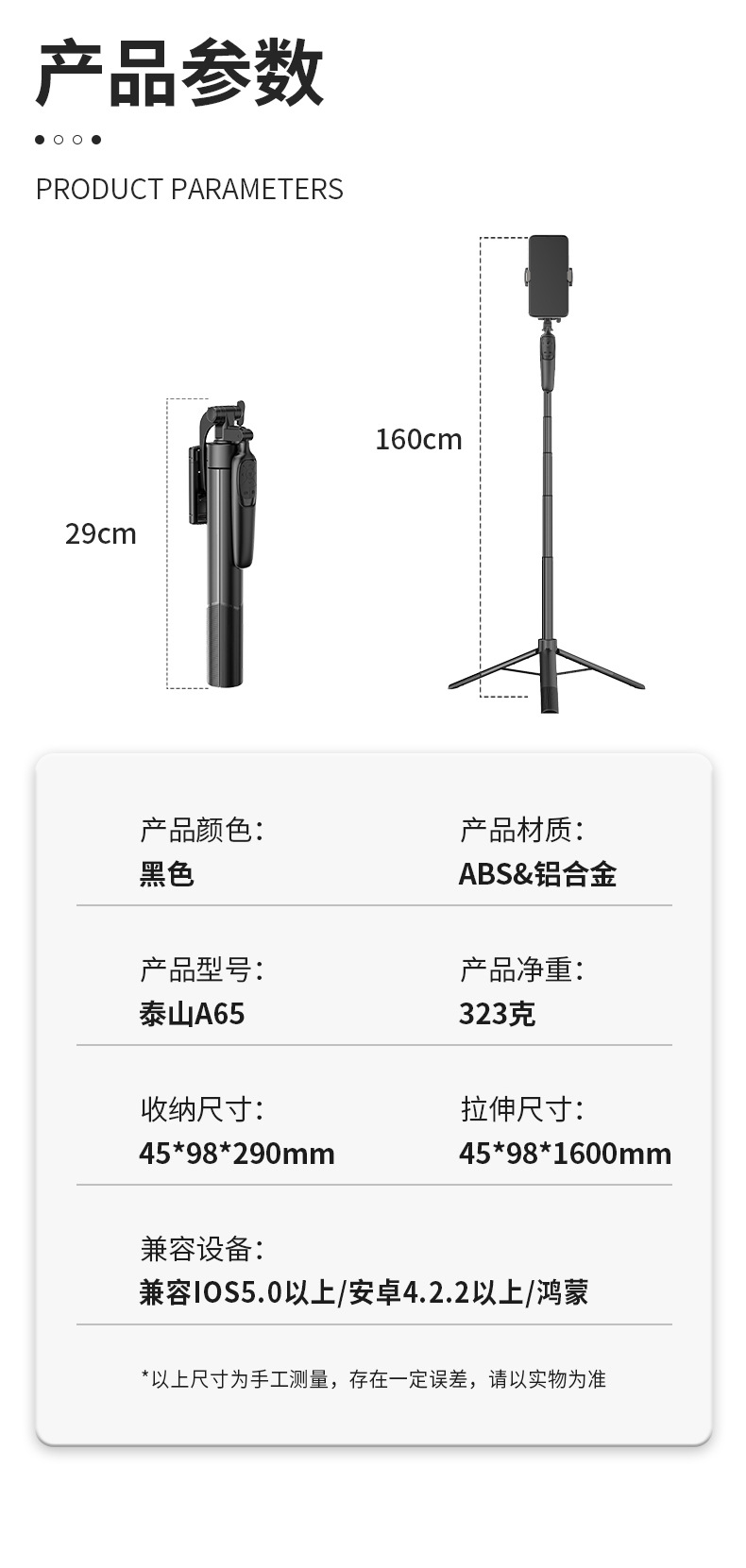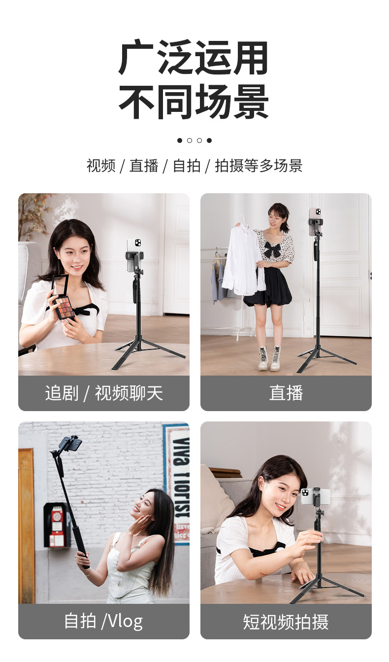 Tongsis ponsel A65, tripod dengan ketinggian yang dapat disesuaikan, stabilizer kamera desktop, remote control, model yang sama seperti TikTok.