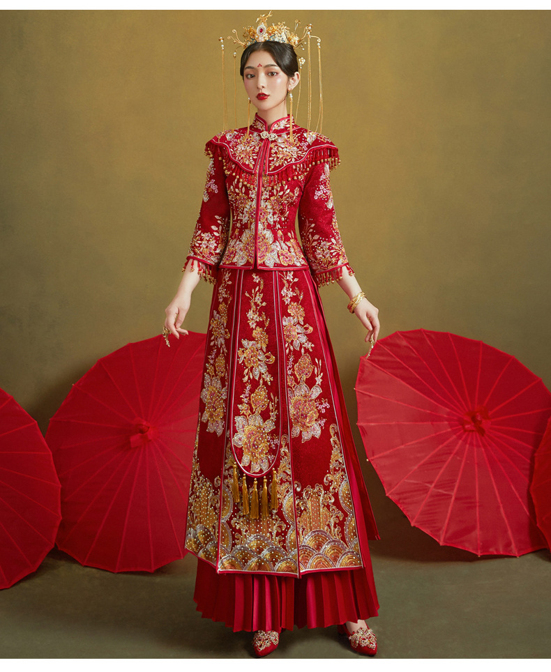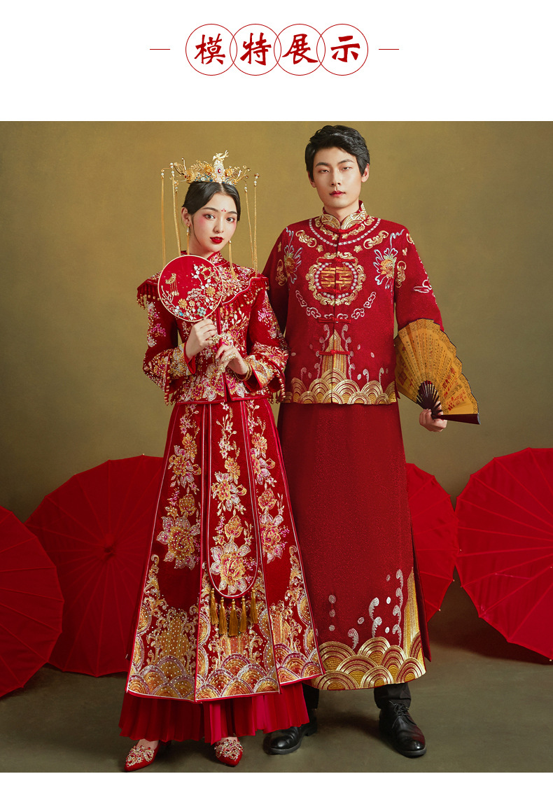 Gaun Pengantin Kimono Vintage Xiuhefu Merah 2025 Musim Panas Terbaru untuk Wanita Ukuran Besar, Gaun Pengantin Cina Motif Naga dan Phoenix untuk Pengantin Pria.