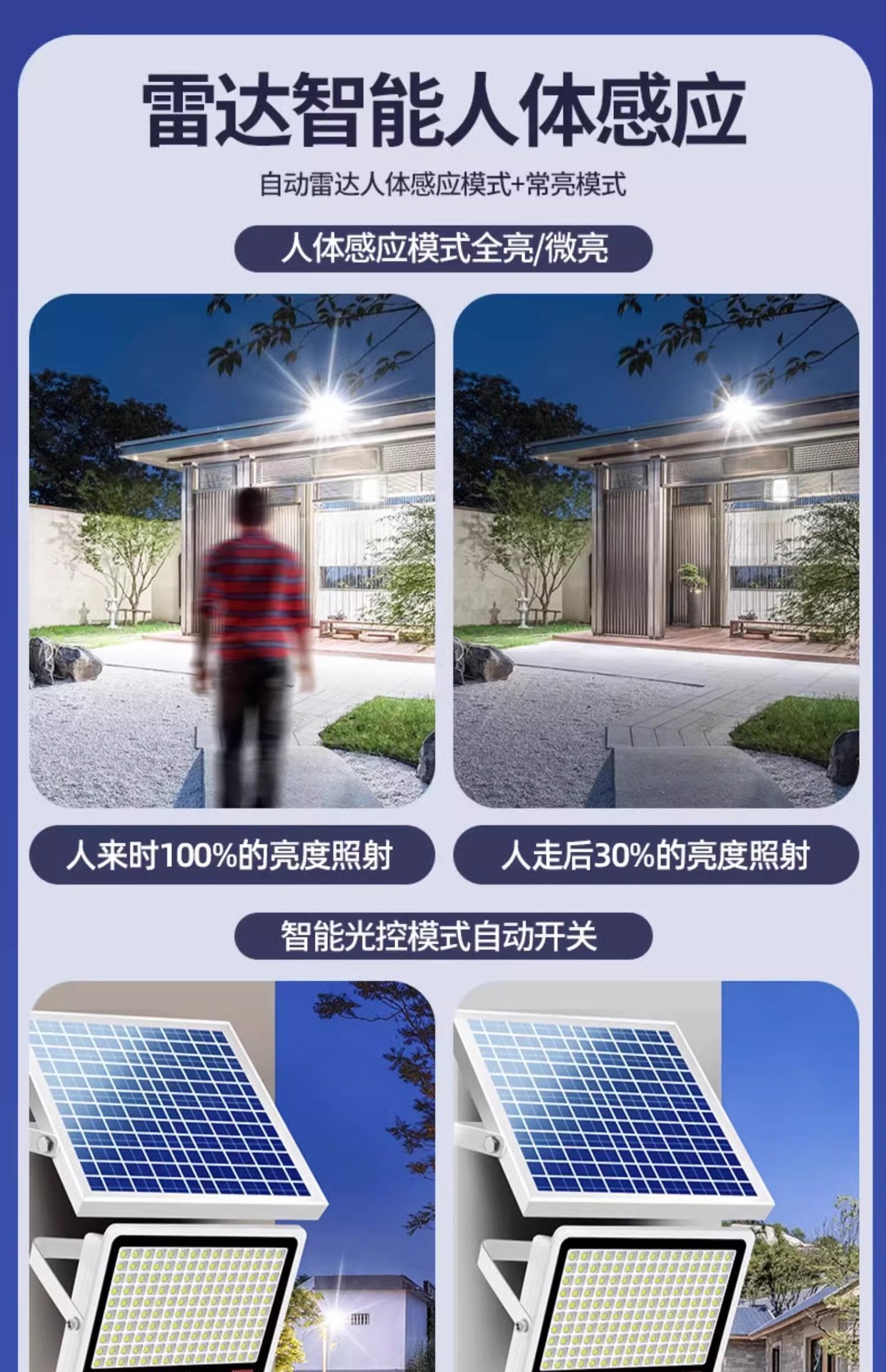 Lampu Taman lampu luar ruangan tenaga surya, lampu jalan, lampu sorot rumah tangga daya tinggi super terang induksi tubuh manusia