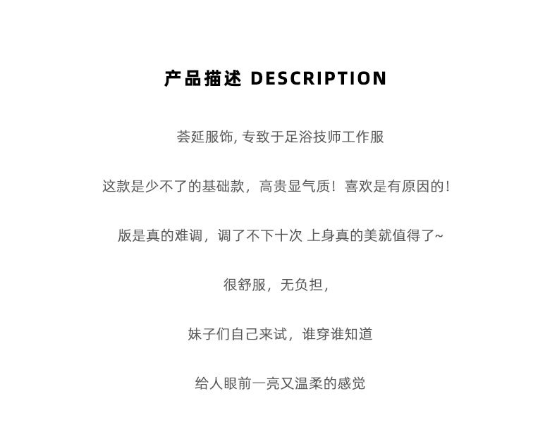 Hui Yan terapi kaki kesehatan, pakaian profesional teknisi terapi kaki mandi kaki, temperamen salon kecantikan, setelan tata rias wanita