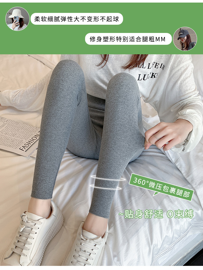 Legging abu-abu untuk pakaian luar wanita musim semi dan musim gugur tipis katun murni pinggang tinggi 2025 baru ketat ukuran besar celana panjang sembilan titik.