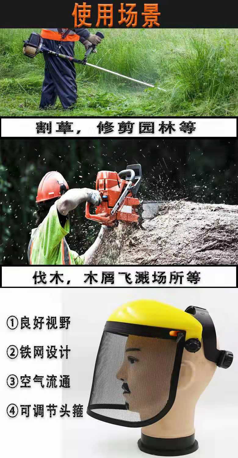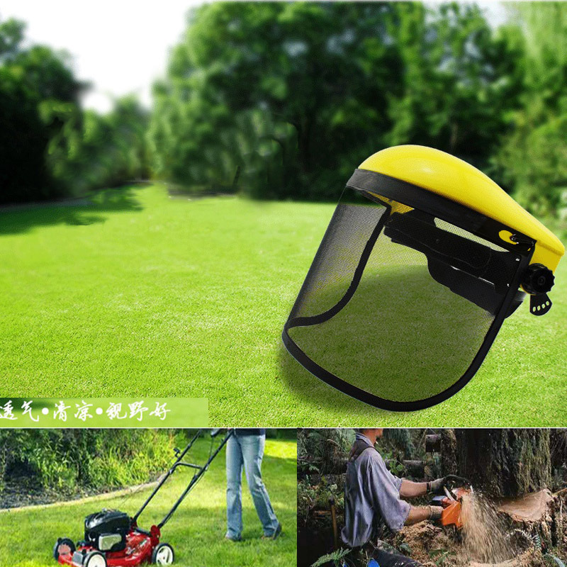 Pemotong rumput cap rantai gergaji topi pemotong rumput helm pelindung sikat pemotong rumput kawat baja masker pelindung wajah