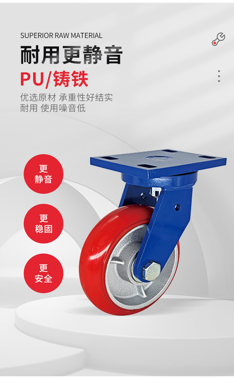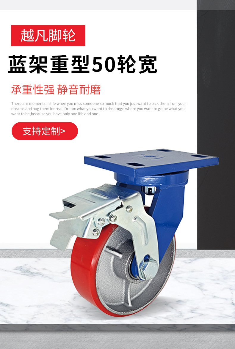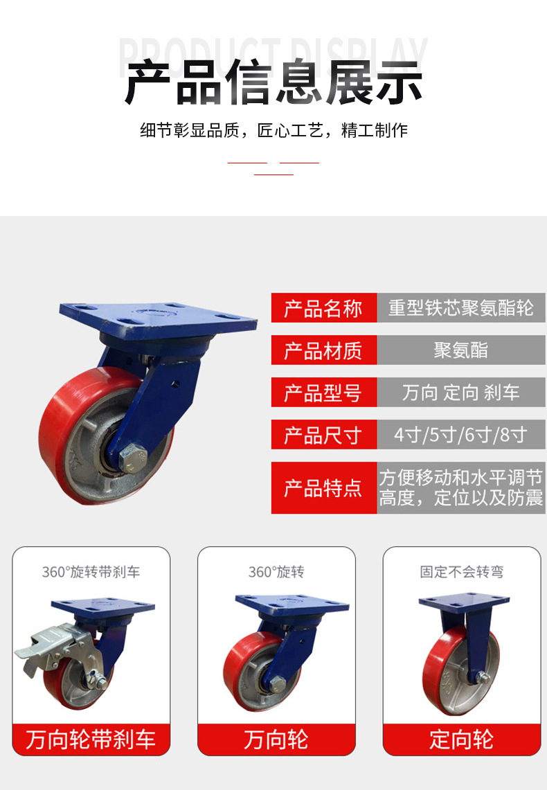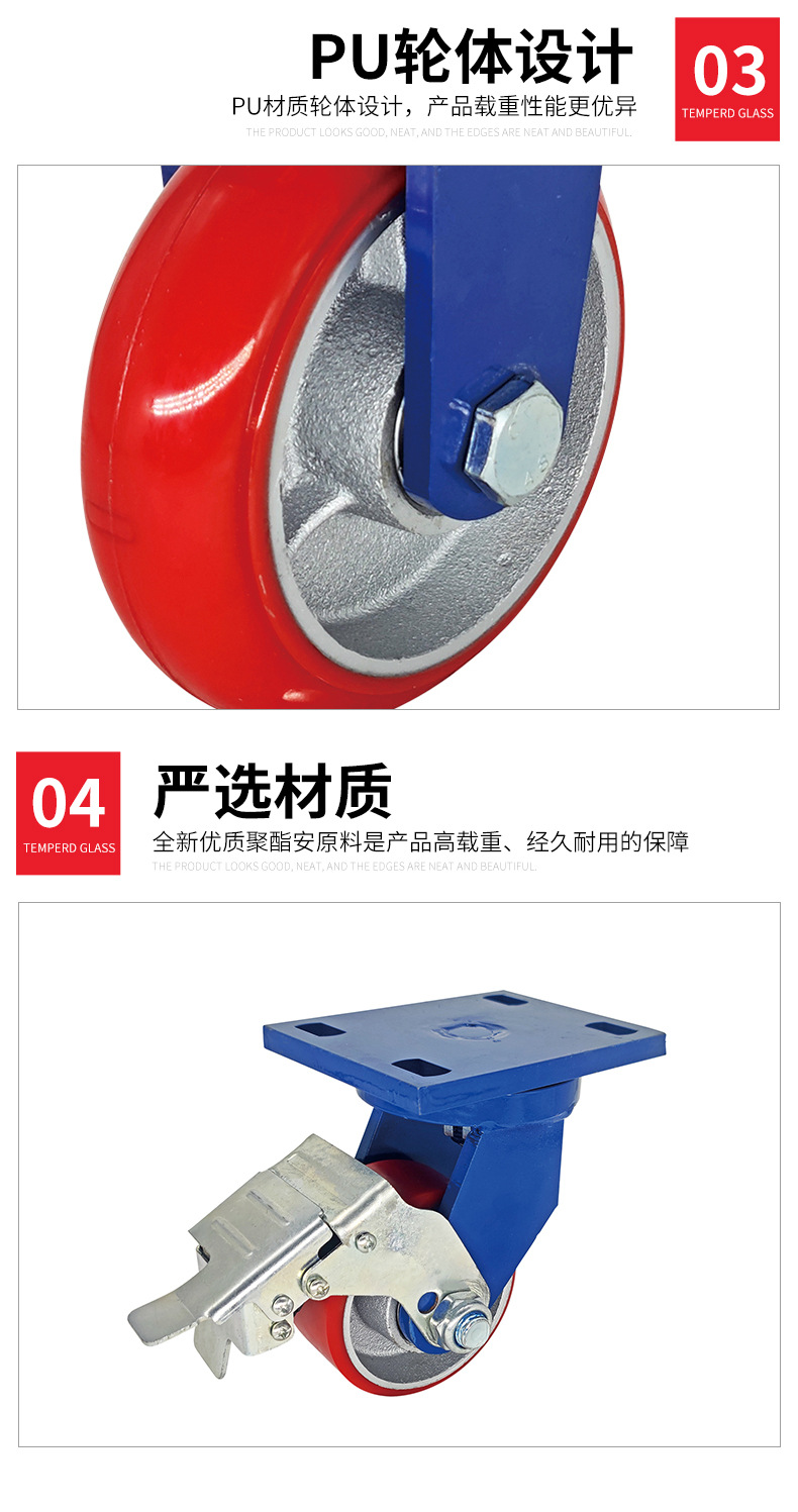 Roda Polyurethane PU 4-inci 6-inci 8-inci dengan inti besi, roda universal untuk gerobak bergerak, kastor tahan aus kelas industri