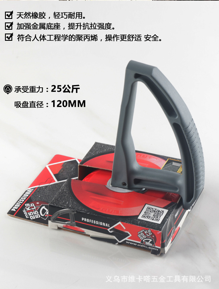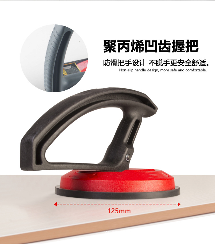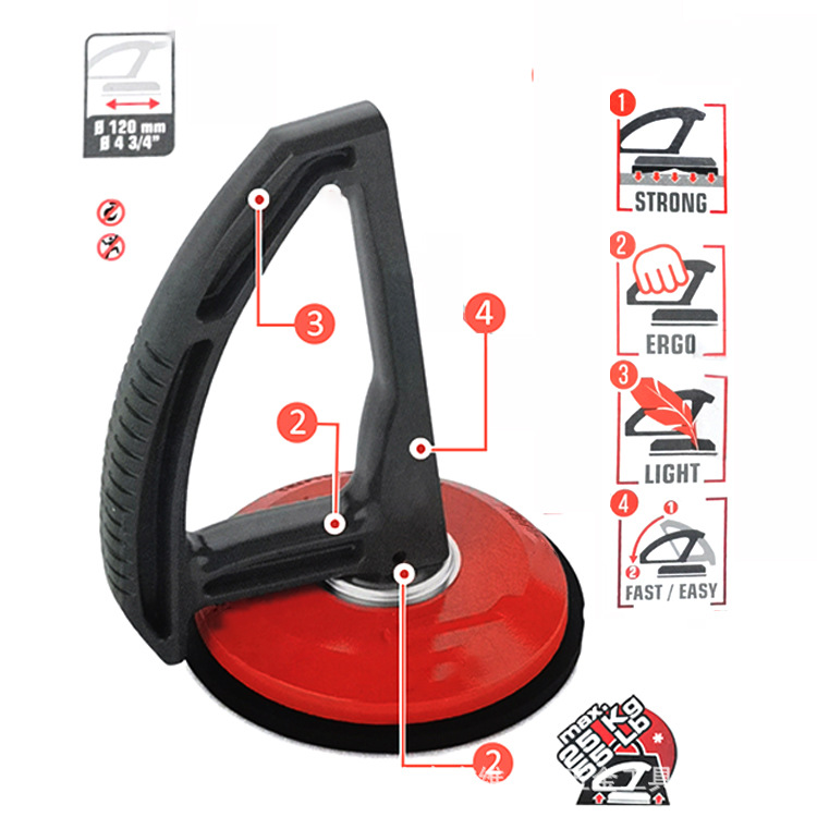 Alat penanganan ubin hisap manual satu tangan, cangkir hisap kuat cakar tunggal permukaan kasar, gripper ganda, paduan aluminium kaca