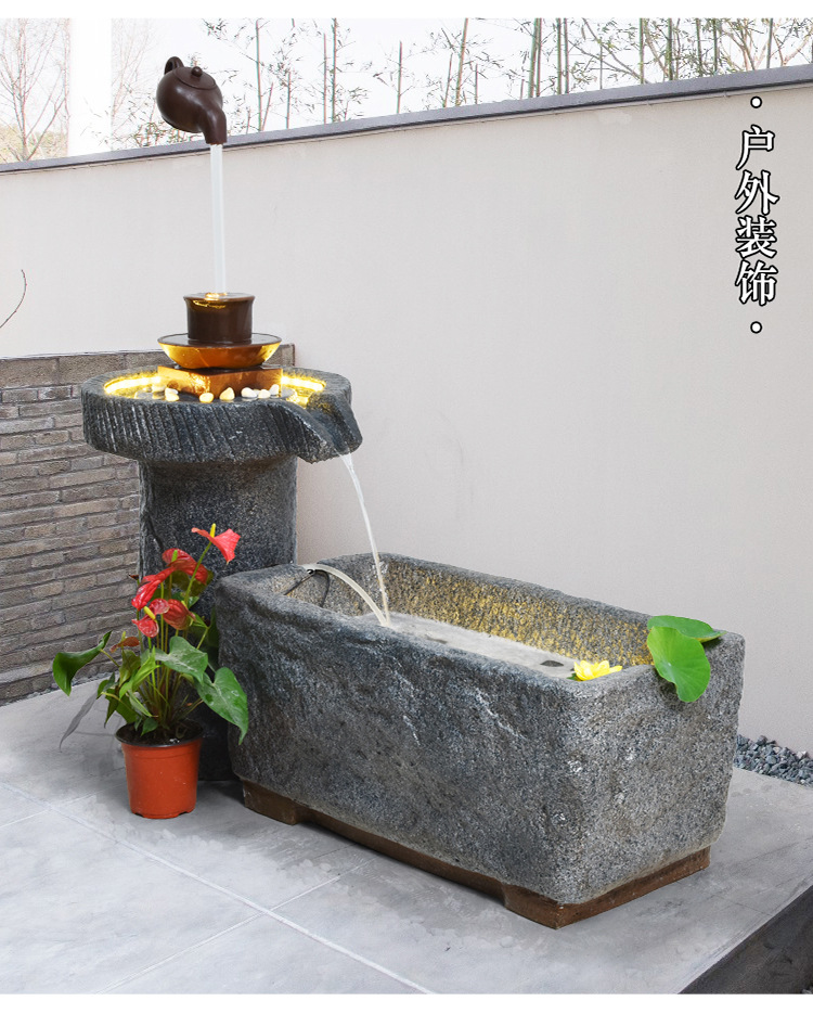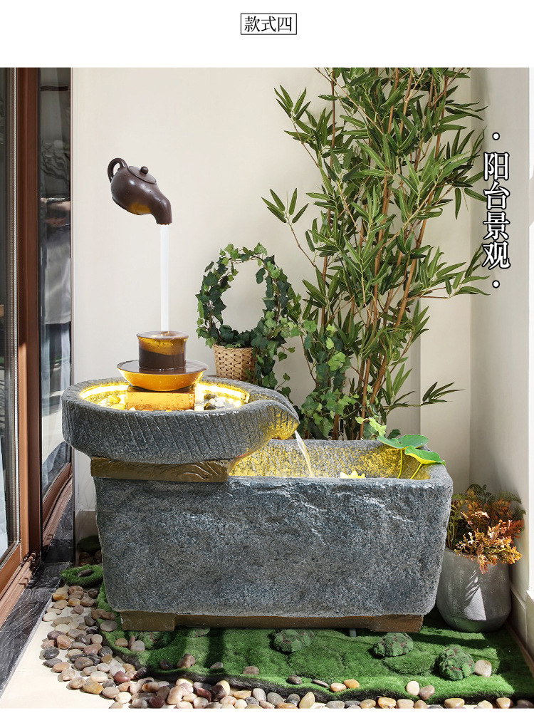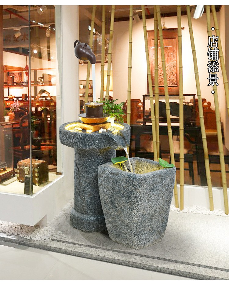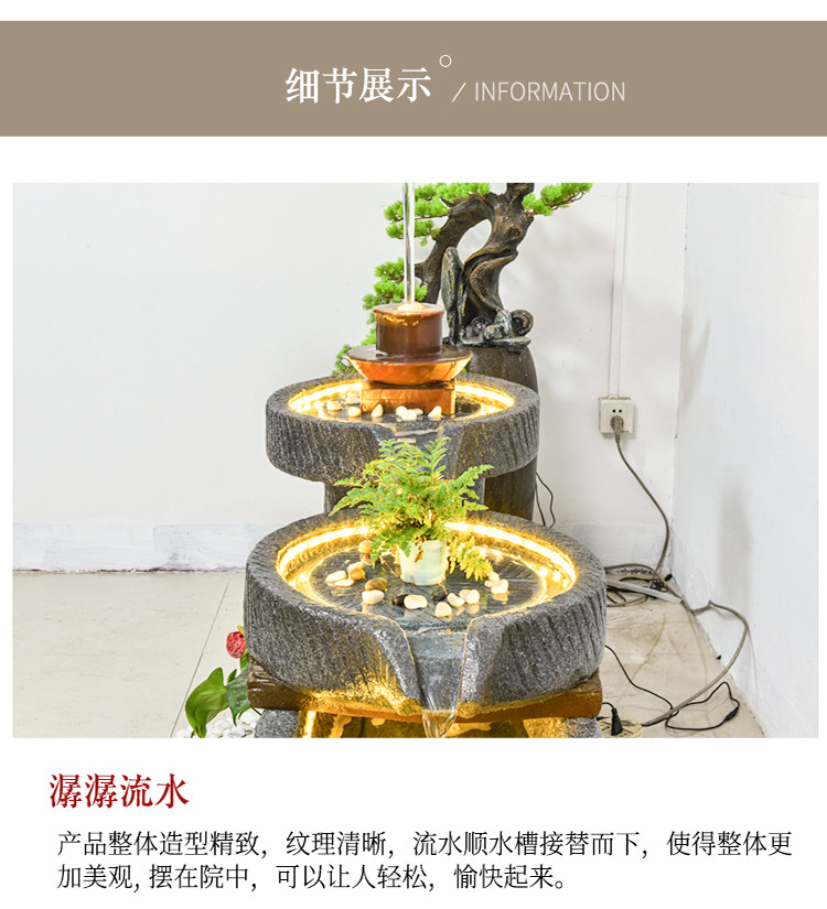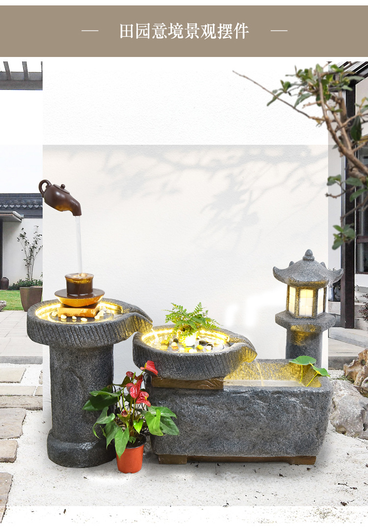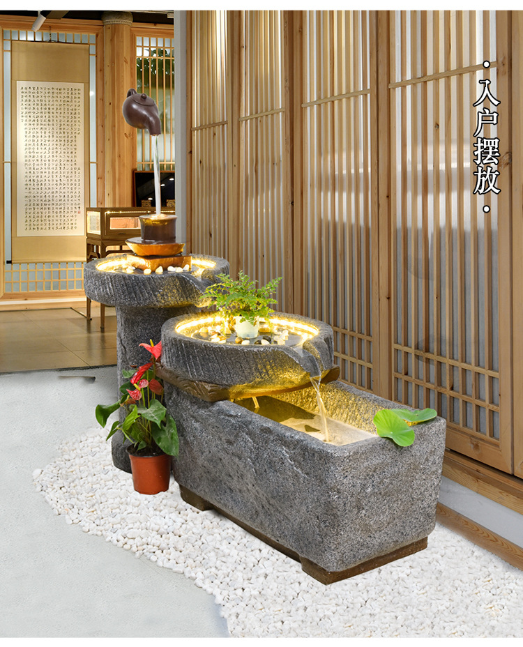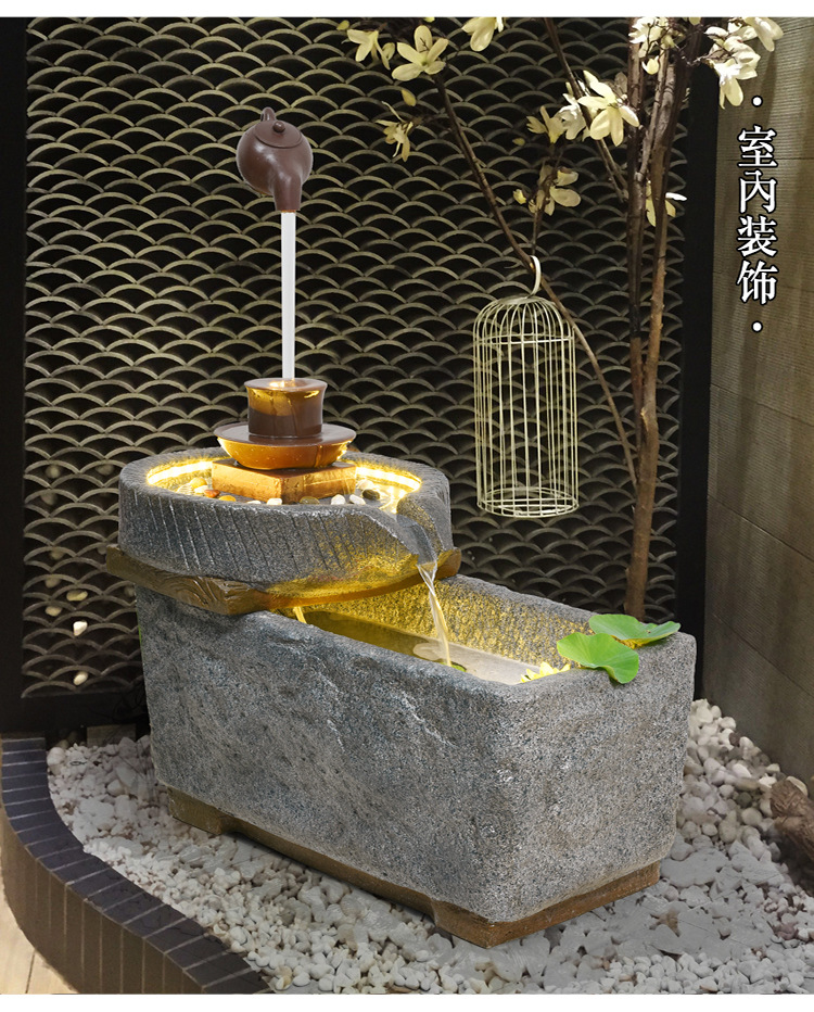 Penggilingan batu Pastoral pemandangan air mancur air mancur keberuntungan taman kolam ikan sirkulasi air lanskap taman Dekorasi resin lanskap