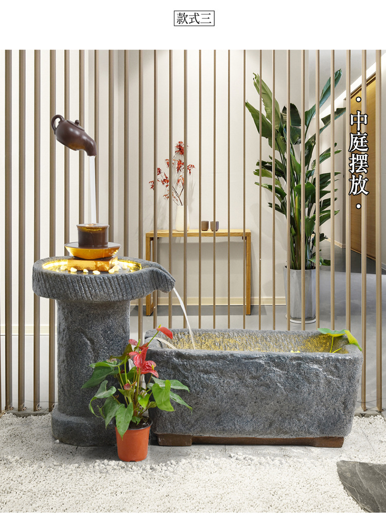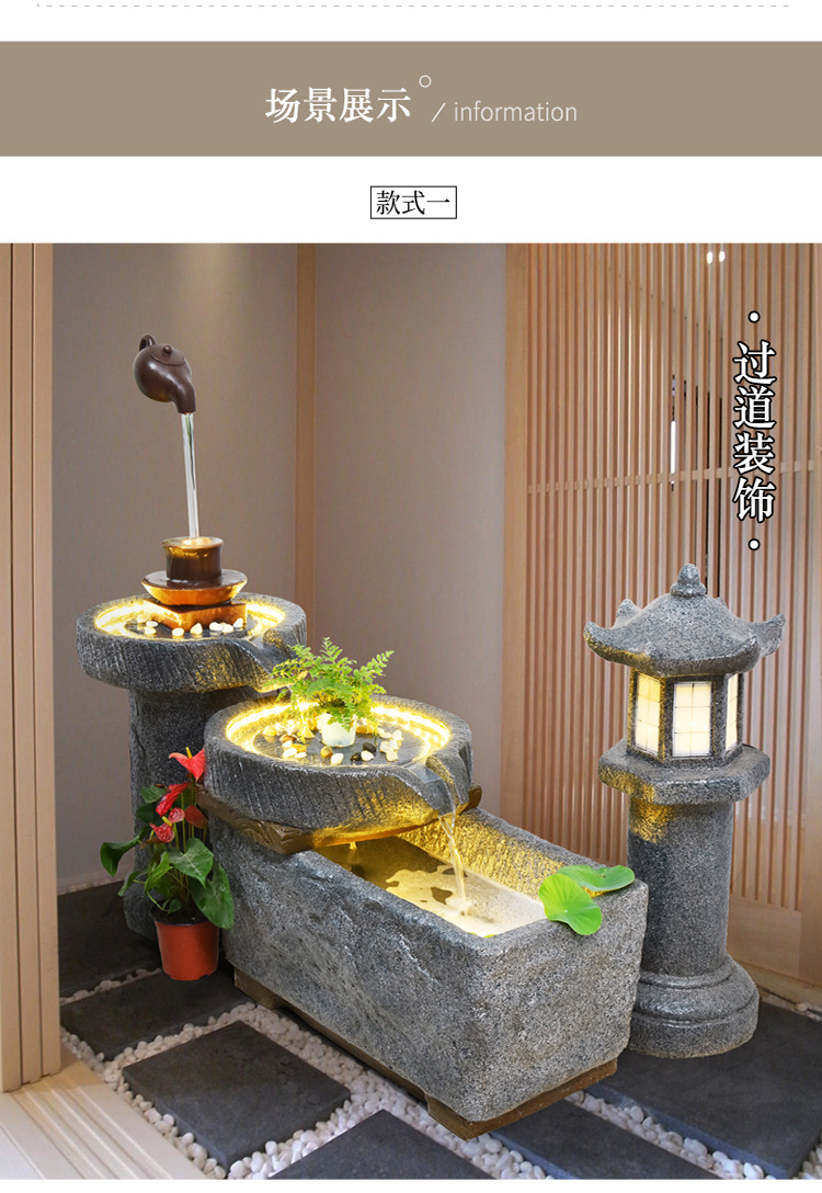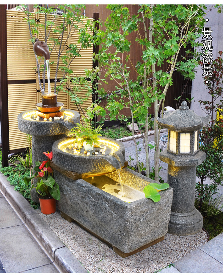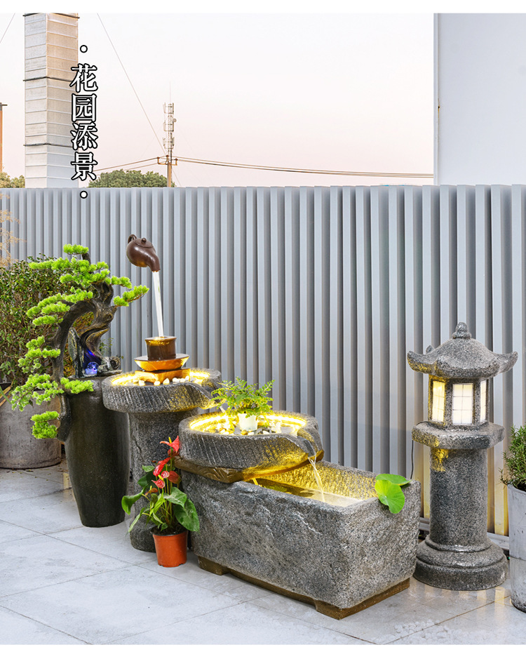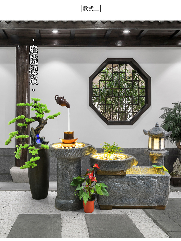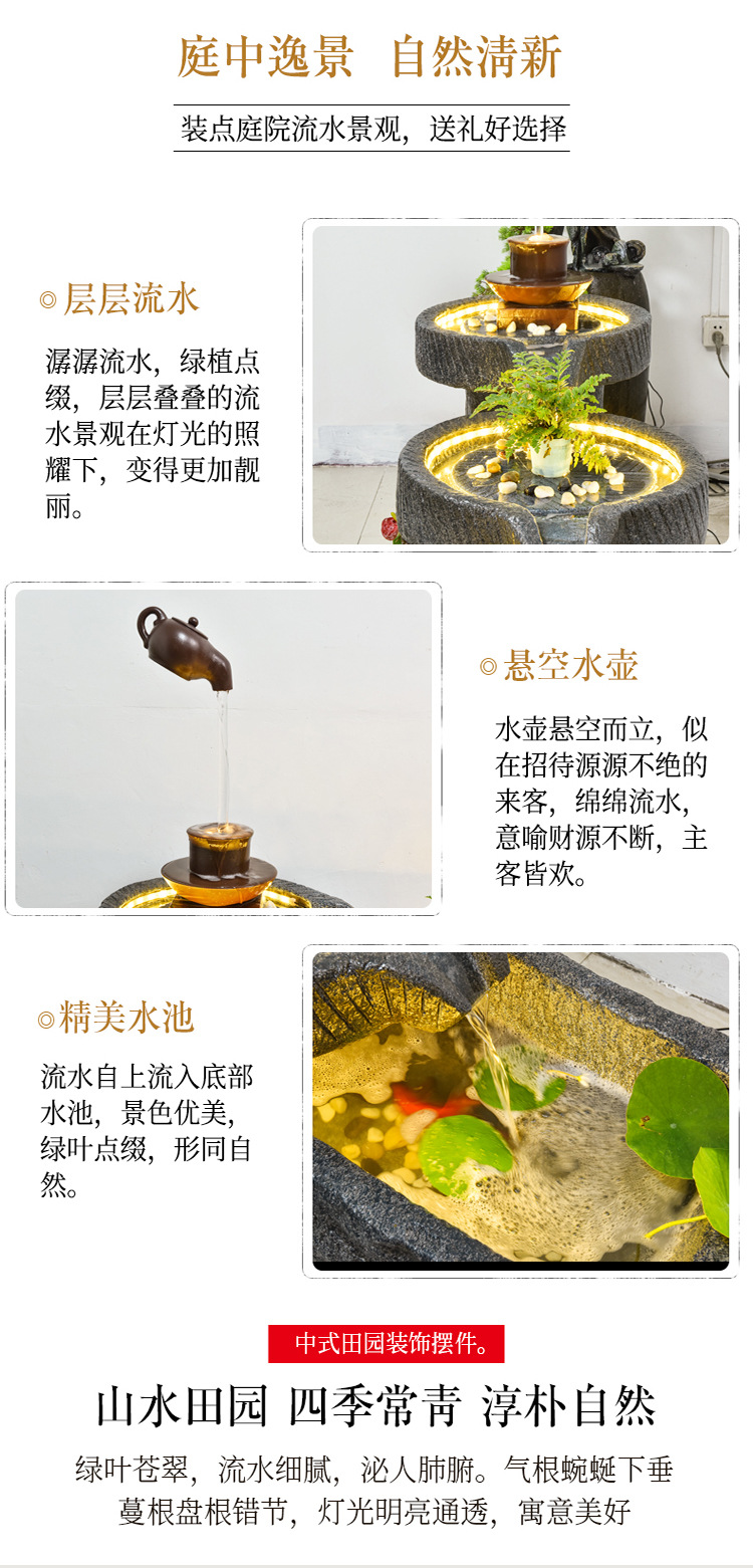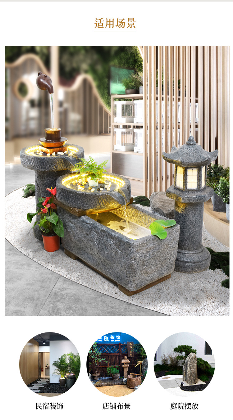 Penggilingan batu Pastoral pemandangan air mancur air mancur keberuntungan taman kolam ikan sirkulasi air lanskap taman Dekorasi resin lanskap