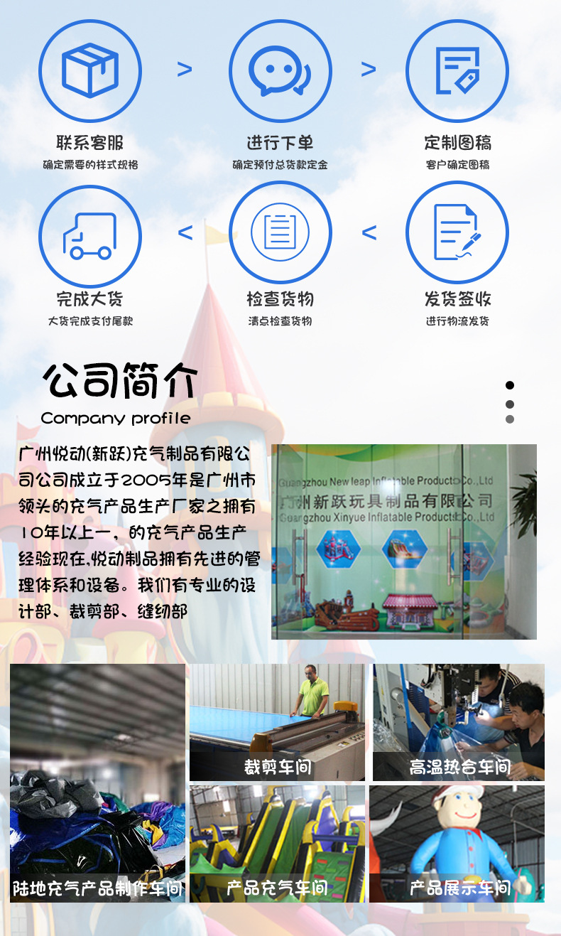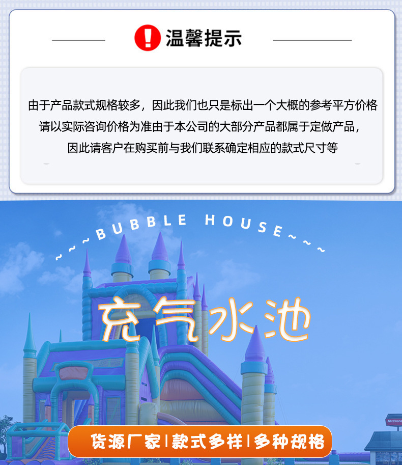 3、产品其他类型还包括:充气城堡,充气乐园,充气攀岩,充气跳床,充气蹦蹦床,充气玩具等等。
