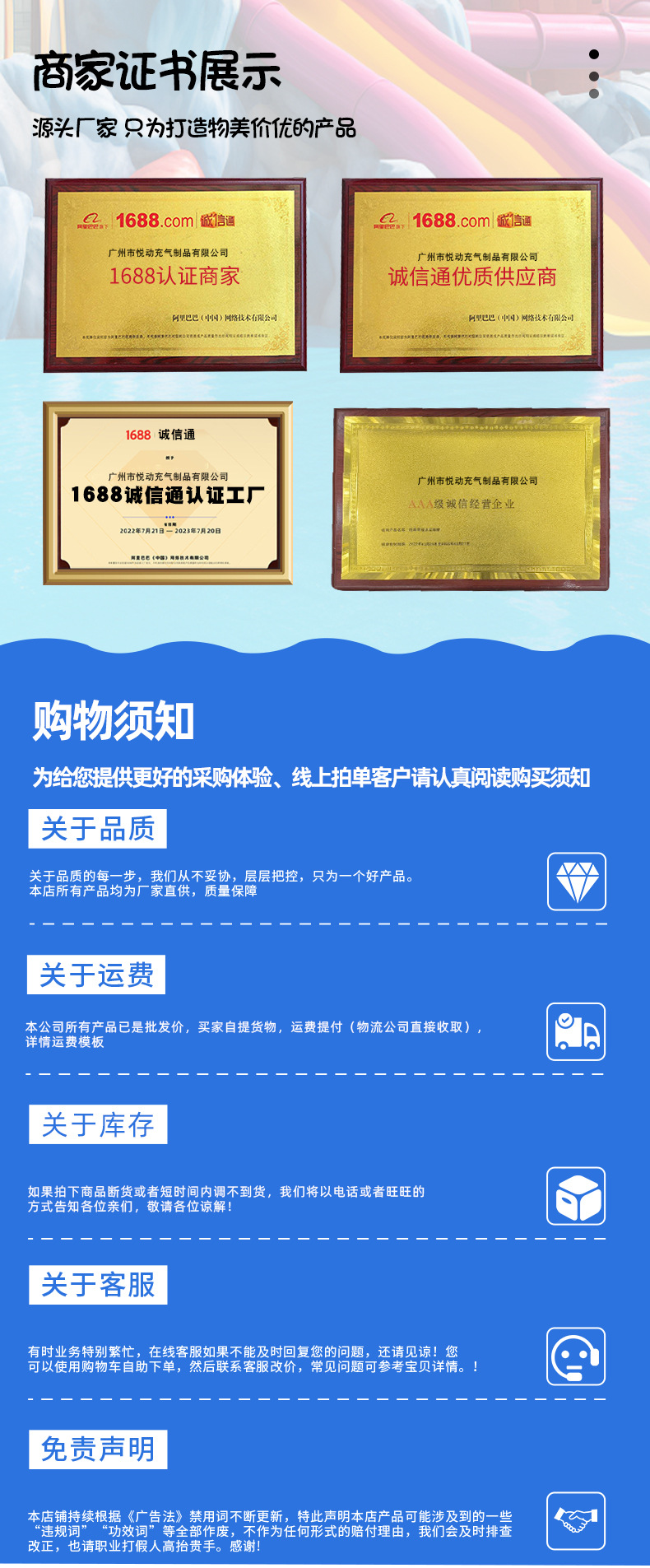 一、充气滑梯产品在使用时,需脱掉鞋和把身上尖利物品拿掉后方可上去游玩。